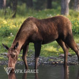 Realistic Female Moose 3D Model for Maya β XGen Fur, Rigged with 5 Animations