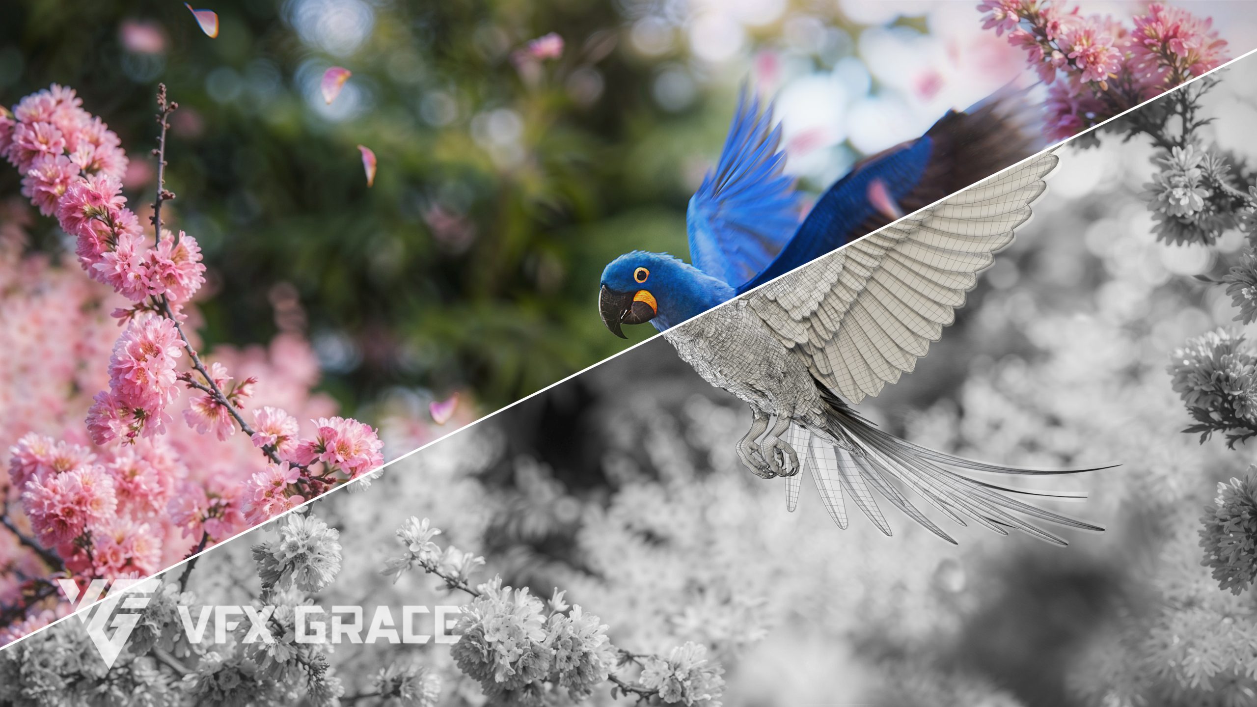 This is a high-quality Hyacinth Macaw character, featuring a detailed model, textures, hair cards, rigging, and four vivid animations. The model has a realistic muscle structure, and the textures are created in 4K resolution. Complex feather cards and textures were crafted in Blender, with the total feather polygon counts reaching 190,000 for a highly realistic effect. The rigging includes precise controls to allow for flexible body and feather movement, and four lifelike animations add dynamic realism. Created in Blender and rendered with Cycles, the model is scaled to true proportions.