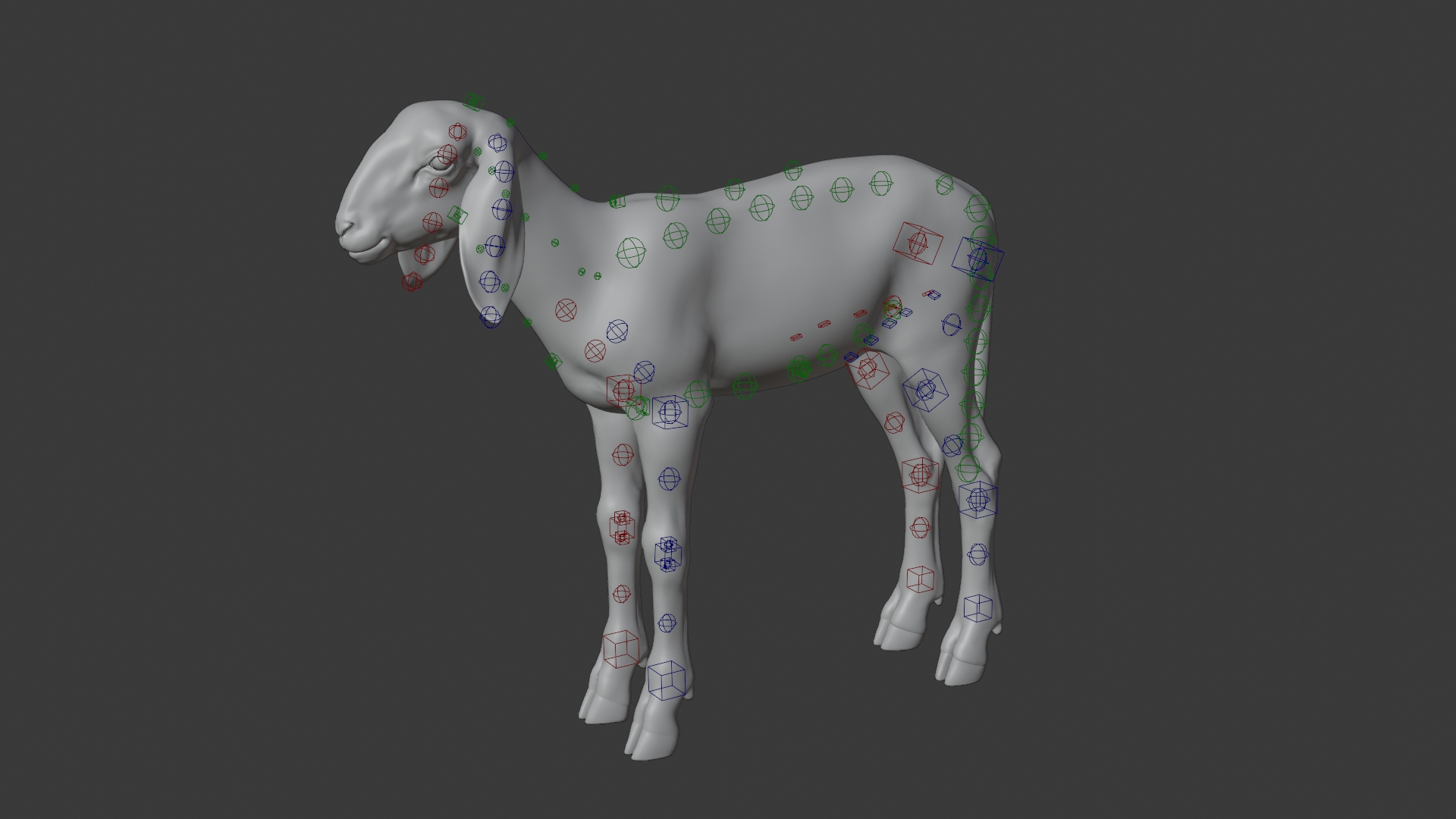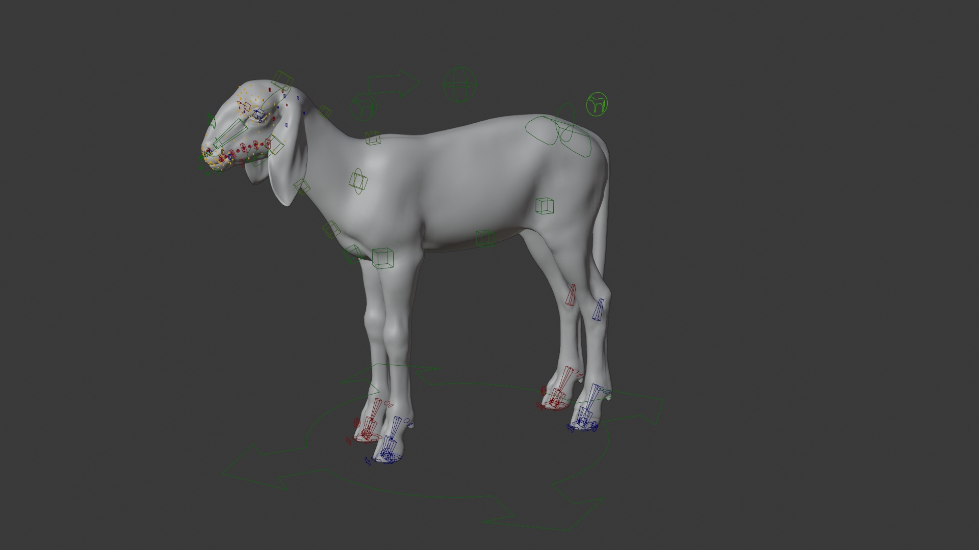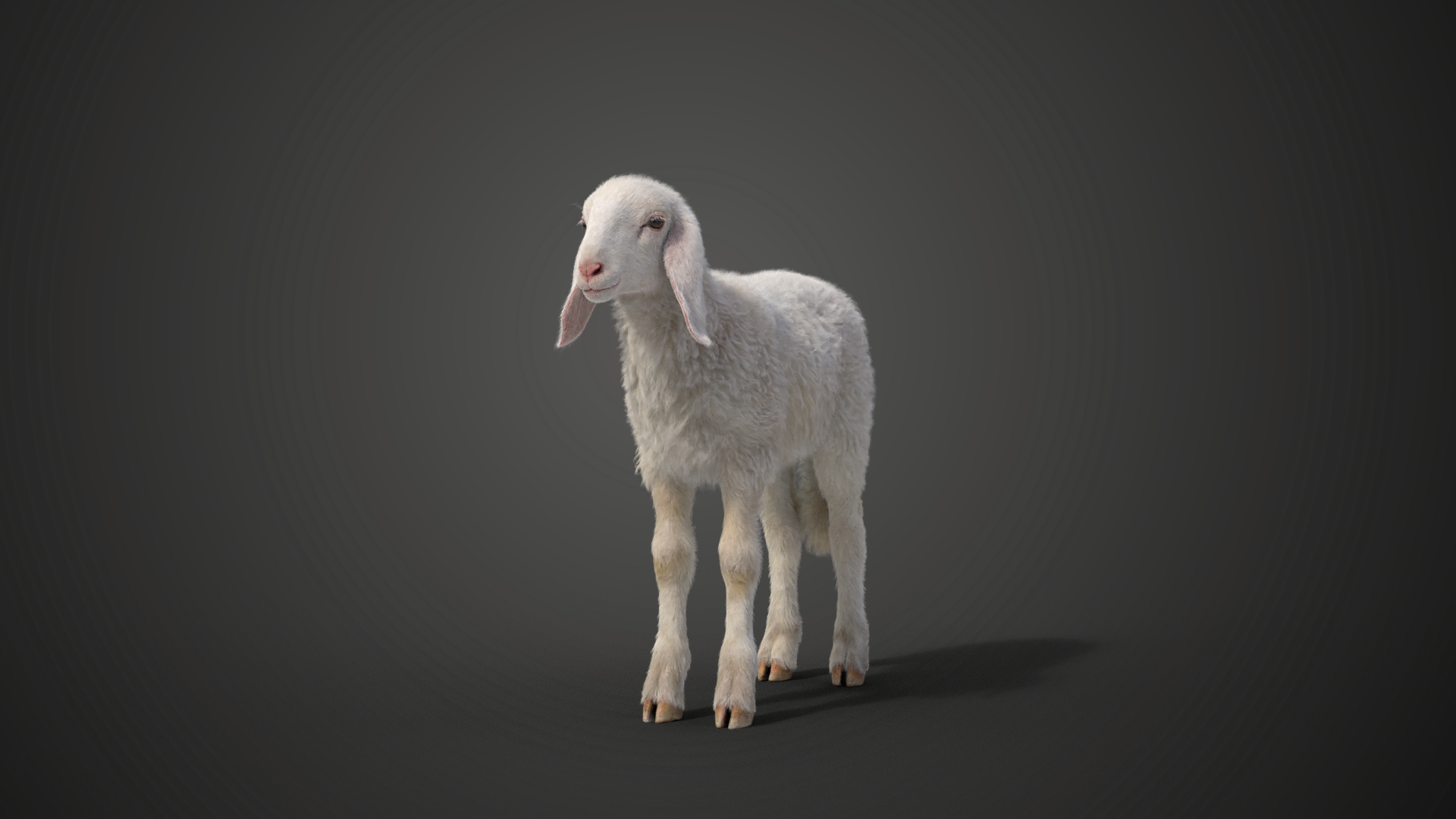 This is a young Assaf sheep model with 4K maps, fur, rigging, and 5 animations, as well as a real oral cavity model. For a better result, the skin maps and hair maps are made separately, and HairClump addon is applied to hair creation. The model is made with Blender and Cycles renderer.