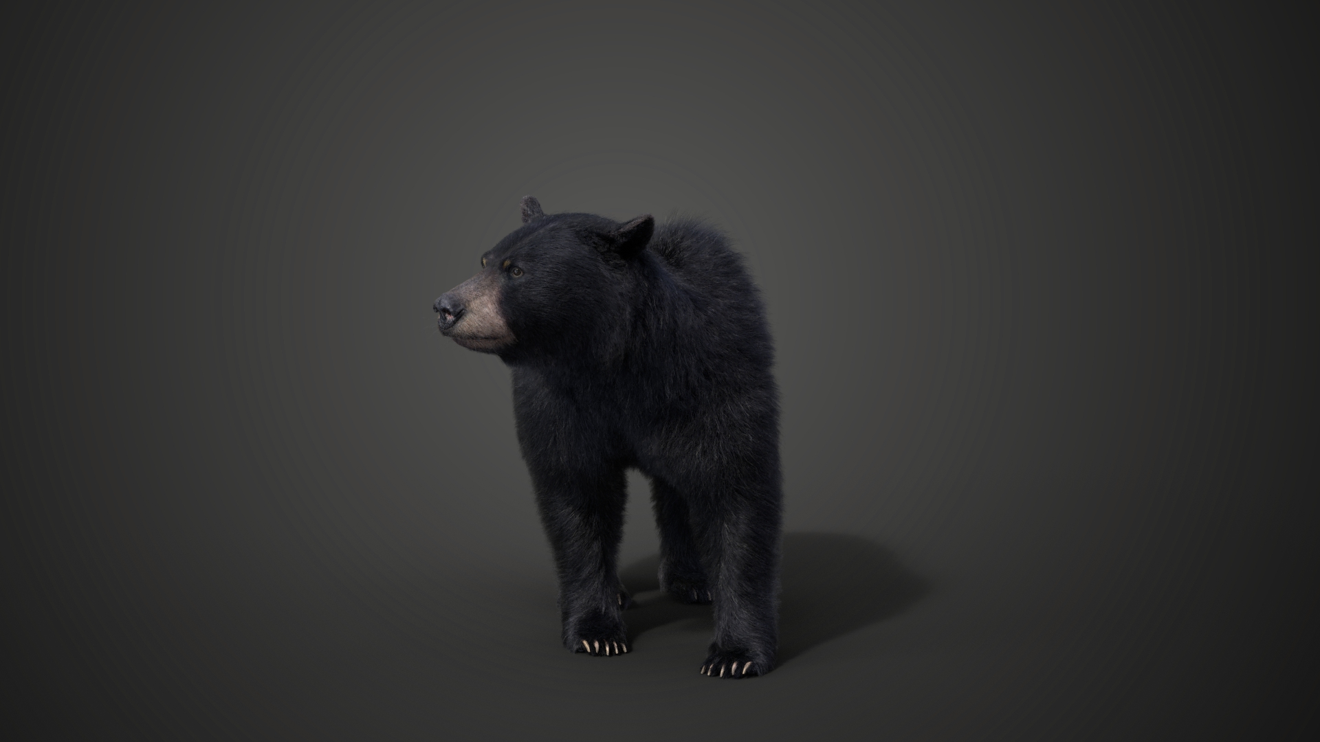 This is an American black bear model with multiple 4K maps, fur, rigging, animations, and a real oral cavity. It's made with Blender and Cycles renderer at a real-world scale.