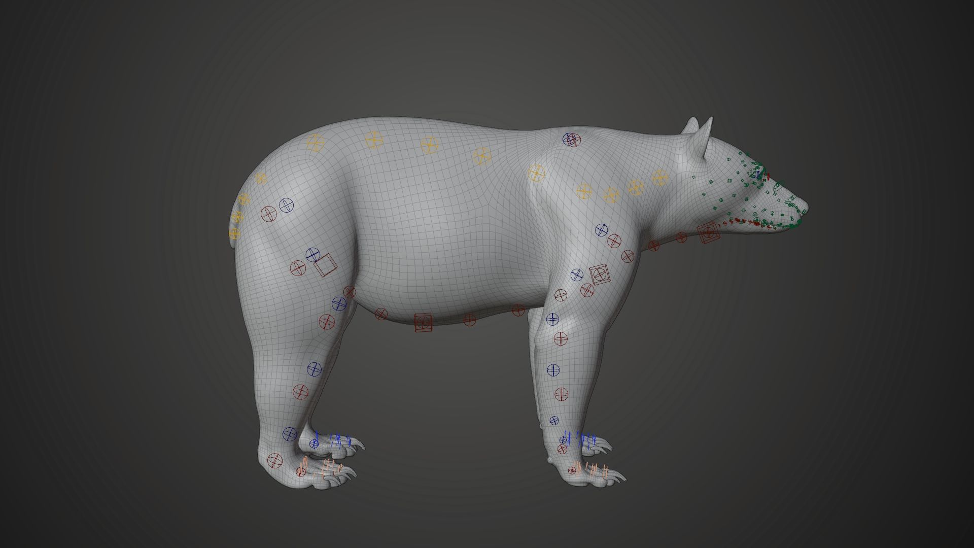 Each toe comes with a separate controller, the face, neck and belly come with fine controllers which control the subtle details.