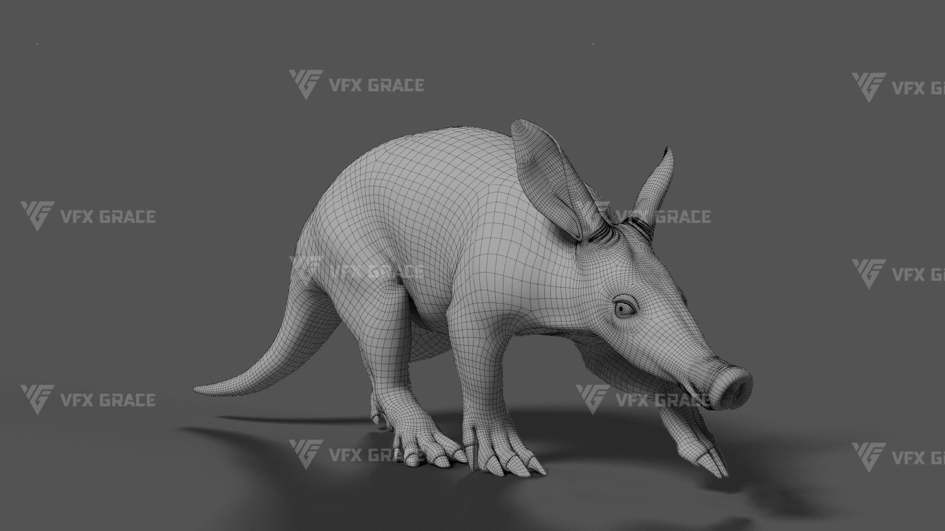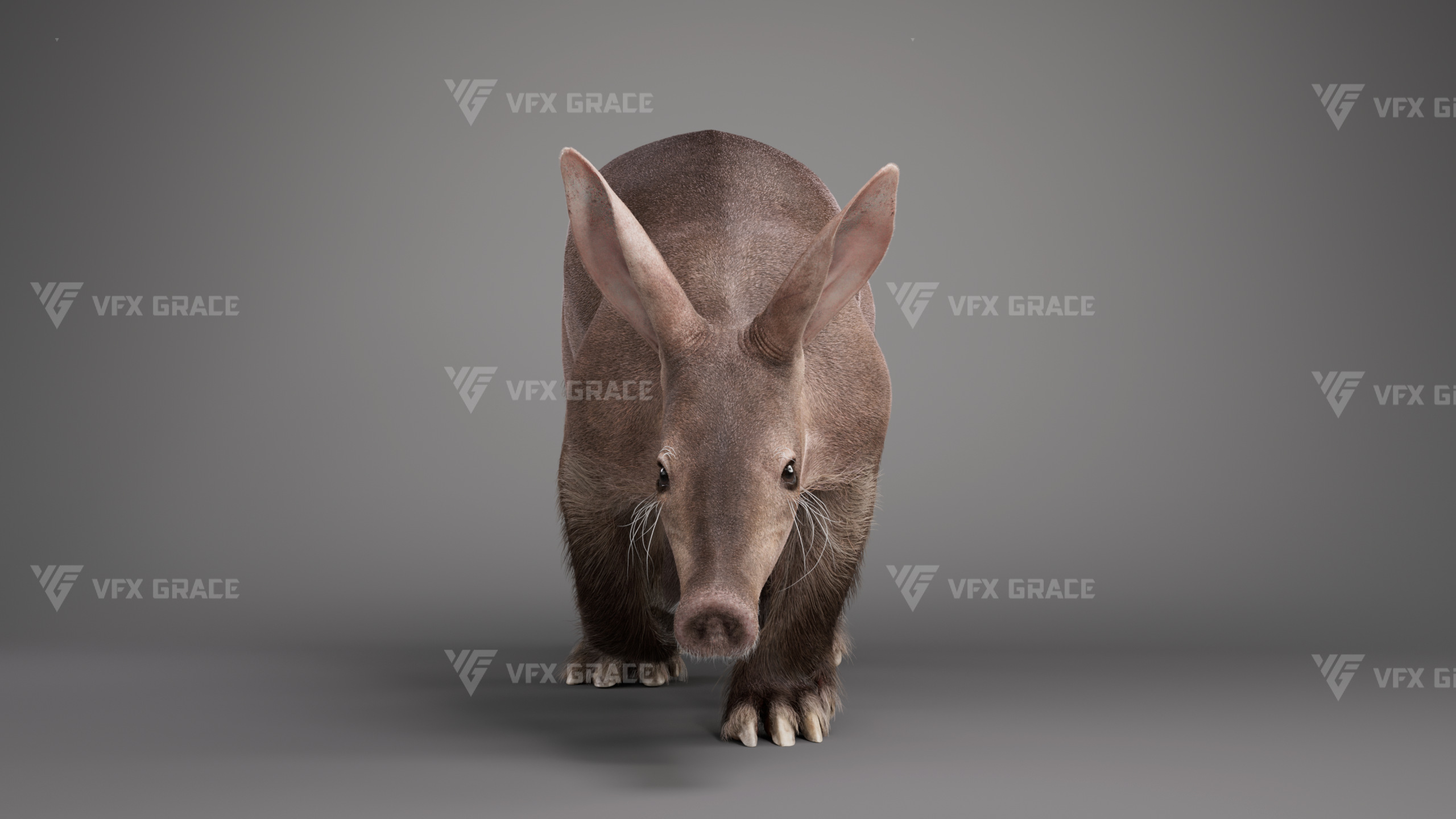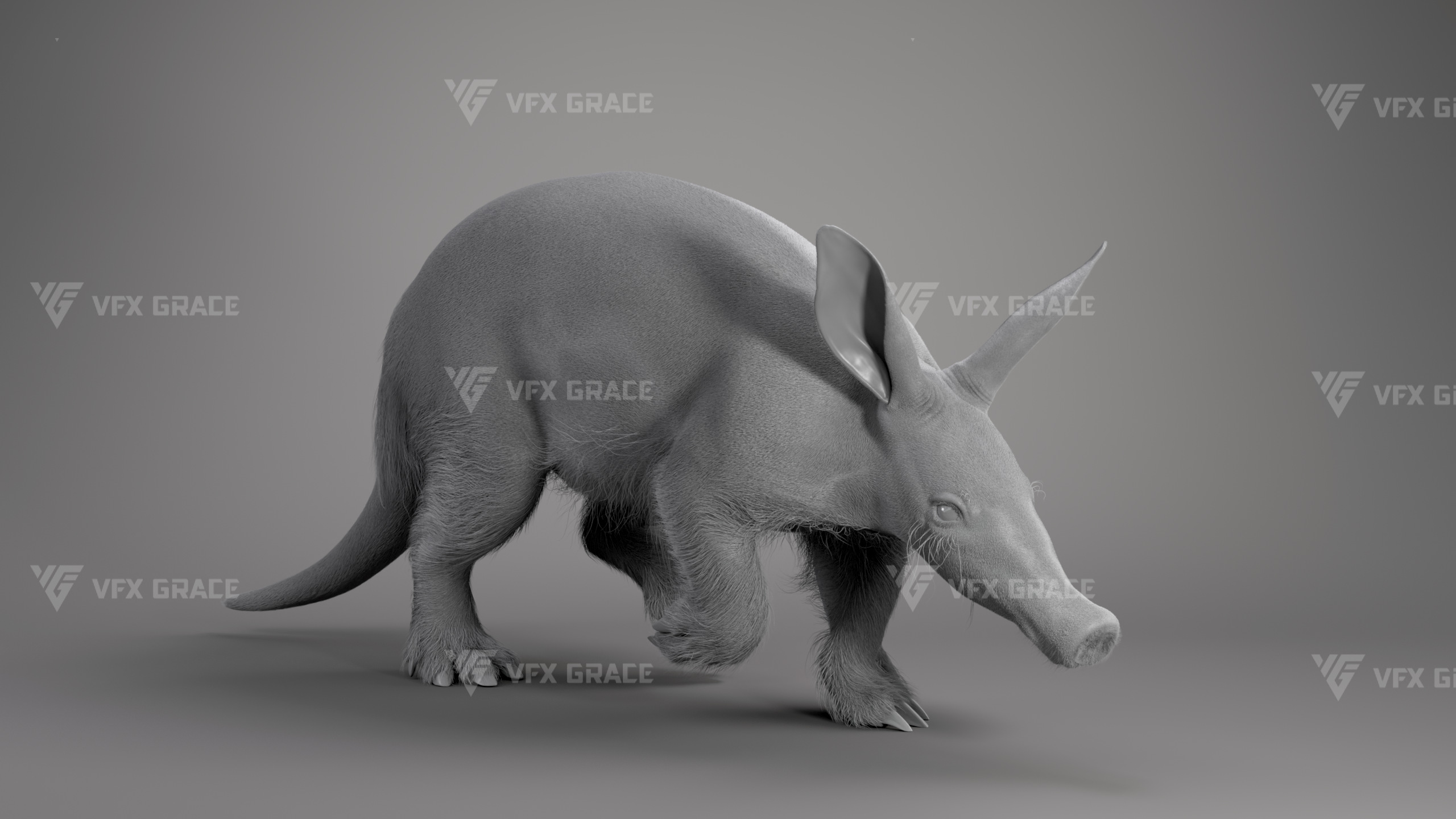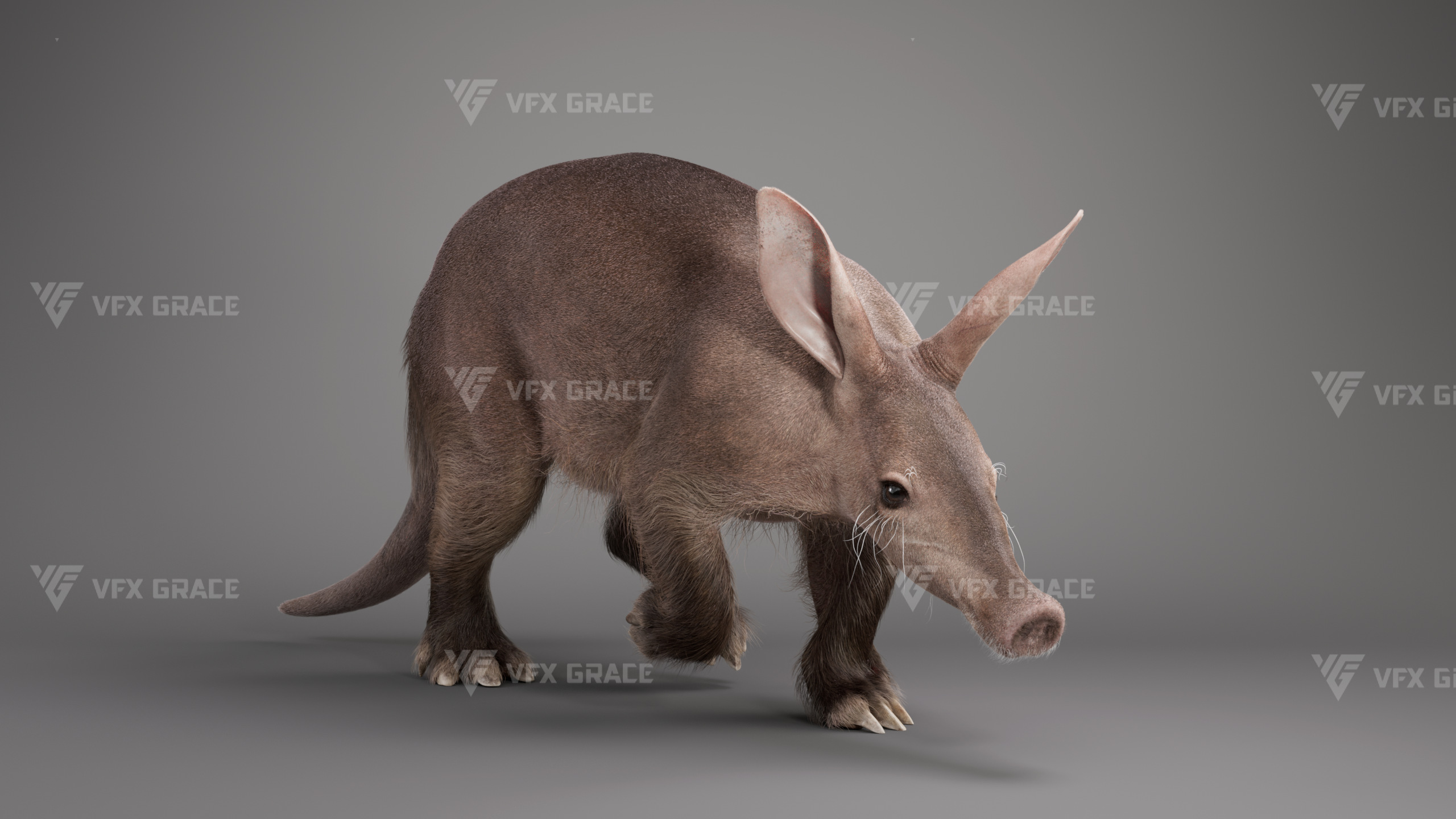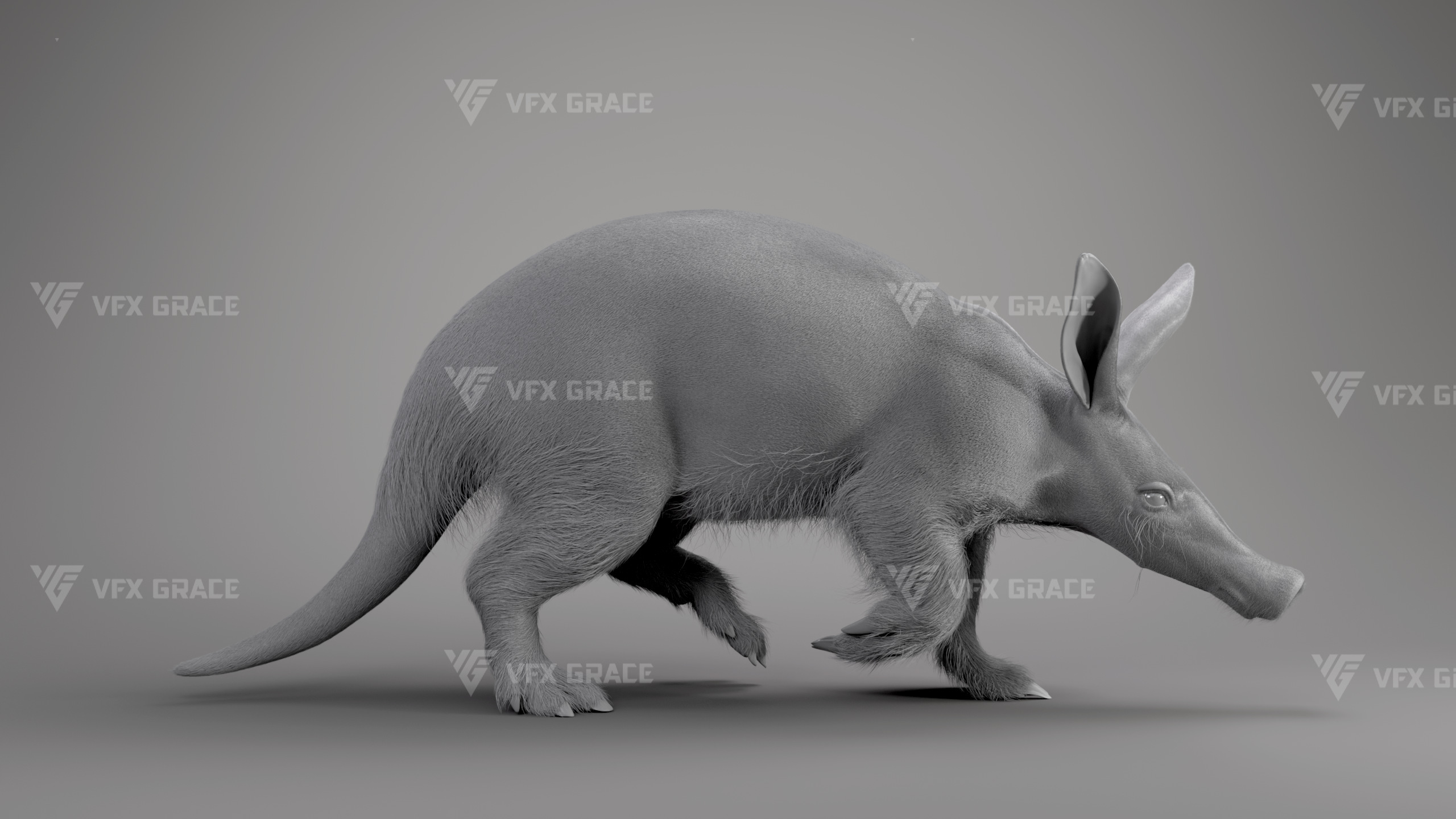 This is a high-quality ardvark character asset, including model, textures, hair, rigging, and animations. All hair is created using the XGen Interactive system, delivering detailed and realistic fur. The character materials are built with Arnold renderer to faithfully replicate the natural appearance and texture. The rigging is designed with reference to real skeletal proportions, ensuring animations follow natural movement principles. The project provides a complete rigging setup along with two sets of realistic animations. This character was created at real-world scale using Maya 2024, suitable for film, animation, and high-precision character presentation.