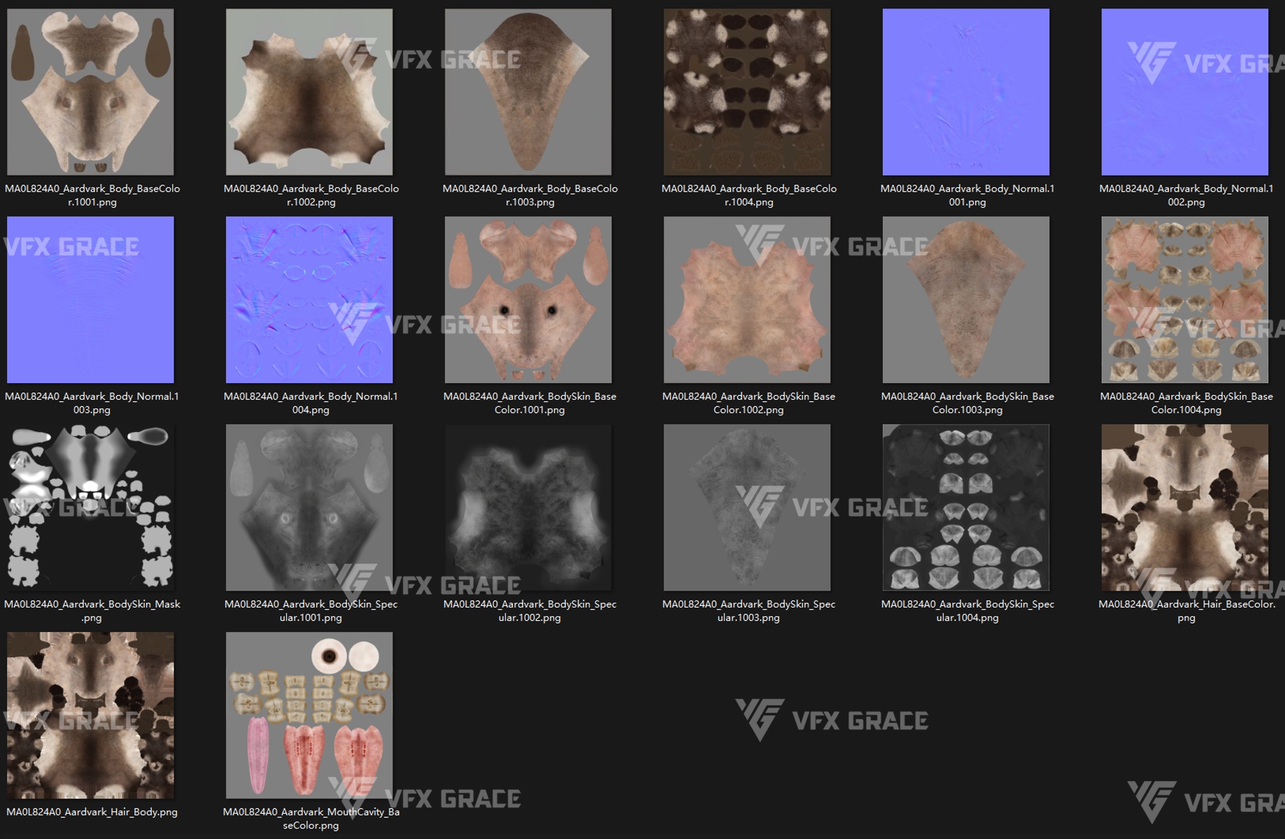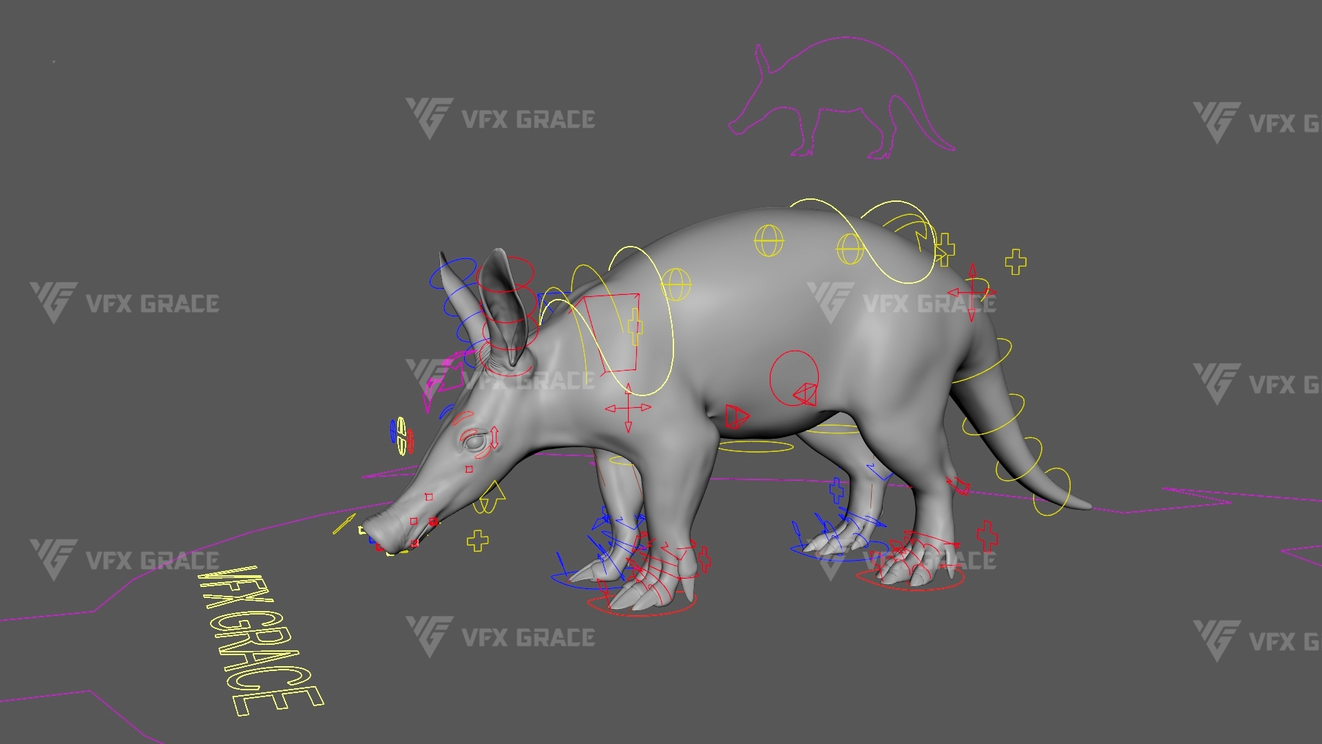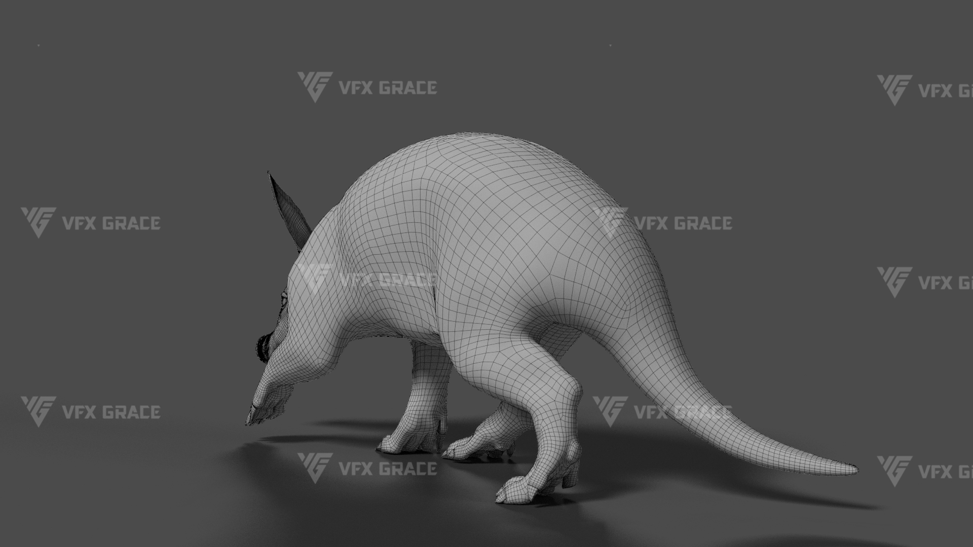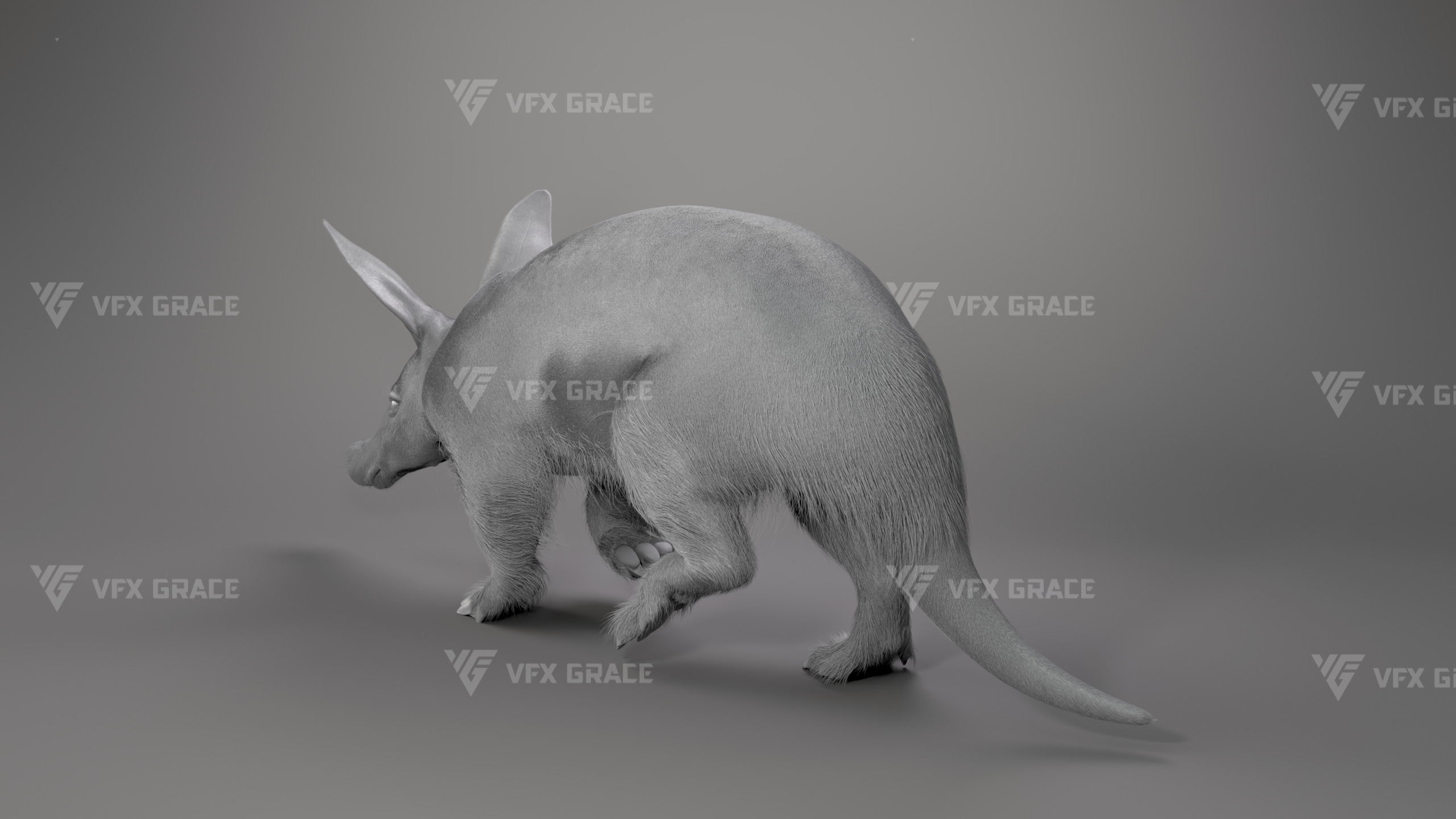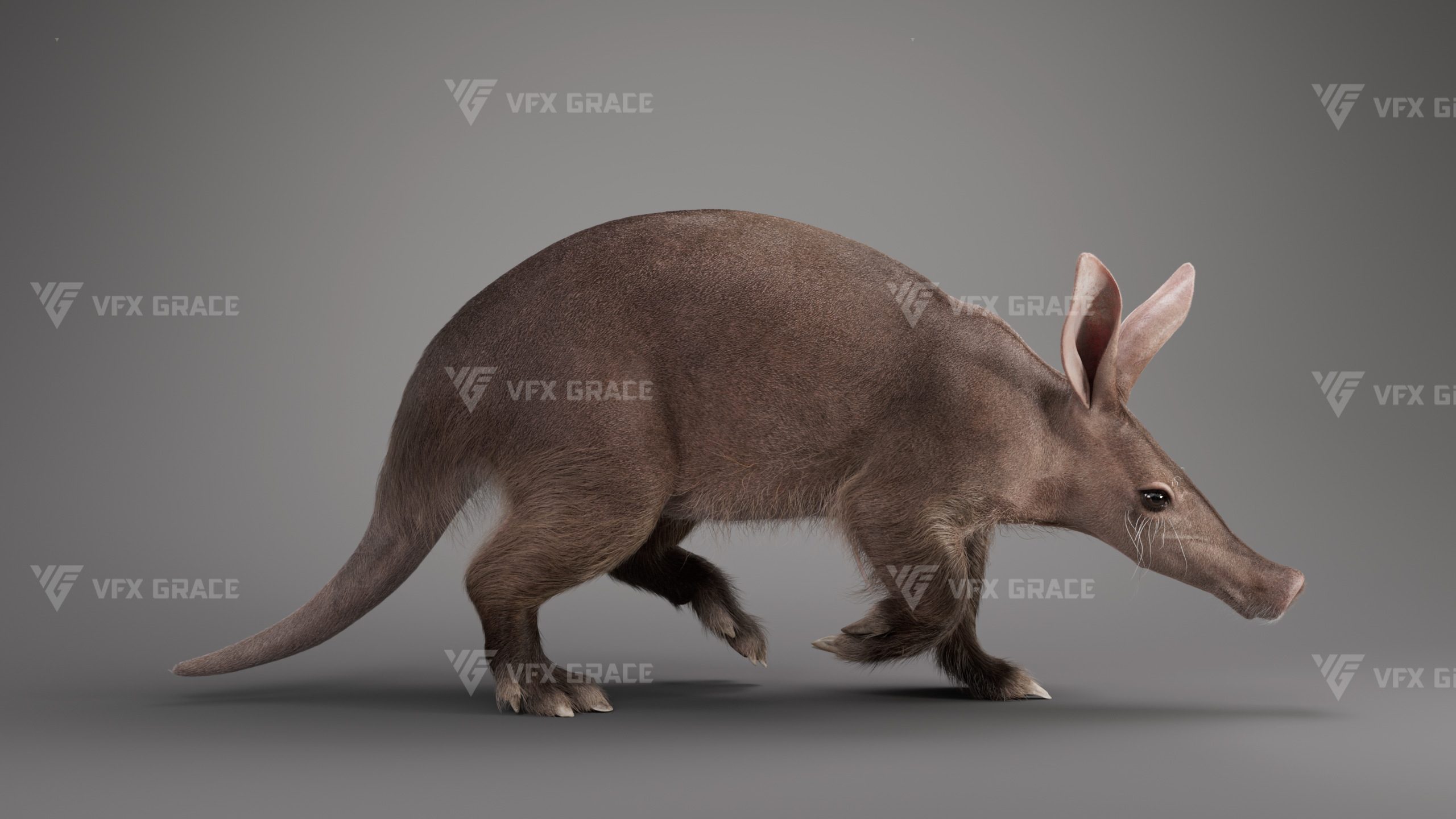 This is a high-quality ardvark character asset, including model, textures, hair, rigging, and animations. All hair is created using the XGen Interactive system, delivering detailed and realistic fur. The character materials are built with Arnold renderer to faithfully replicate the natural appearance and texture. The rigging is designed with reference to real skeletal proportions, ensuring animations follow natural movement principles. The project provides a complete rigging setup along with two sets of realistic animations. This character was created at real-world scale using Maya 2024, suitable for film, animation, and high-precision character presentation.
