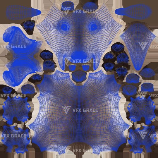 XGen hair: XGen interactive is used for presenting the details of the hair faster, and all maps of density and modifier masks for hair layering are included externally, all masks are in 1K resolution.