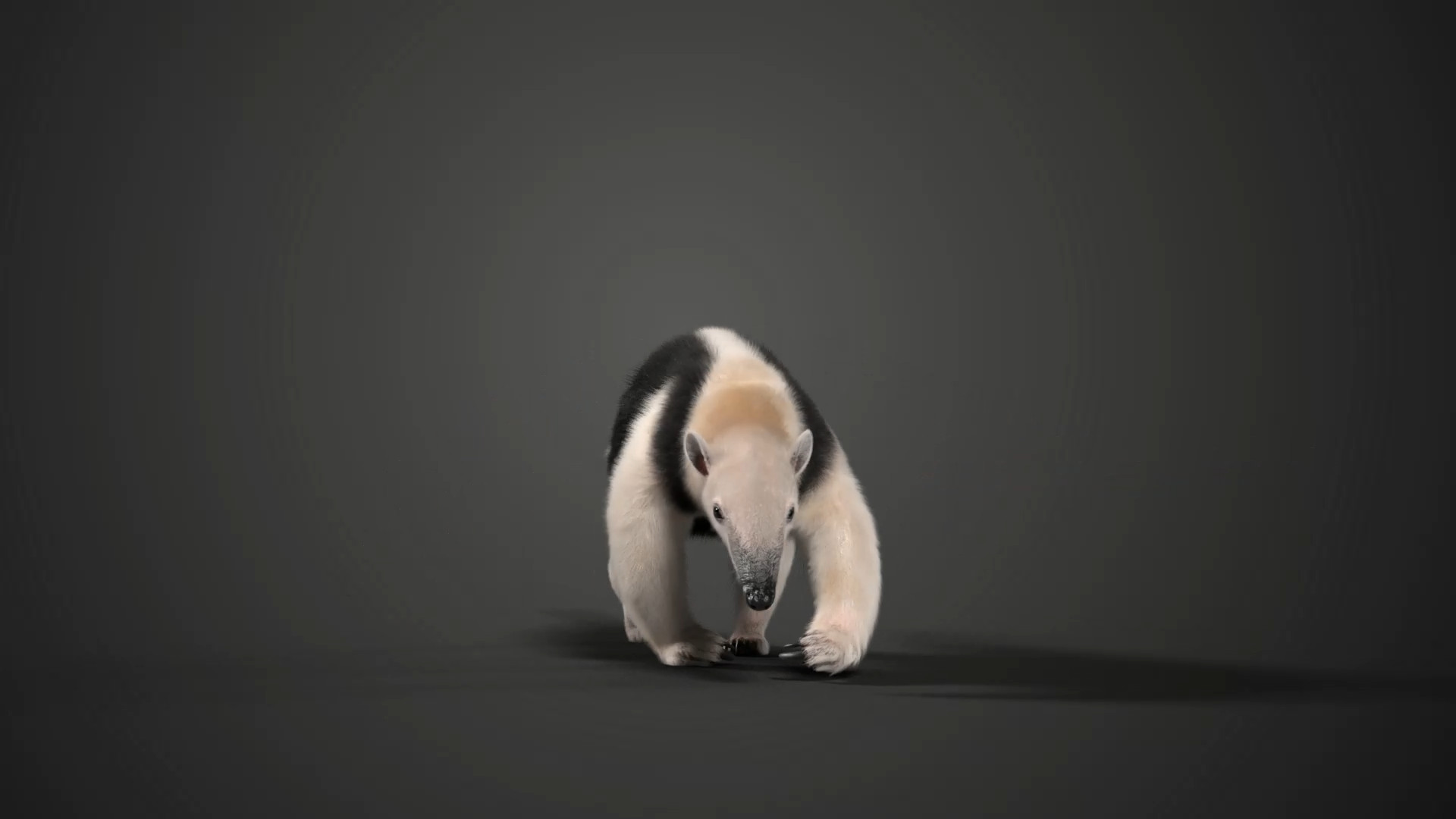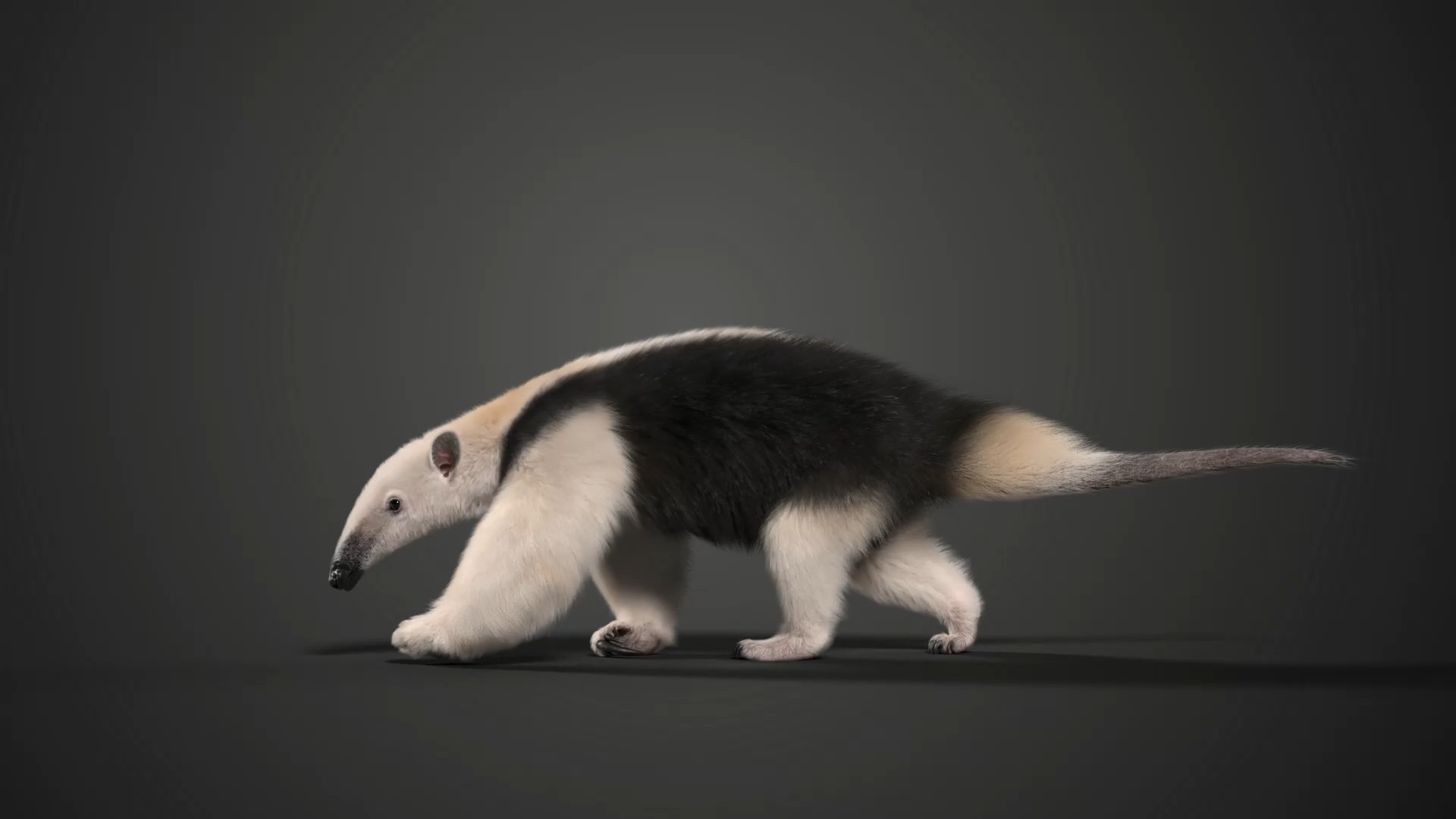 This is a realistic baby anteater model with multiple 4K maps, fur, rigging and animations. It's made with Blender and Cycles renderer at a real-world scale.