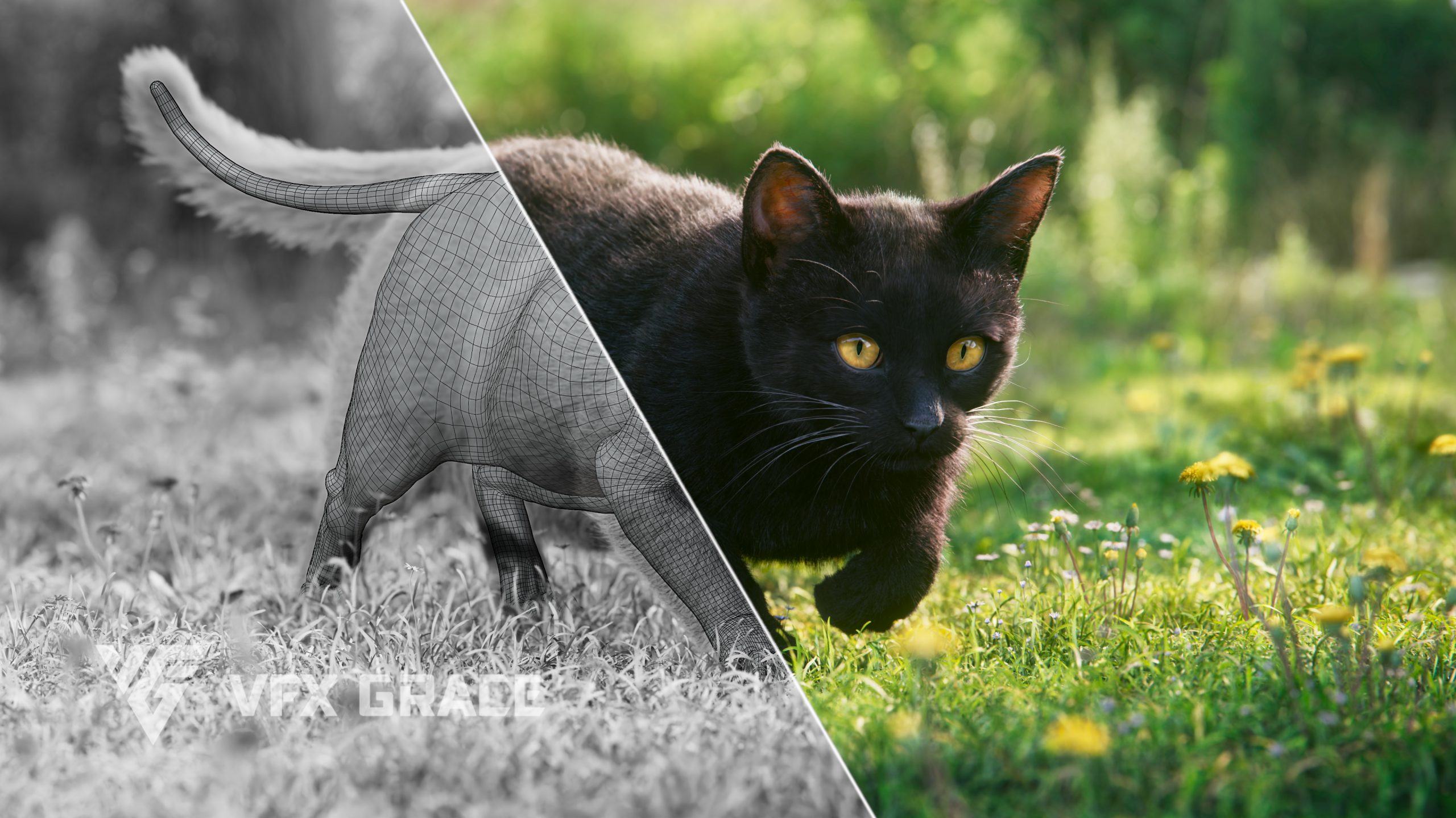 This is a high-quality black cat model with maps, hair, rigging and three animations. The hair is created in XGen Interactive with enough details, and all textures are rendered with Arnold renderer for realistic effects. The rigging is created with reference to real bones, making the animation in line with natural movements. The model is created with Maya 2026 at real-world scale.