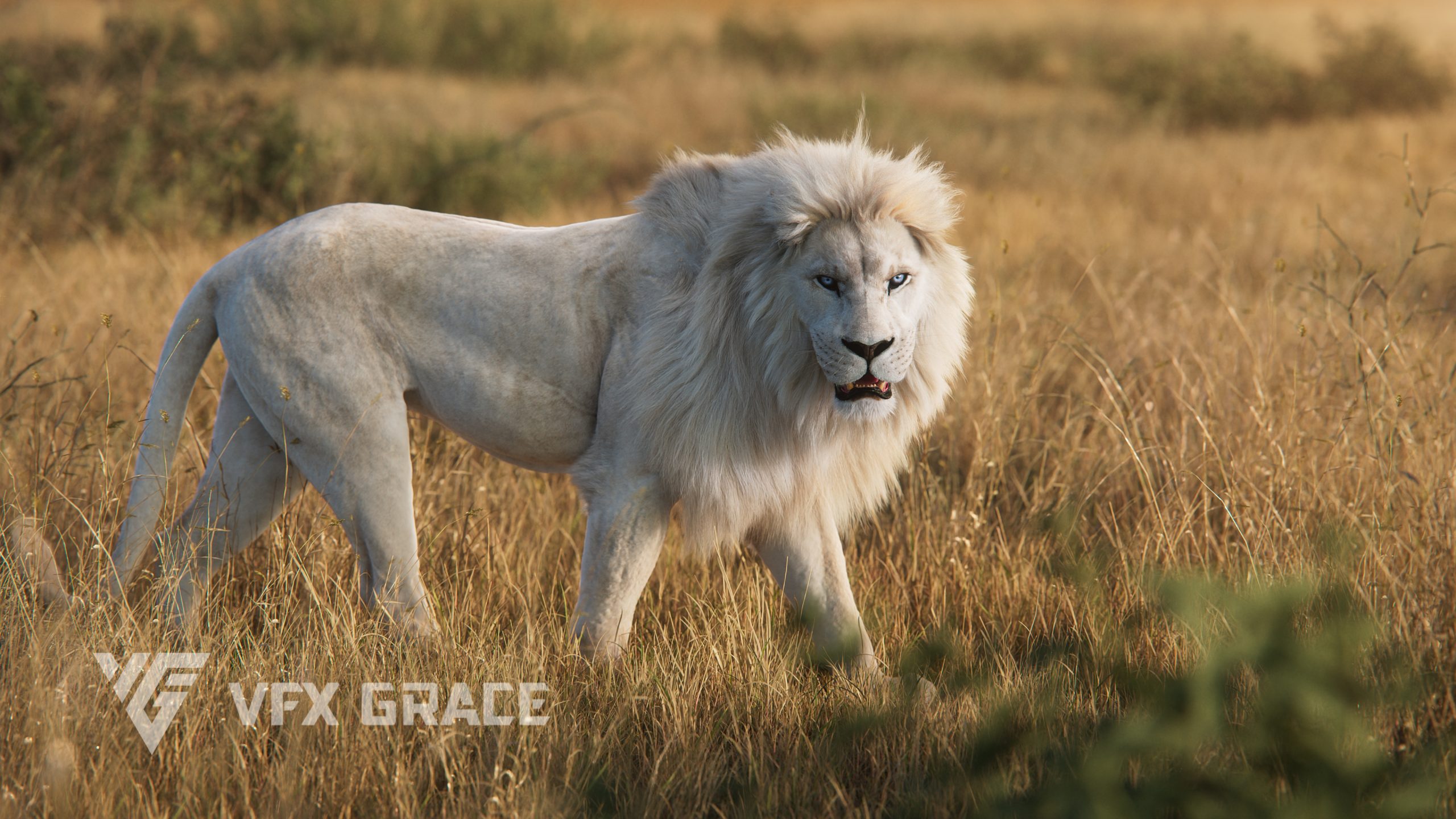 A male lion model created with Blender with realistic muscle structure and 4K UDIM maps, as well as a hair system which adds realism to the fur.
