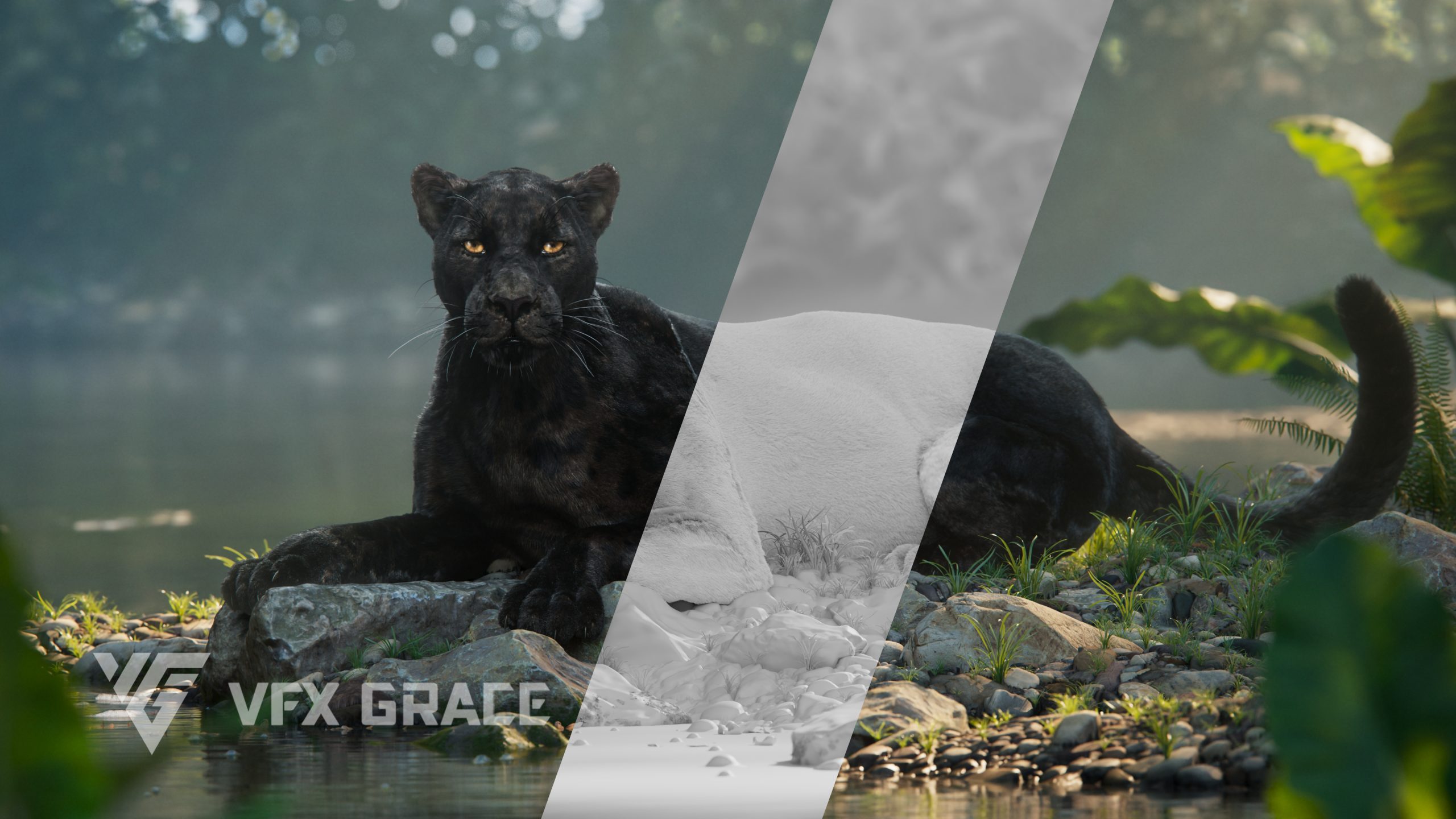 Black Jaguar 3D, Blender Black Jaguar (Model, Textures, Hair, Rigging, Animation)