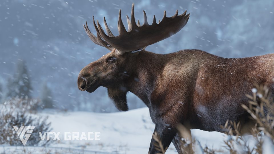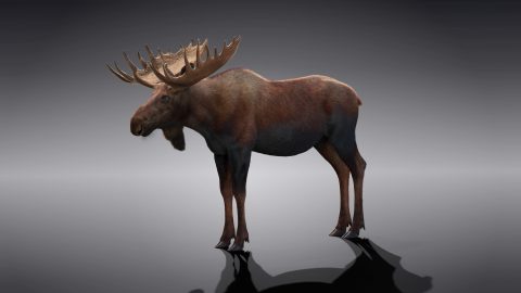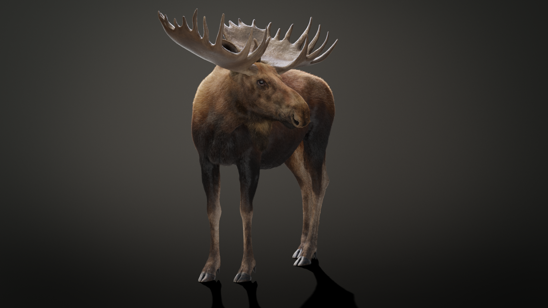 This is a high-quality male moose model with multiple 4K maps, rigging, animation, and fur. The skin and the hair maps of the horns are made separately to make the character more realistic. This model is made by Blender and rendered by Cycles renderer at real-world scale.