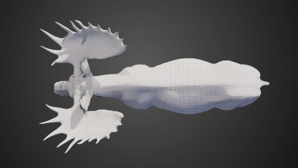 It consists of 9 objects: Body, horn01, horn02, tears, lacrimal glands, pupils, scleras, oral cavity, and tongue.