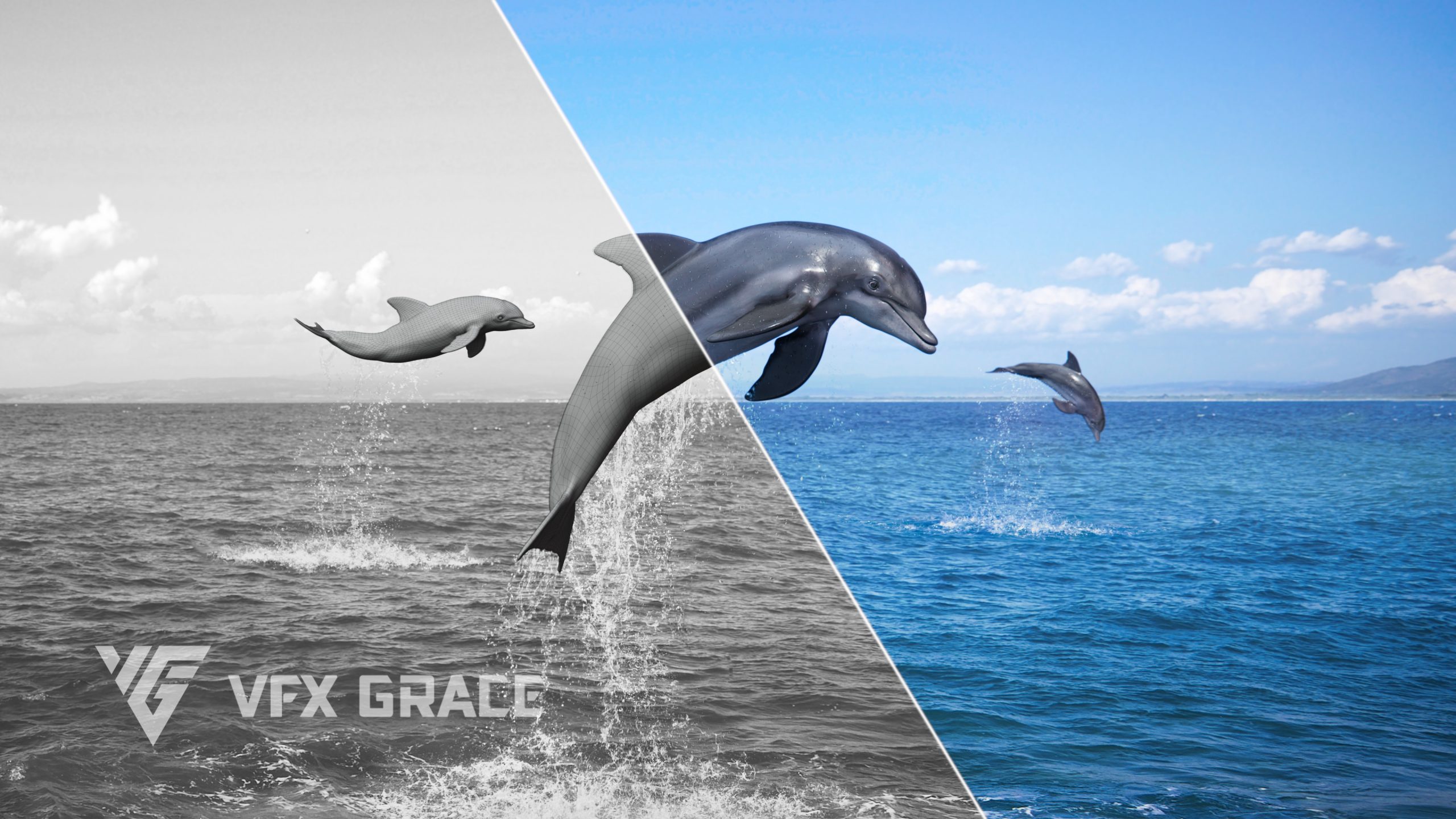 This project includes three adult bottlenose dolphins, featuring models, textures, rigging, and animations. The models have realistic muscle structure, the textures are in UDIM format with 4K resolution, achieving a highly realistic effect. Additionally, it includes two lively and realistic animations. This model is made with Blender and Cycles renderer at real-world scale.