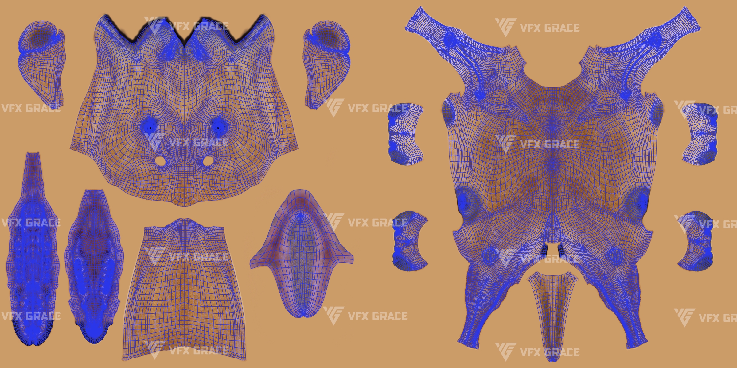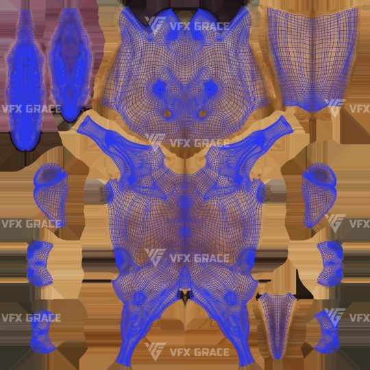 XGen hair: XGen interactive is used for presenting the details of the hair faster, and all maps of density and modifier masks for hair layering are included externally, all masks are in 1K resolution.