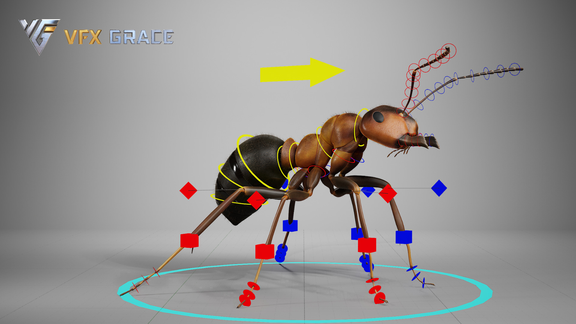 And many more fine-tuned controls that give animators a comprehensive and detailed control for posing and animating the carpenter ant.
