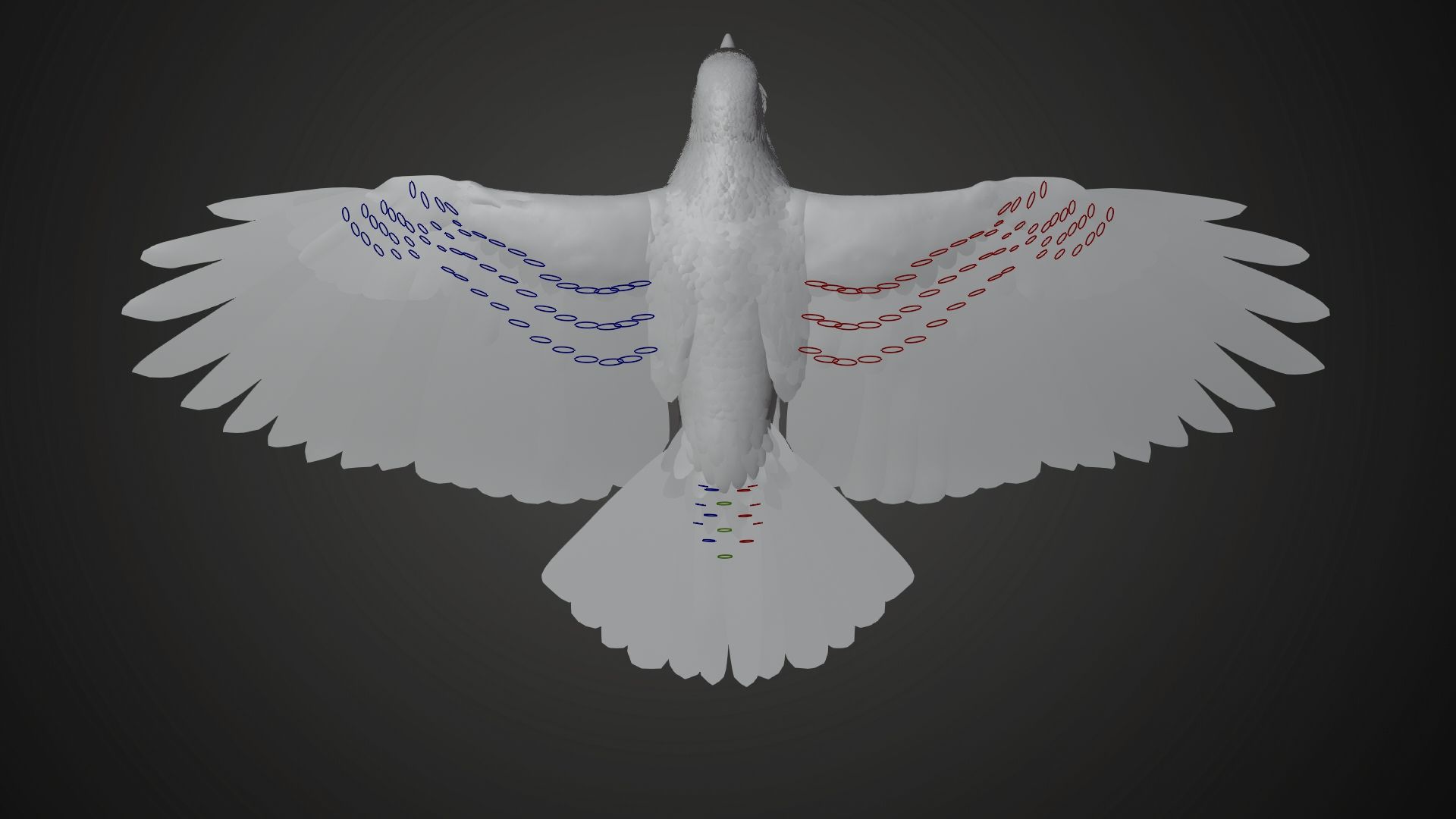 CTR_wing_b.L.001, CTR_wing_b.L and CTR_wing_b.R control the folding and unfolding of the feathers on the tail.