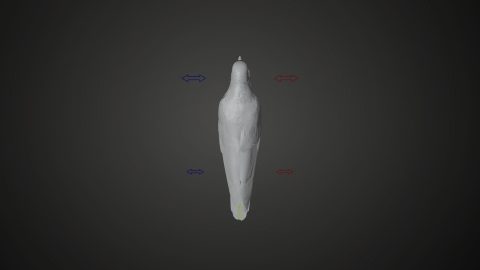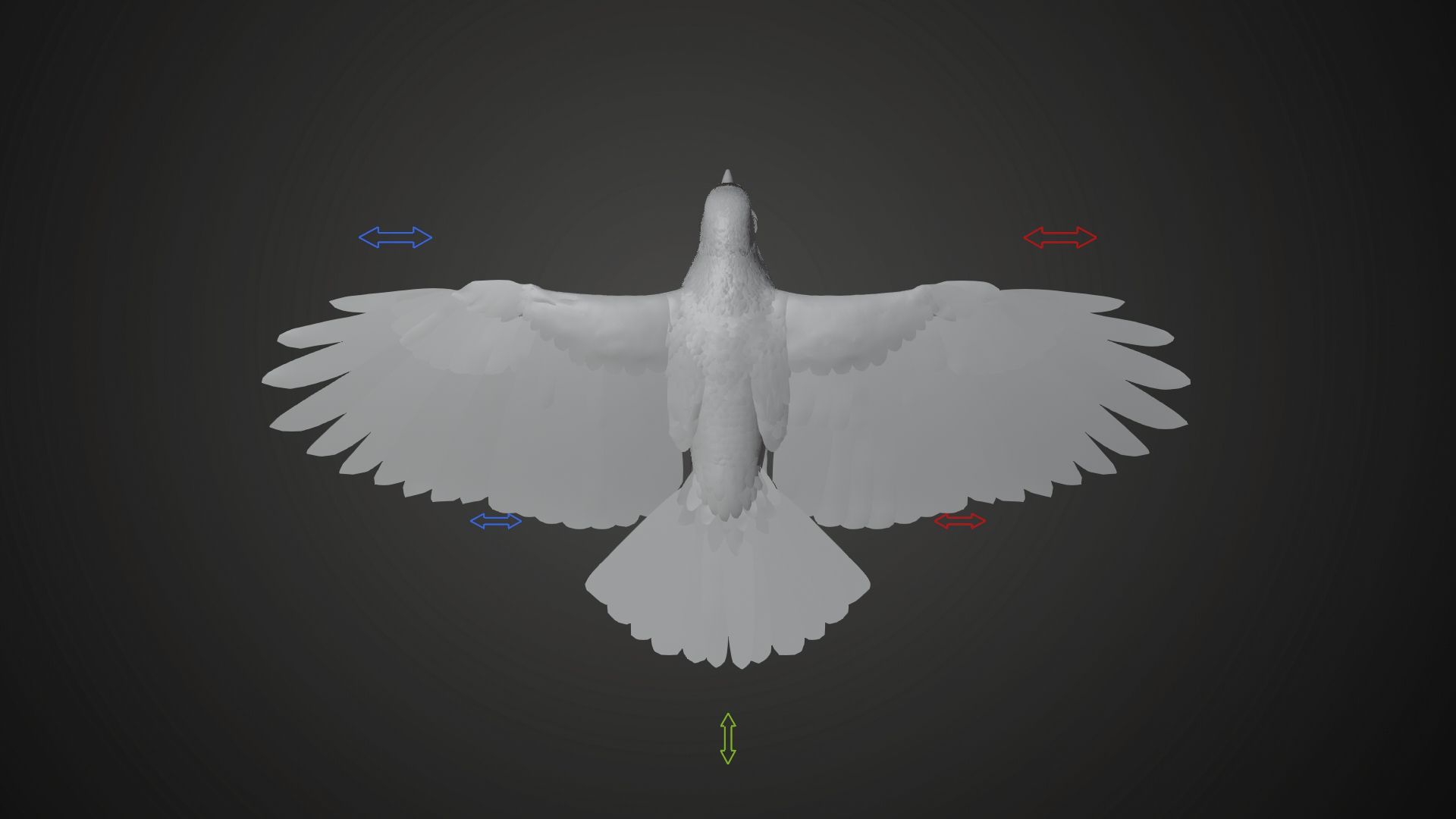 The model consists of Body, eyelids, pupils, corneas, tongue, feathers.