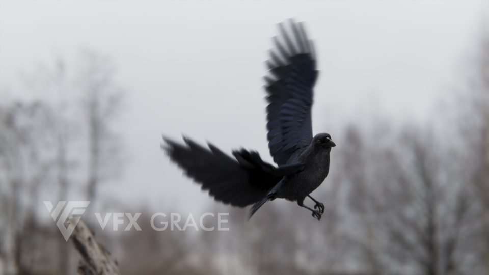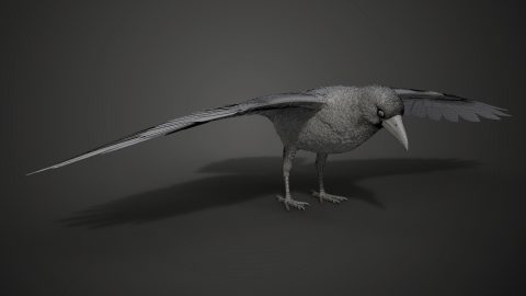 This carrion crow model has 4K UDIM maps of the body, 6K maps of the feathers, fur, rigging with a preset of folding wings, and 7 animations. The model is made with Blender and Cycles renderer at real-world scale.