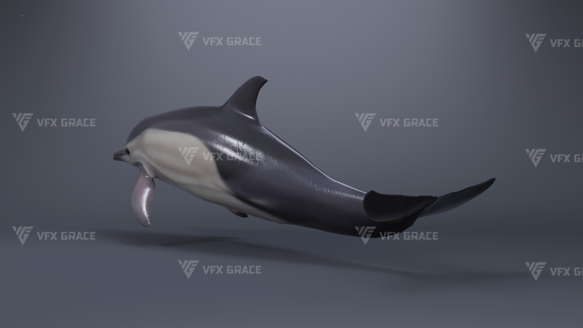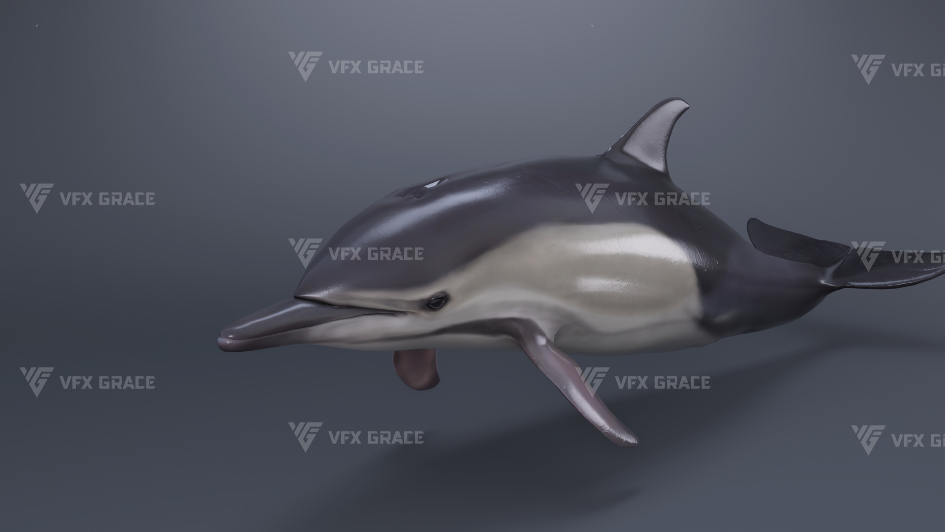 This is a high-quality delphinus delphis model with maps, rigging and animations. All textures are rendered with Arnold renderer for realistic effects. The rigging is created with reference to real bones, making the animation in line with natural movements. The project includes the rigging setup and one standard animation. The model is created with Maya 2026 at real-world scale.