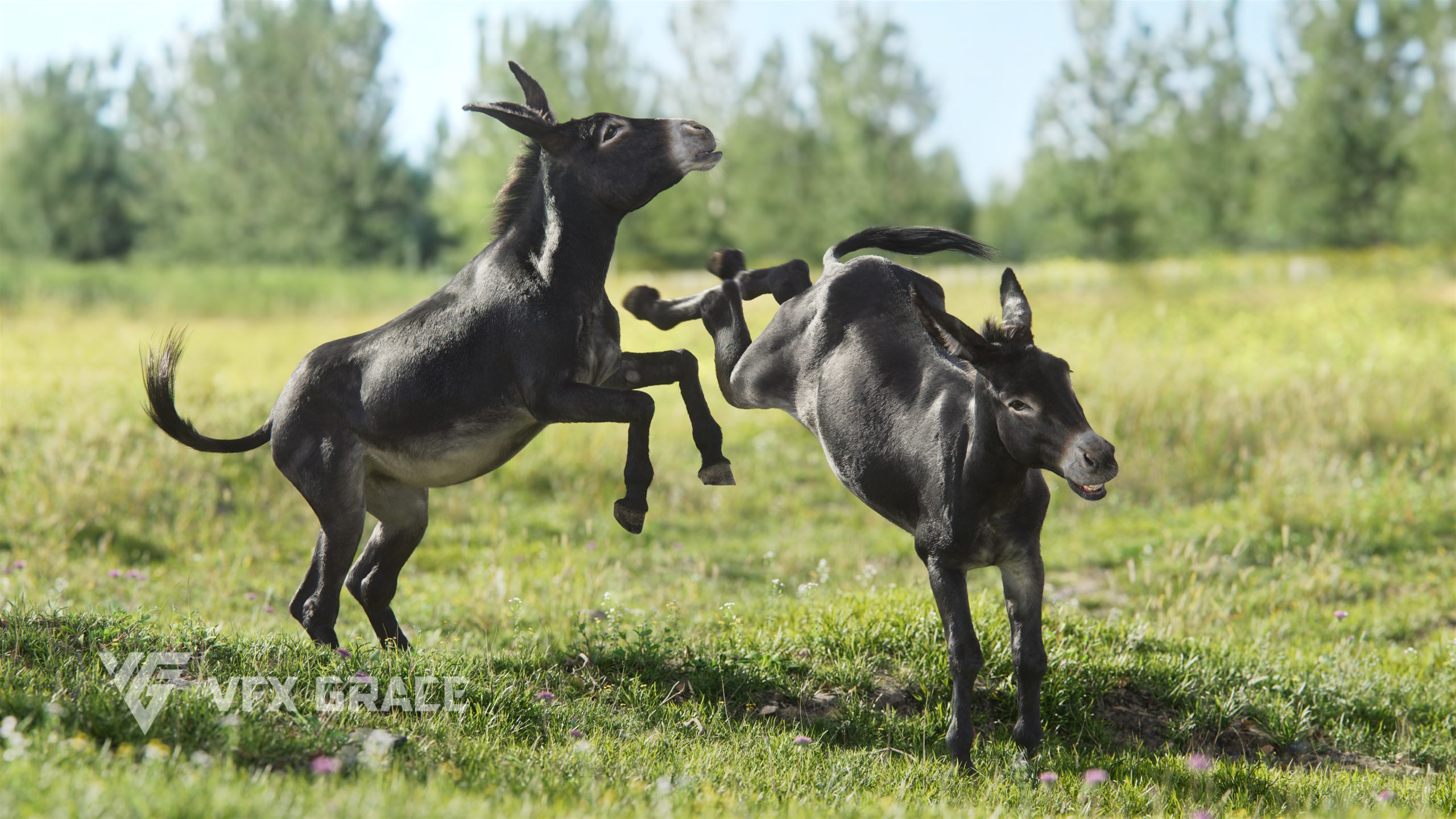 This is a realistic Donkey model with multiple 4K PBR maps, fur, rigging, animations and some baked hair dynamics. It's made with Blender and Cycles renderer.