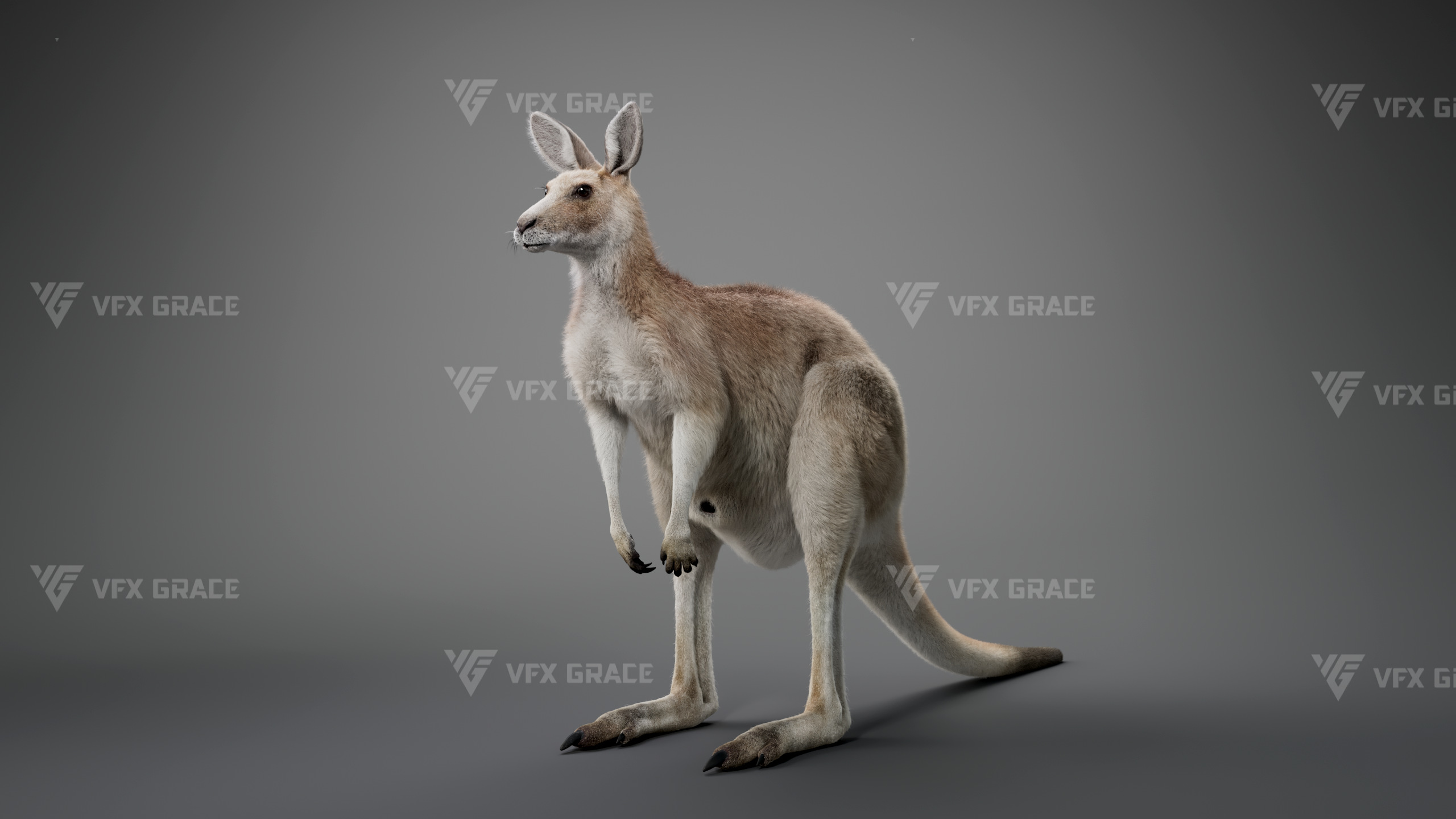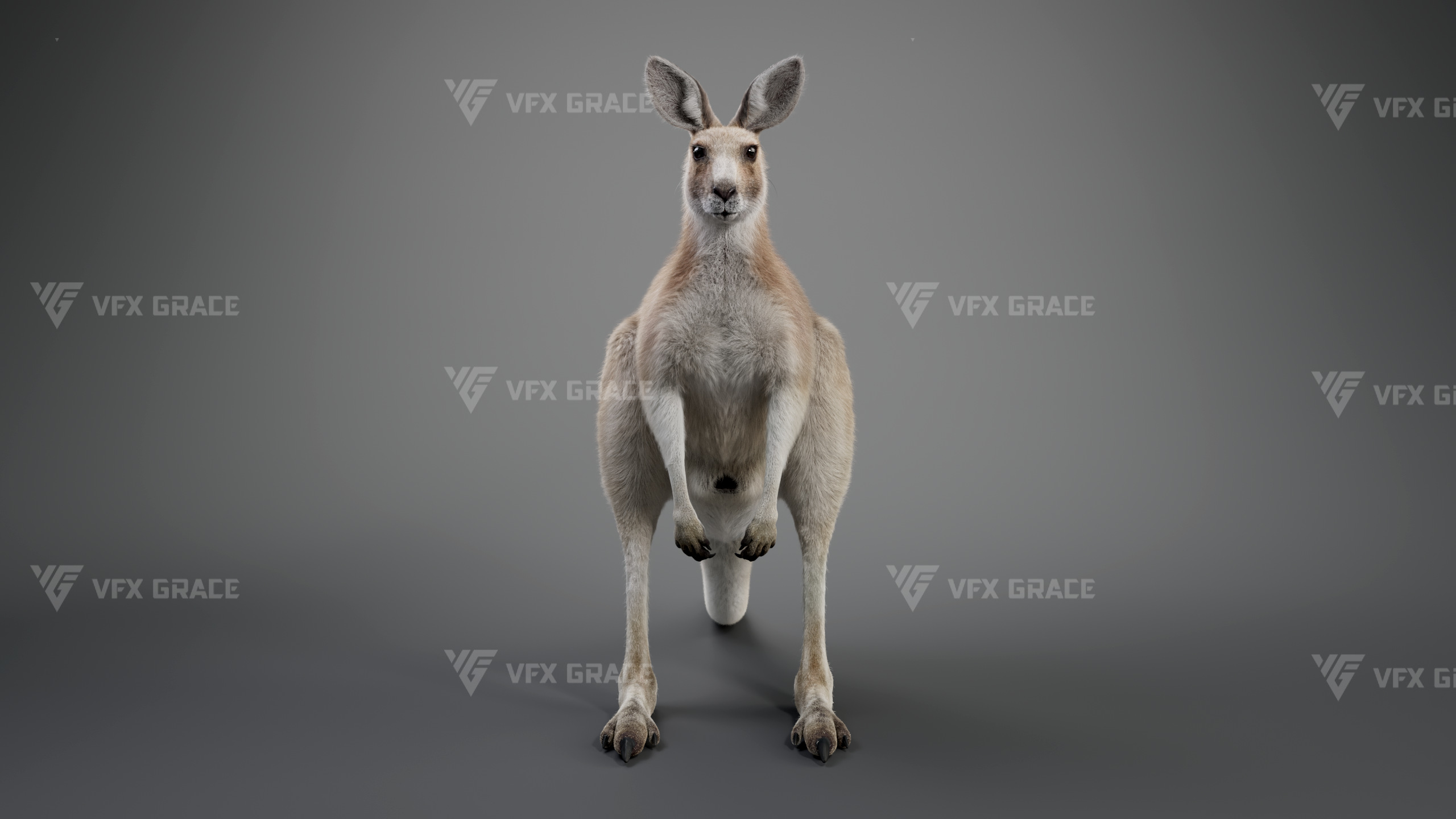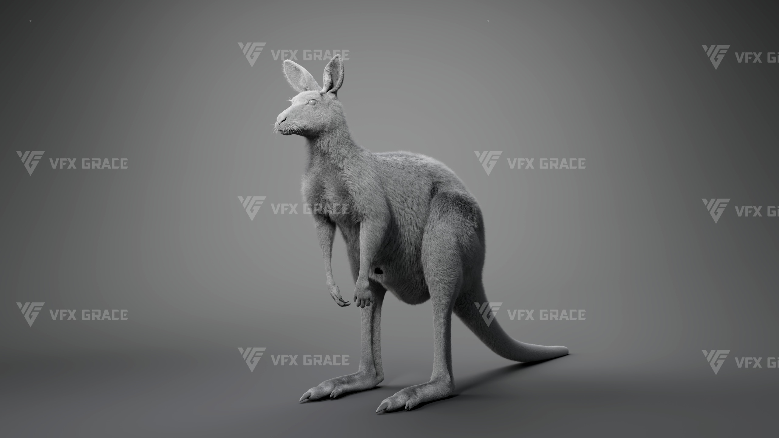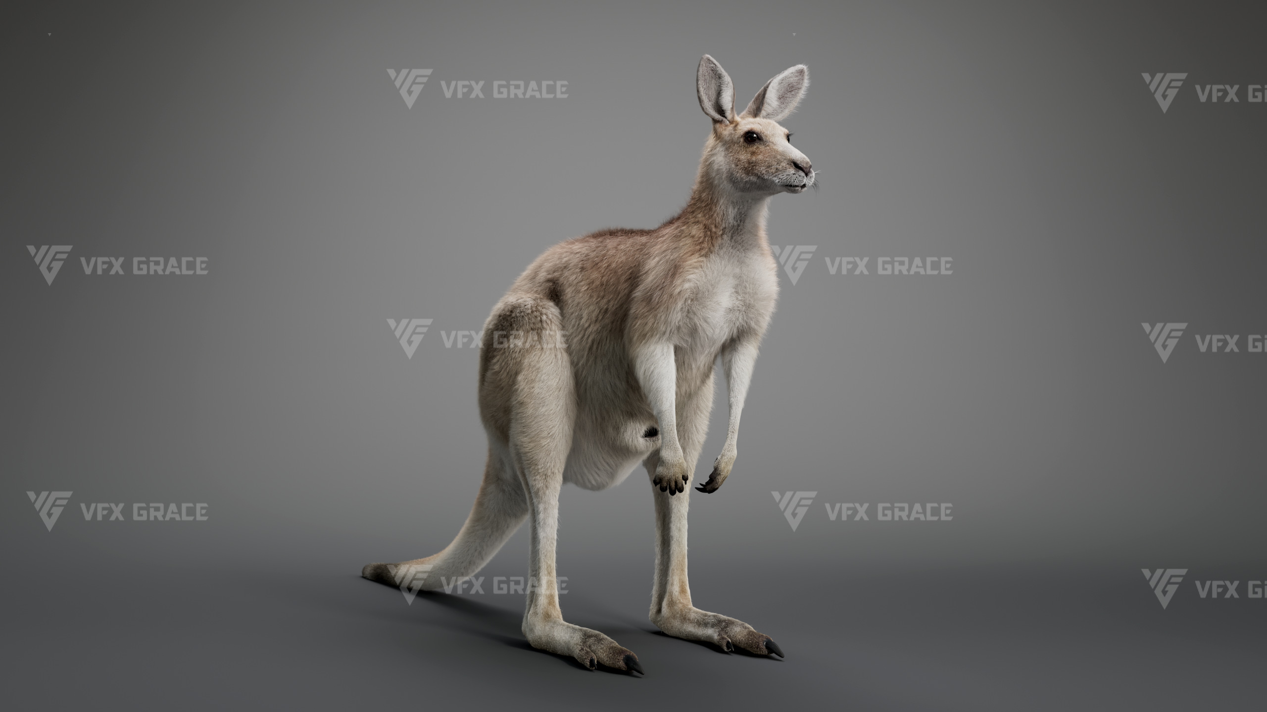 This is a high-quality female kangaroo character asset, including model, textures, hair, rigging, and animations. All hair is created using the XGen Interactive system, delivering detailed and realistic fur. The character materials are built with Arnold renderer to faithfully replicate the natural appearance and texture. The rigging is designed with reference to real skeletal proportions, ensuring animations follow natural movement principles. The project provides a complete rigging setup along with one jumping animation. This character was created at real-world scale using Maya 2024, suitable for film, animation, and high-precision character presentation.