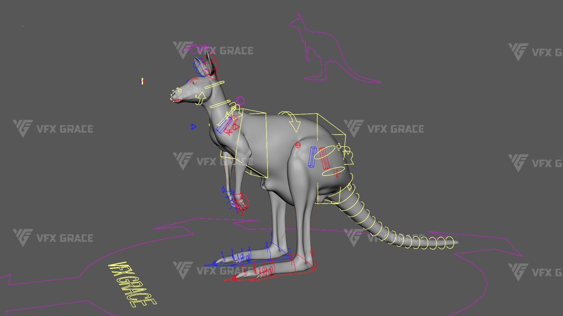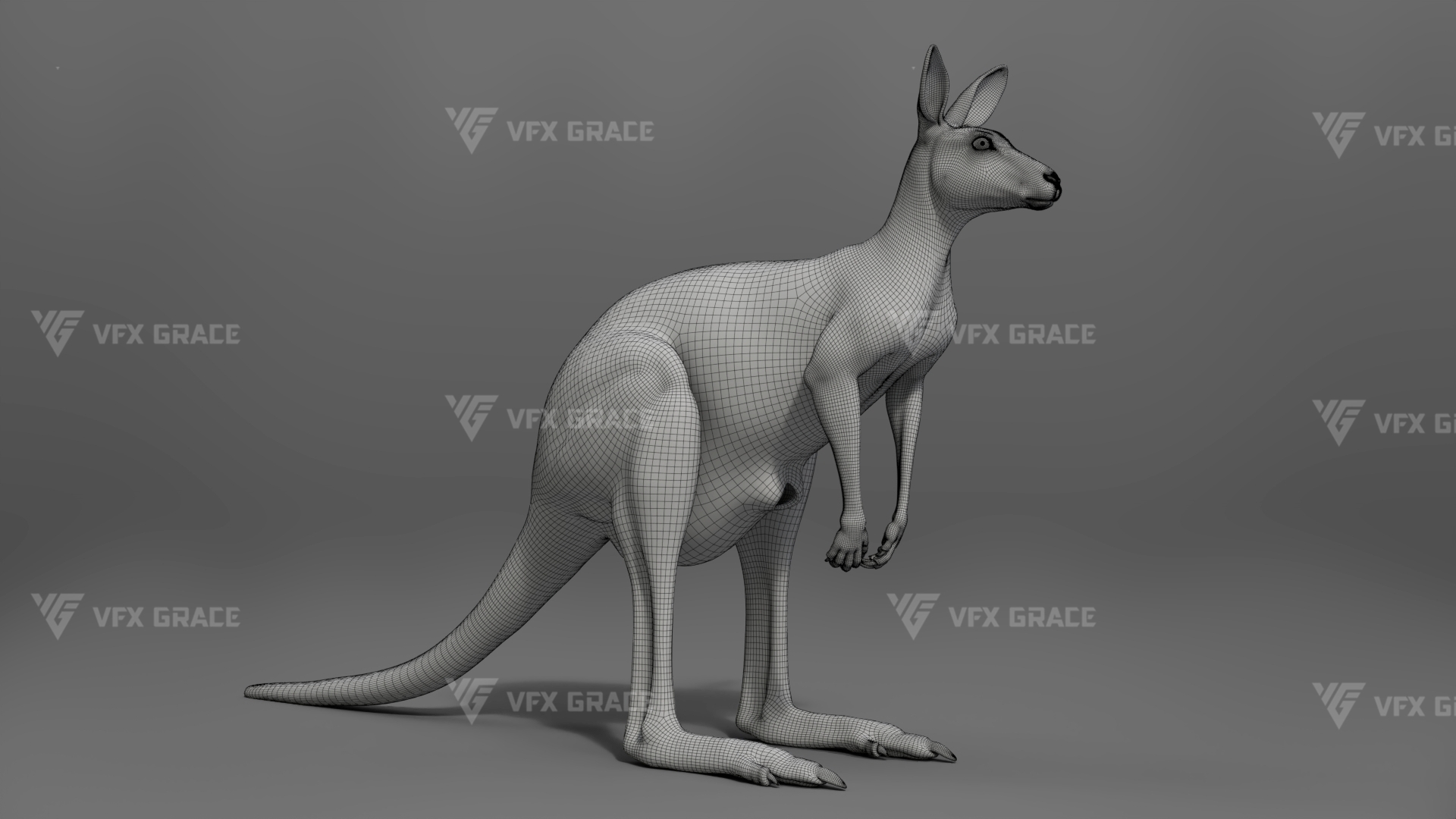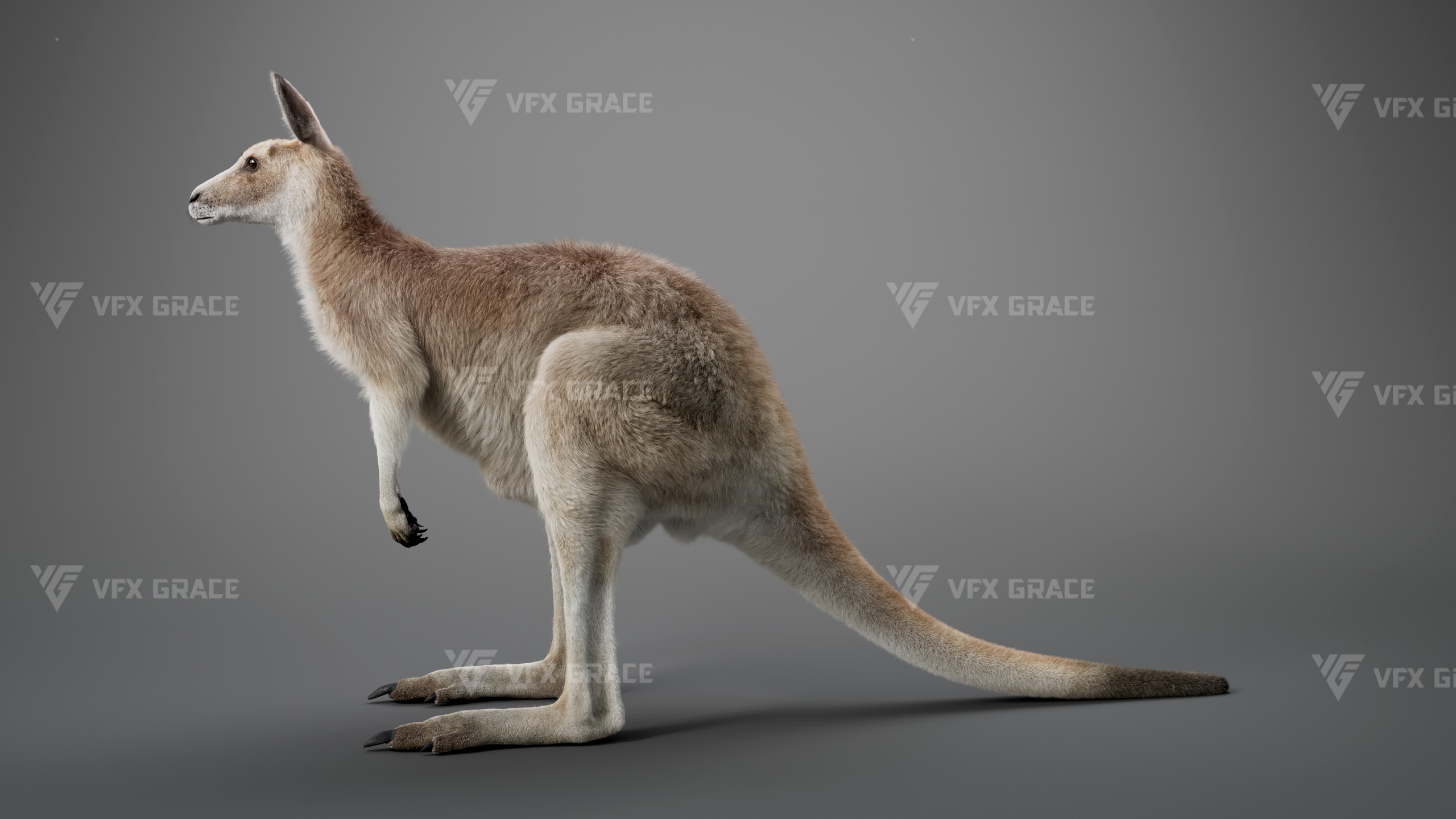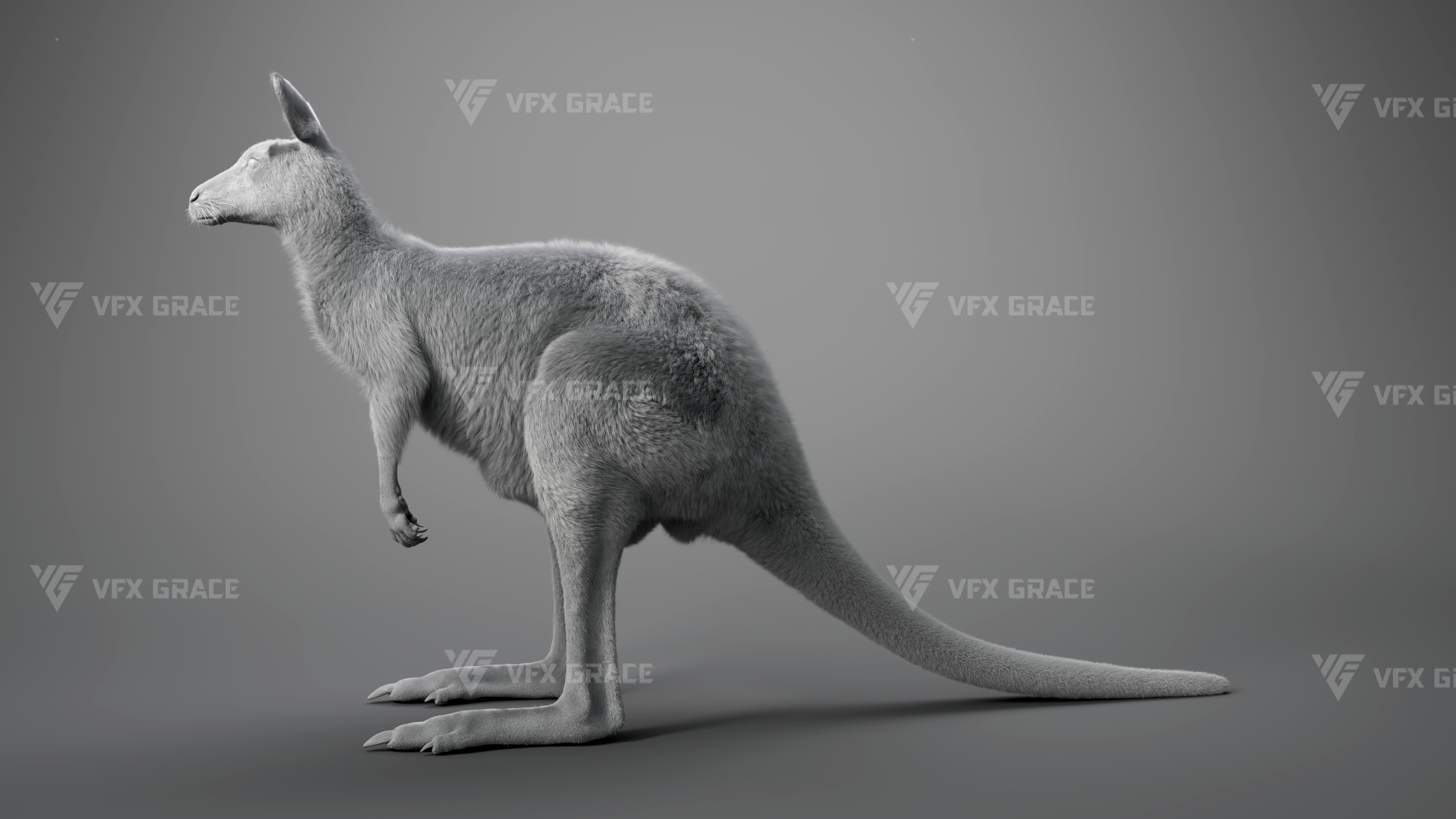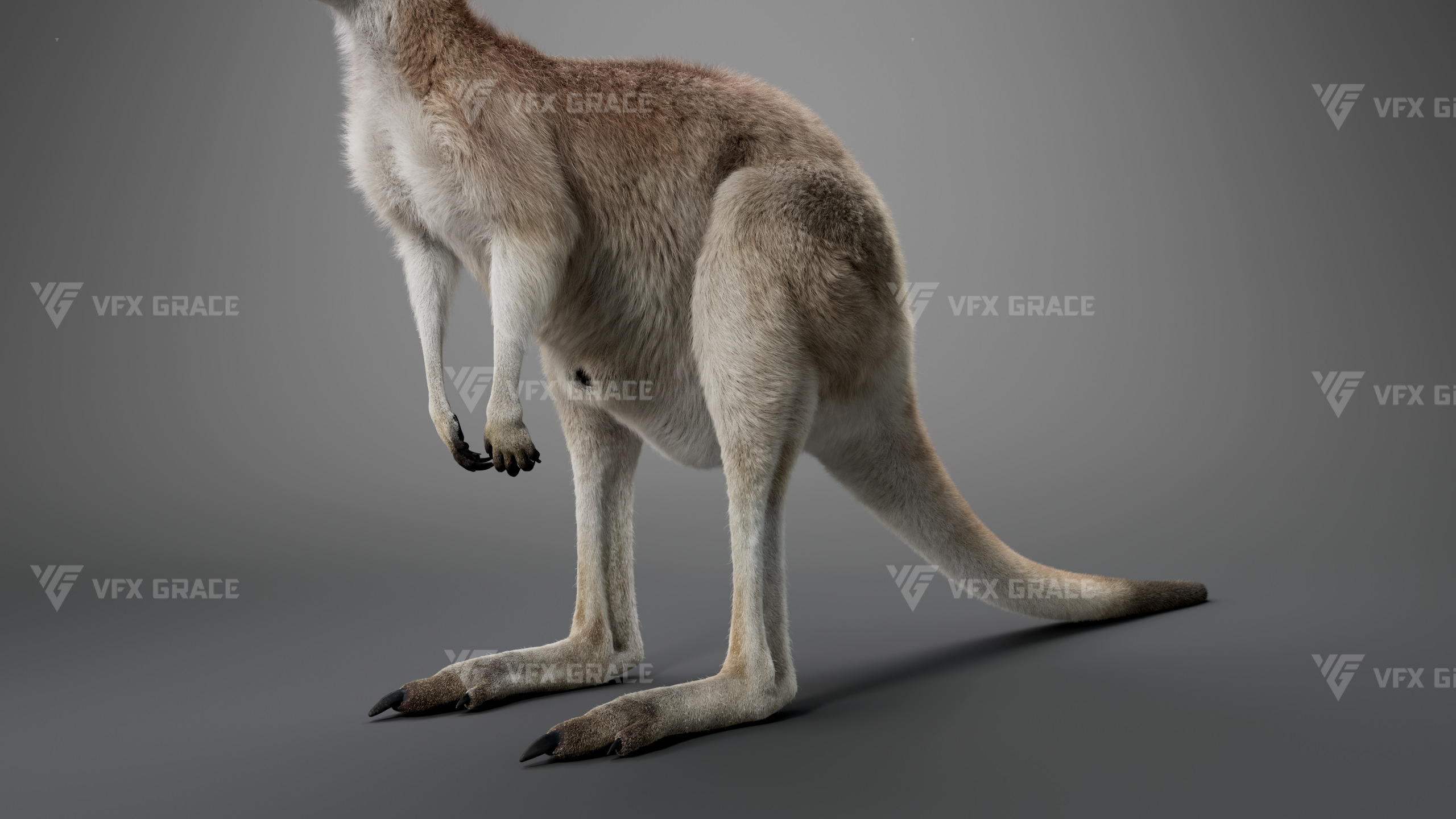 This is a high-quality female kangaroo character asset, including model, textures, hair, rigging, and animations. All hair is created using the XGen Interactive system, delivering detailed and realistic fur. The character materials are built with Arnold renderer to faithfully replicate the natural appearance and texture. The rigging is designed with reference to real skeletal proportions, ensuring animations follow natural movement principles. The project provides a complete rigging setup along with one jumping animation. This character was created at real-world scale using Maya 2024, suitable for film, animation, and high-precision character presentation.
