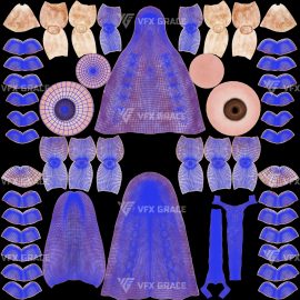 Textures and Materials: There are 13 .tx files which support Arnold, all in 4K resolution for best quality and details. The materials of the character and the hair are rendered with Arnold renderer to present realistic effects. There are 2 UV sets of the body, which support single quadrant or multiple quadrants.