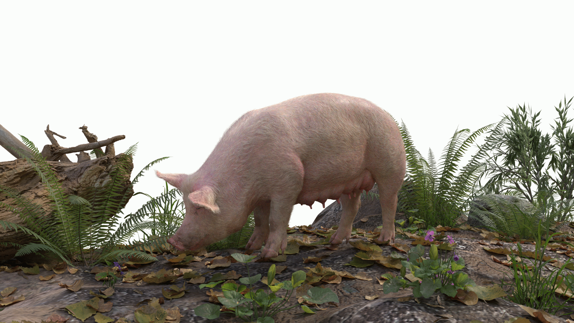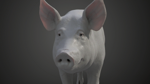 This is a high-quality female large white pig model with multiple 4K textures, fur, rigging, and animations, and it's made with Blender and Cycles renderer at real-world scale. The skin texture and the hair texture are made separately for realism. Besides, 3 loopable animations and 2 unlooped animations are available.