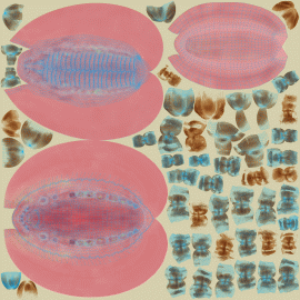 It consists of 10 objects: Body, sclerae, pupils, lacrimal caruncles, upper jaw, lower jaw, upper teeth, lower teeth, tongue, rocks.