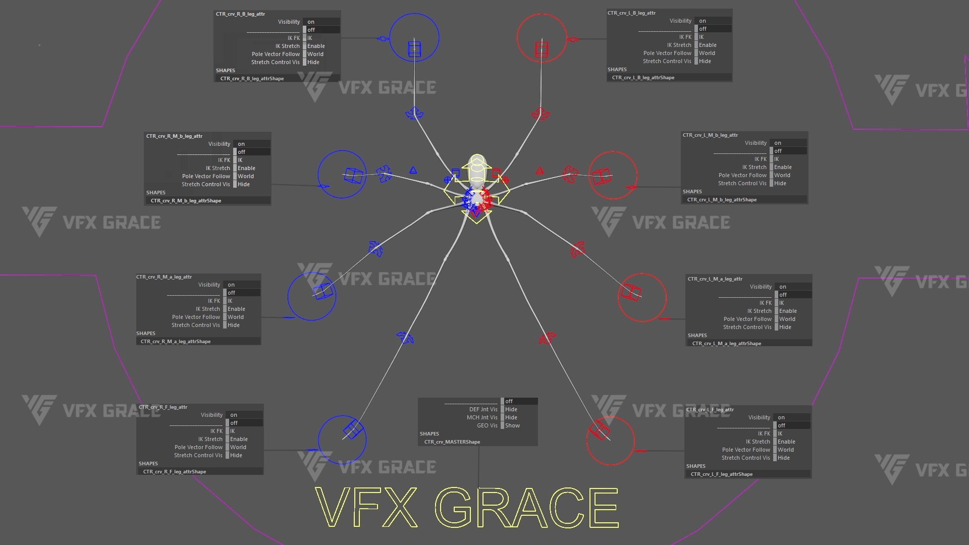 CTR_crv_L/R_F/M_b/M/B_leg1_attr: Leg attribute controllers.