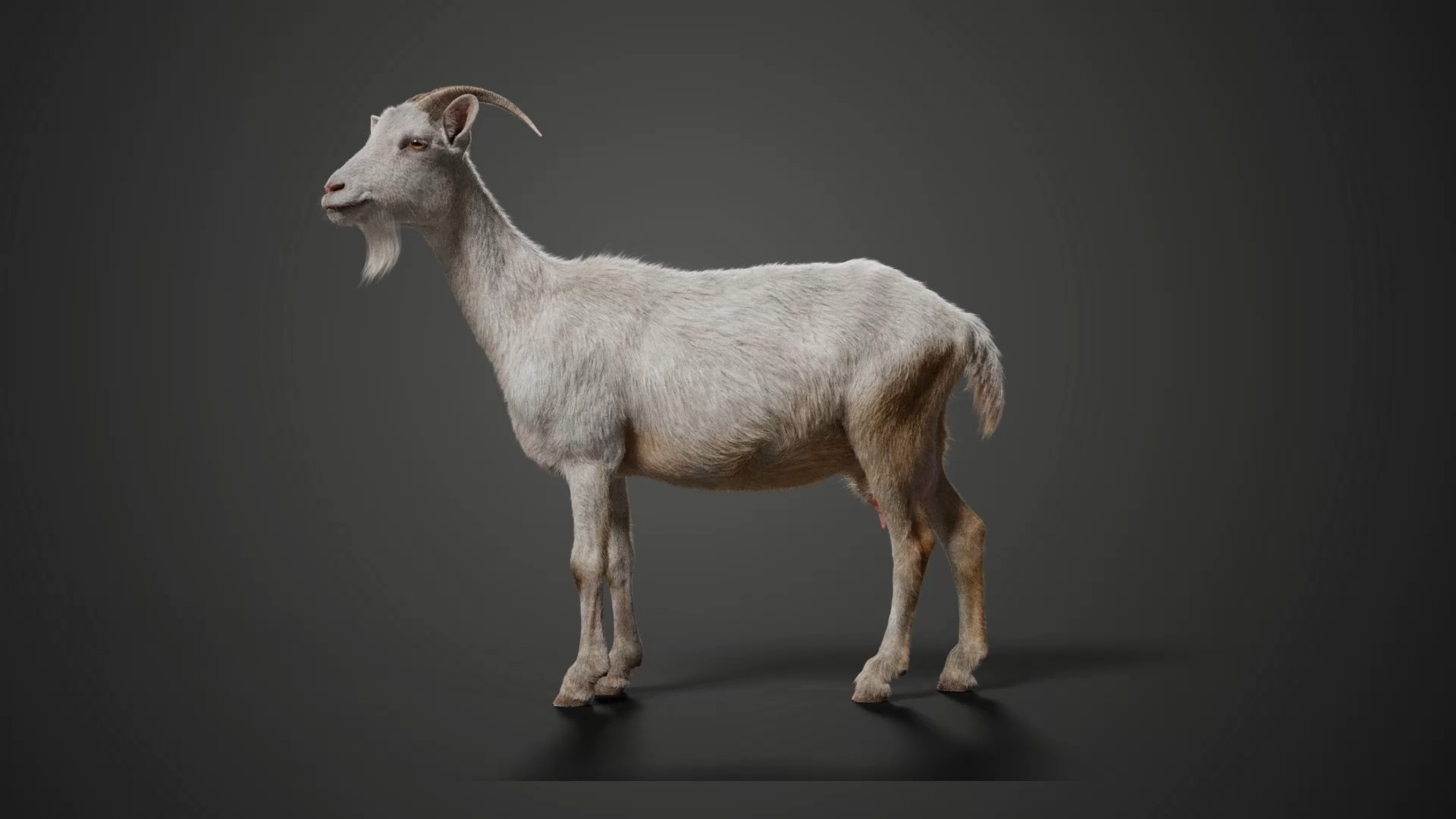 This is a goat model with multiple 4K UDIM maps, fur, rigging and animations. It's made with Blender and Cycles renderer at real-world scale.