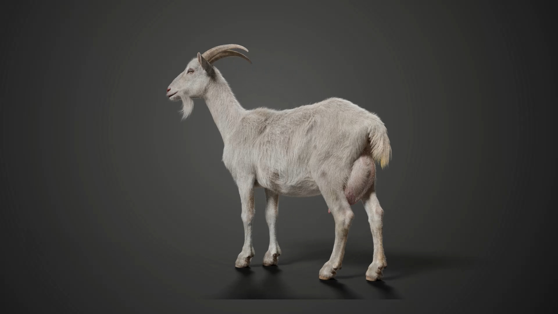 This is a goat model with multiple 4K UDIM maps, fur, rigging and animations. It's made with Blender and Cycles renderer at real-world scale.