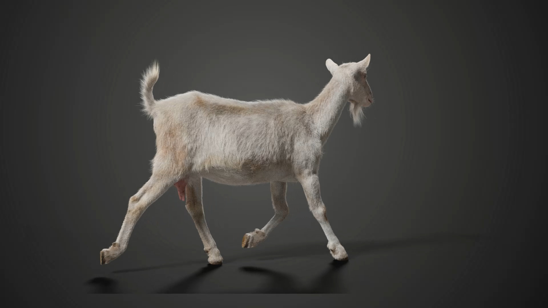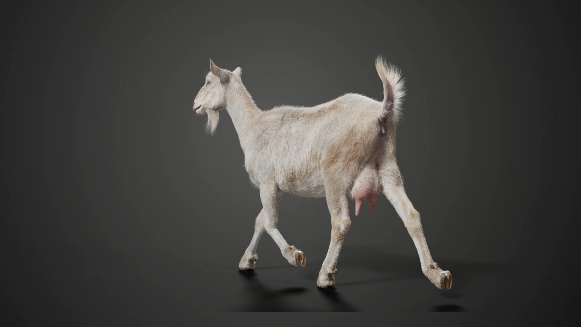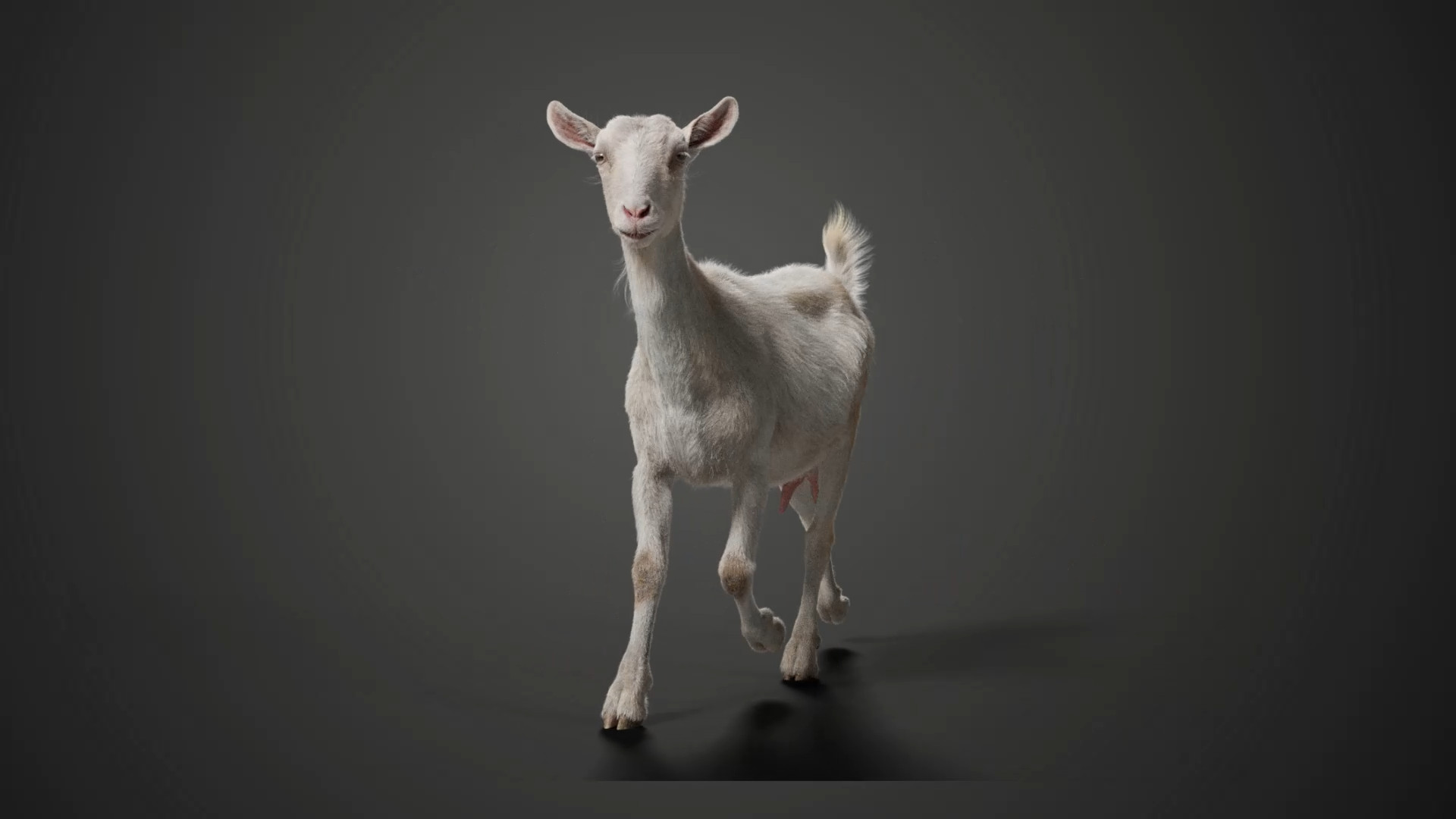 This is a goat model with multiple 4K UDIM maps, fur, rigging and animations. It's made with Blender and Cycles renderer at real-world scale.