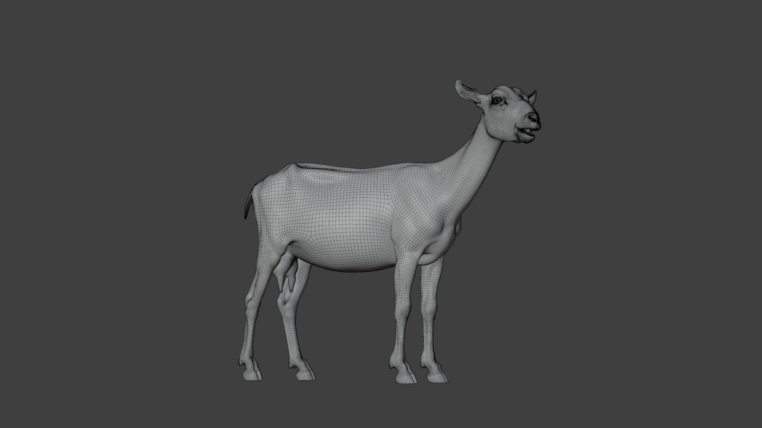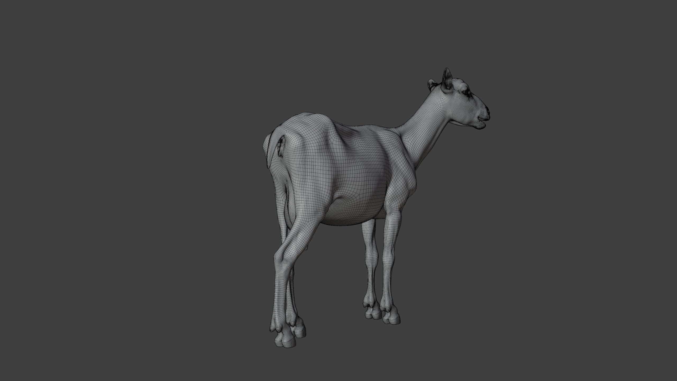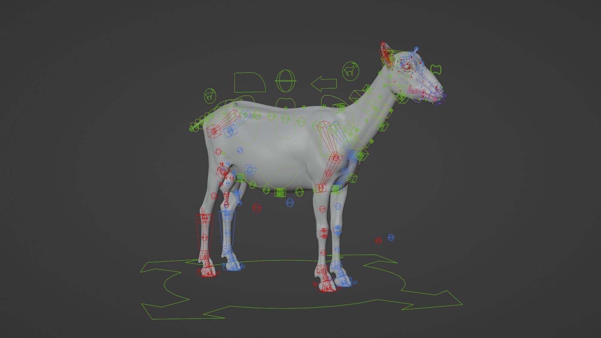 This is a goat model with multiple 4K UDIM maps, fur, rigging and animations. It's made with Blender and Cycles renderer at real-world scale.