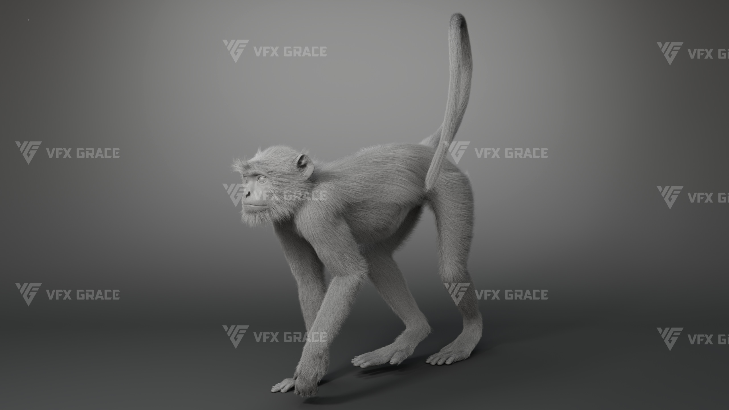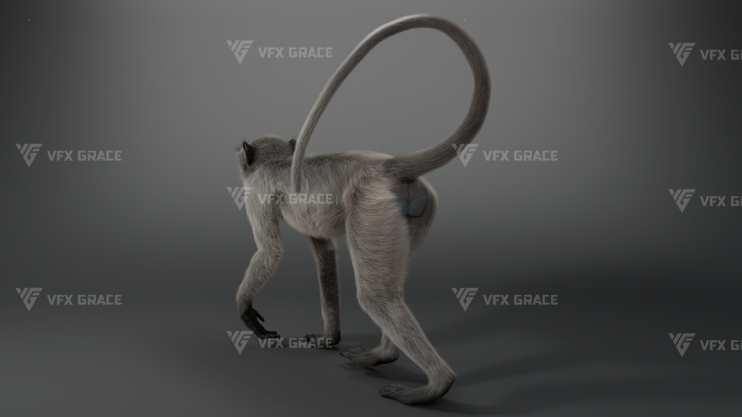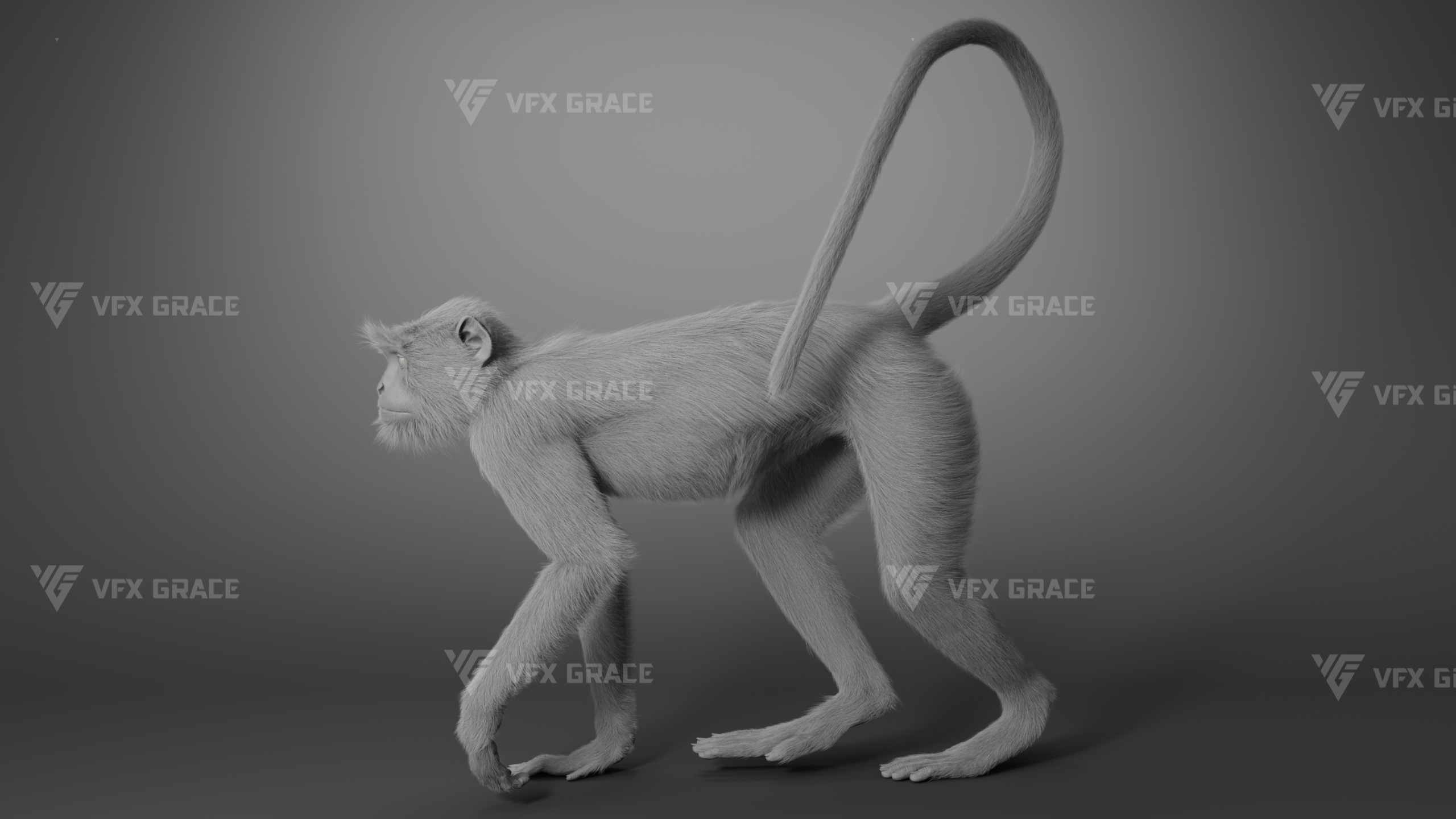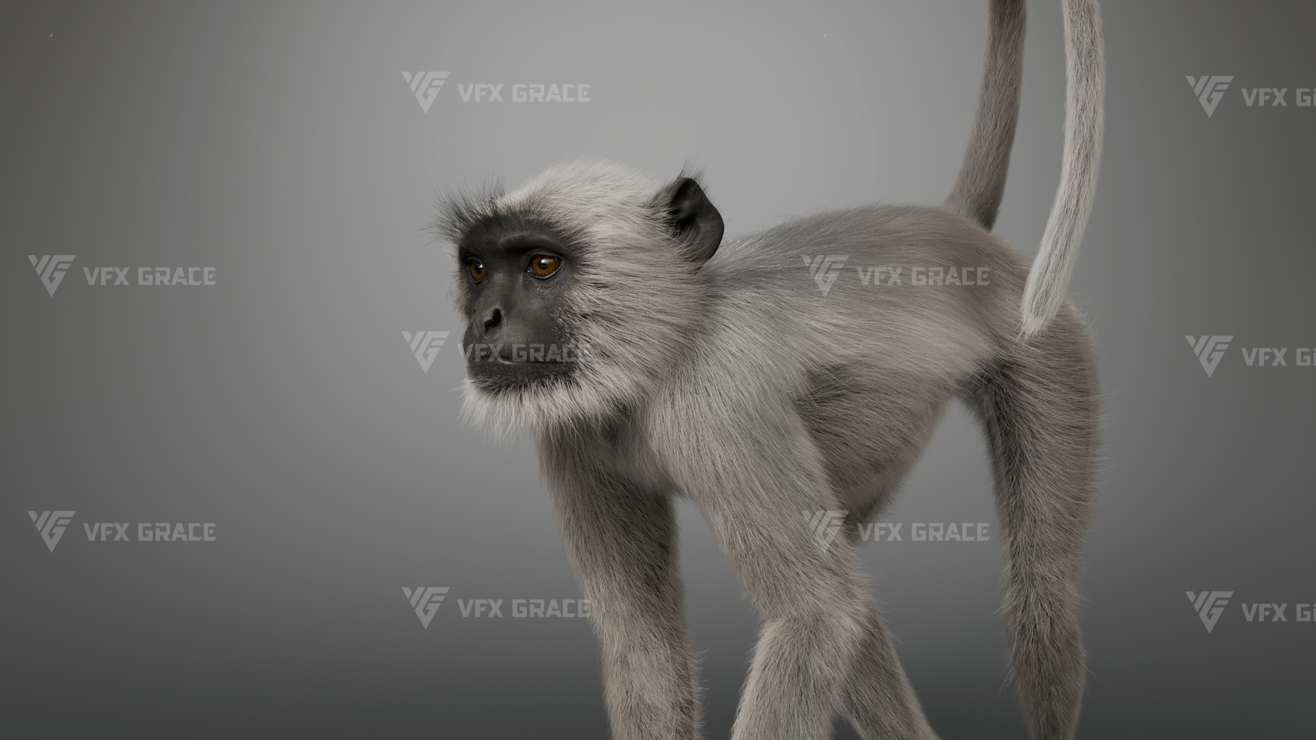 This is a high-quality Gray Langur character asset, the project includes model, textures, hair, rig, and animation, all hair is created with the XGen Interactive system, presenting fine and detailed hair effects, the character material is built on the Arnold renderer, realistically restoring the character’s appearance and texture, the rigging structure is built with reference to real skeletal proportions, making the animation motion more in line with natural movement, the scene provides a complete rigged project and 1 set of realistic walking animation, this character is created with Maya 2024, at real-world scale, suitable for film, animation, and high-precision character visualization.