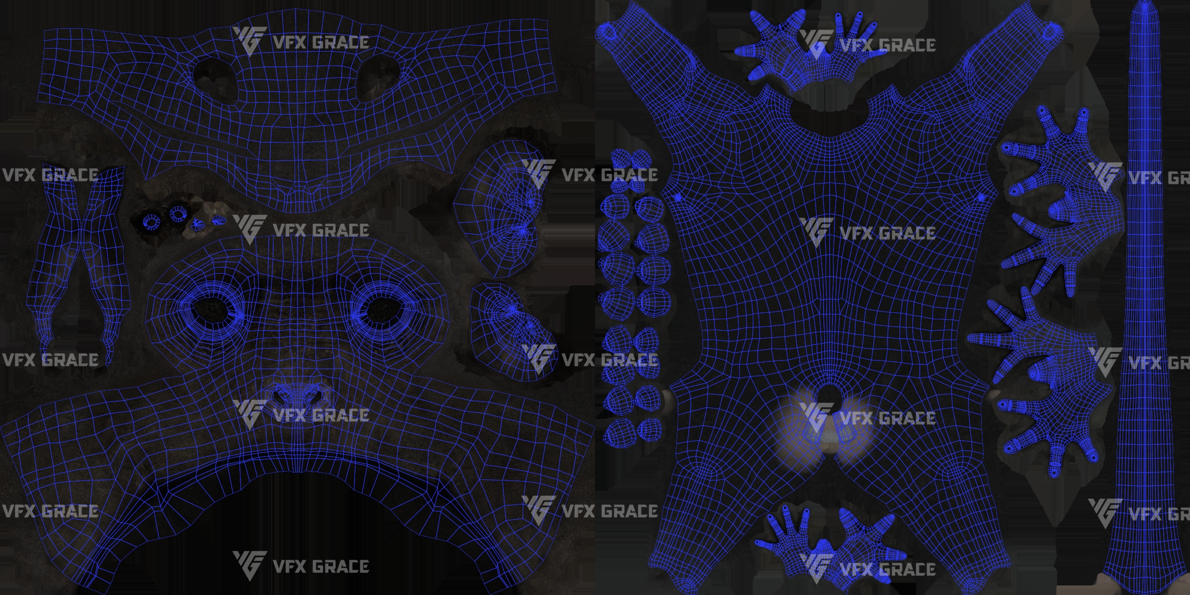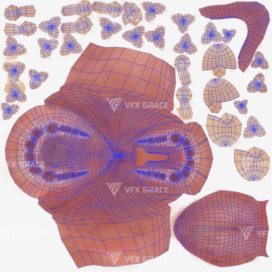XGen hair: XGen interactive is used for presenting the details of the hair faster, and all maps of density and modifier masks for hair layering are included externally, all masks are in 1K resolution.