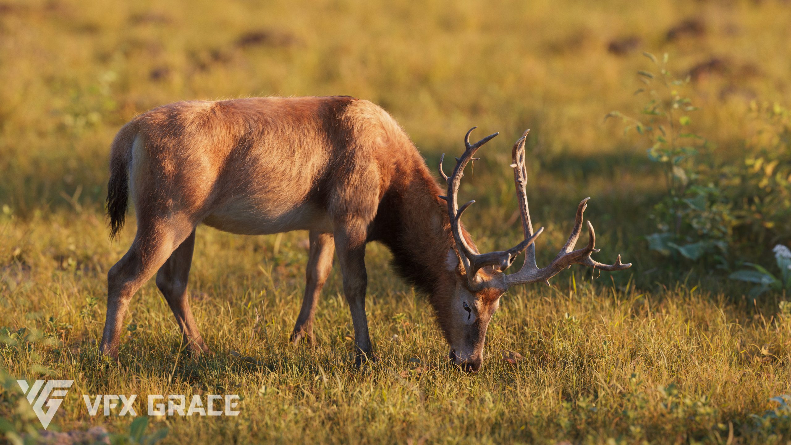 This is a high-quality male Pere David's Deer model with textures in the UDIM format partially, rigging and animation. It has very detailed muscle structures and a realistic oral cavity. The model is made with Blender and Cycles renderer at real-world scale.