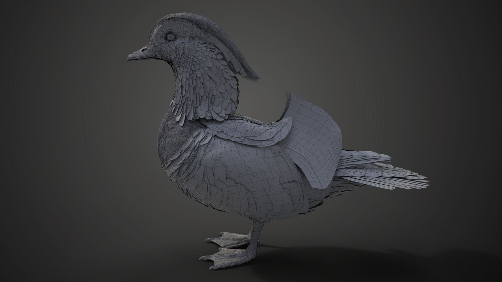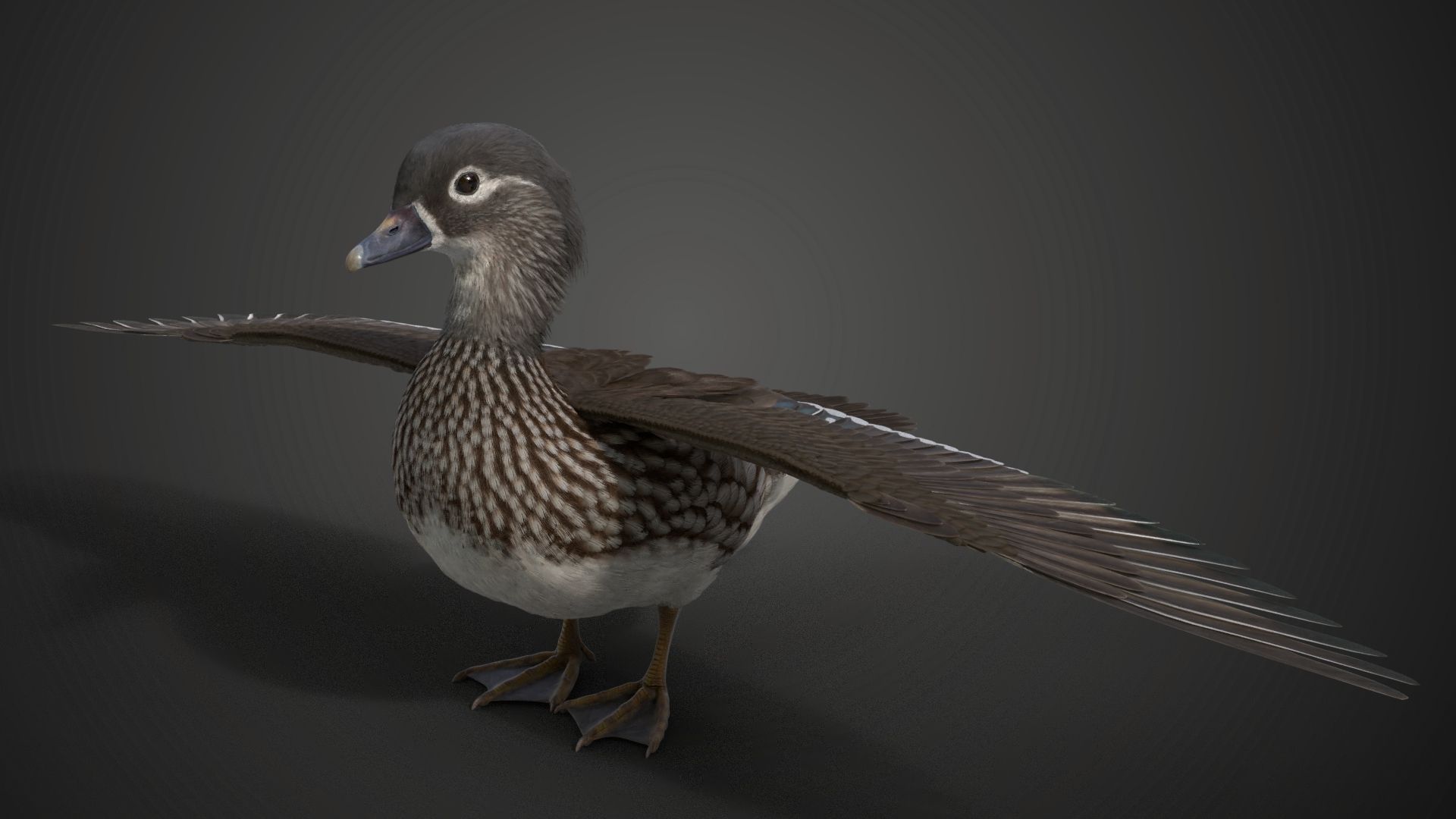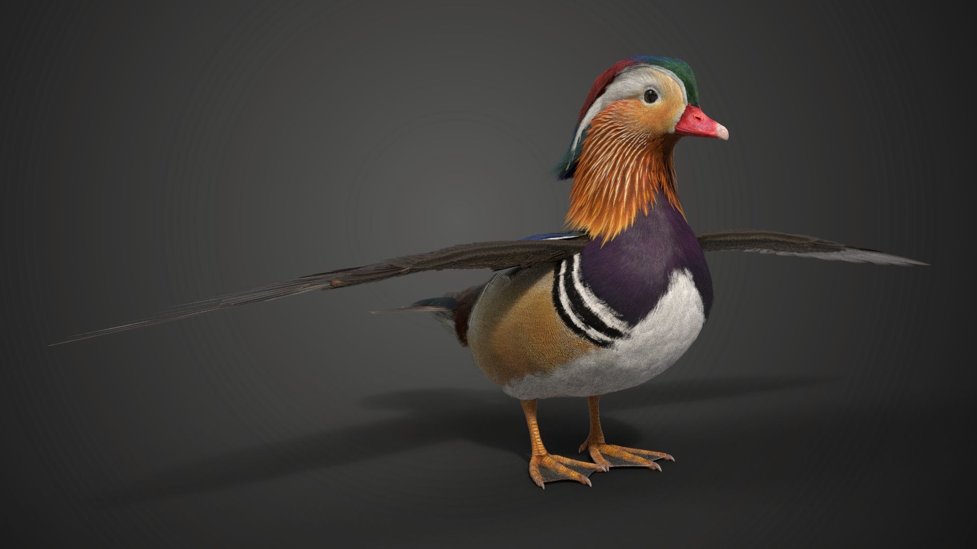 This is a male mandarin duck model with textures, fur, rigging and animations. It's made with Blender and Cycles renderer at real-world scale.