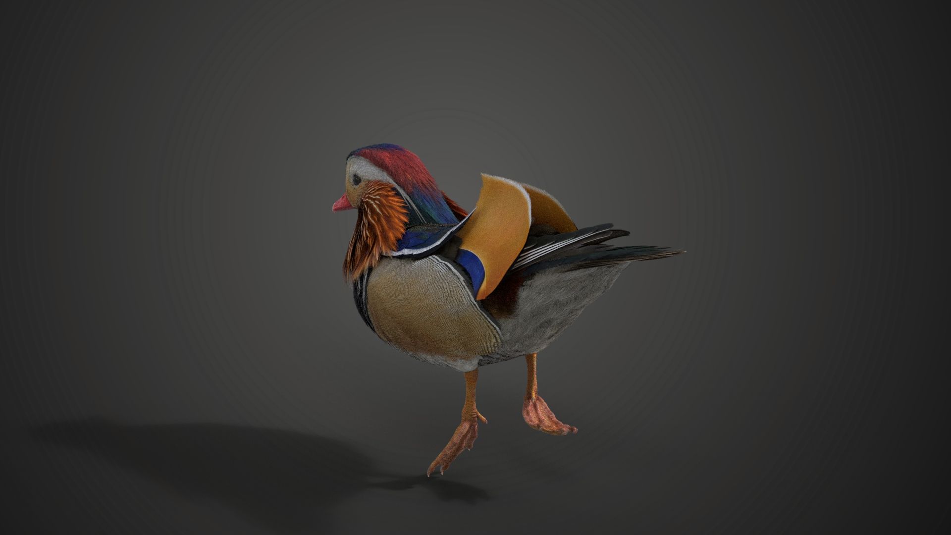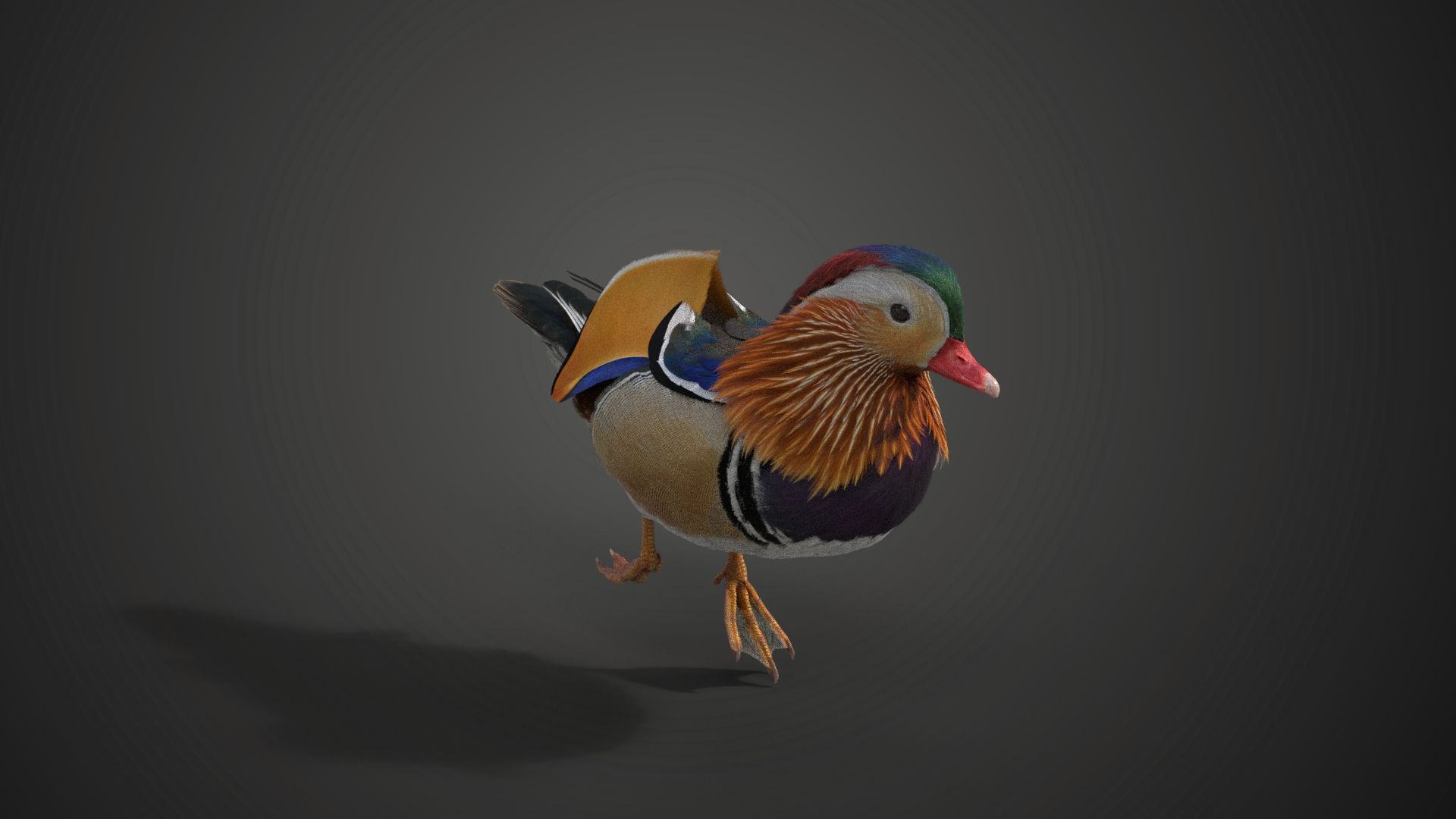 This is a male mandarin duck model with textures, fur, rigging and animations. It's made with Blender and Cycles renderer at real-world scale.