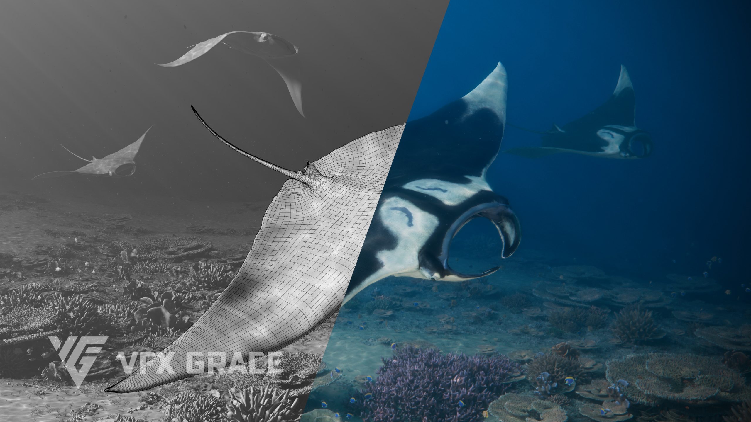 This is a high-quality manta ray model, including multiple 4K maps in the UDIM format, rigging, and animation. This model is made with Blender and Cycles renderer at real-world scale.