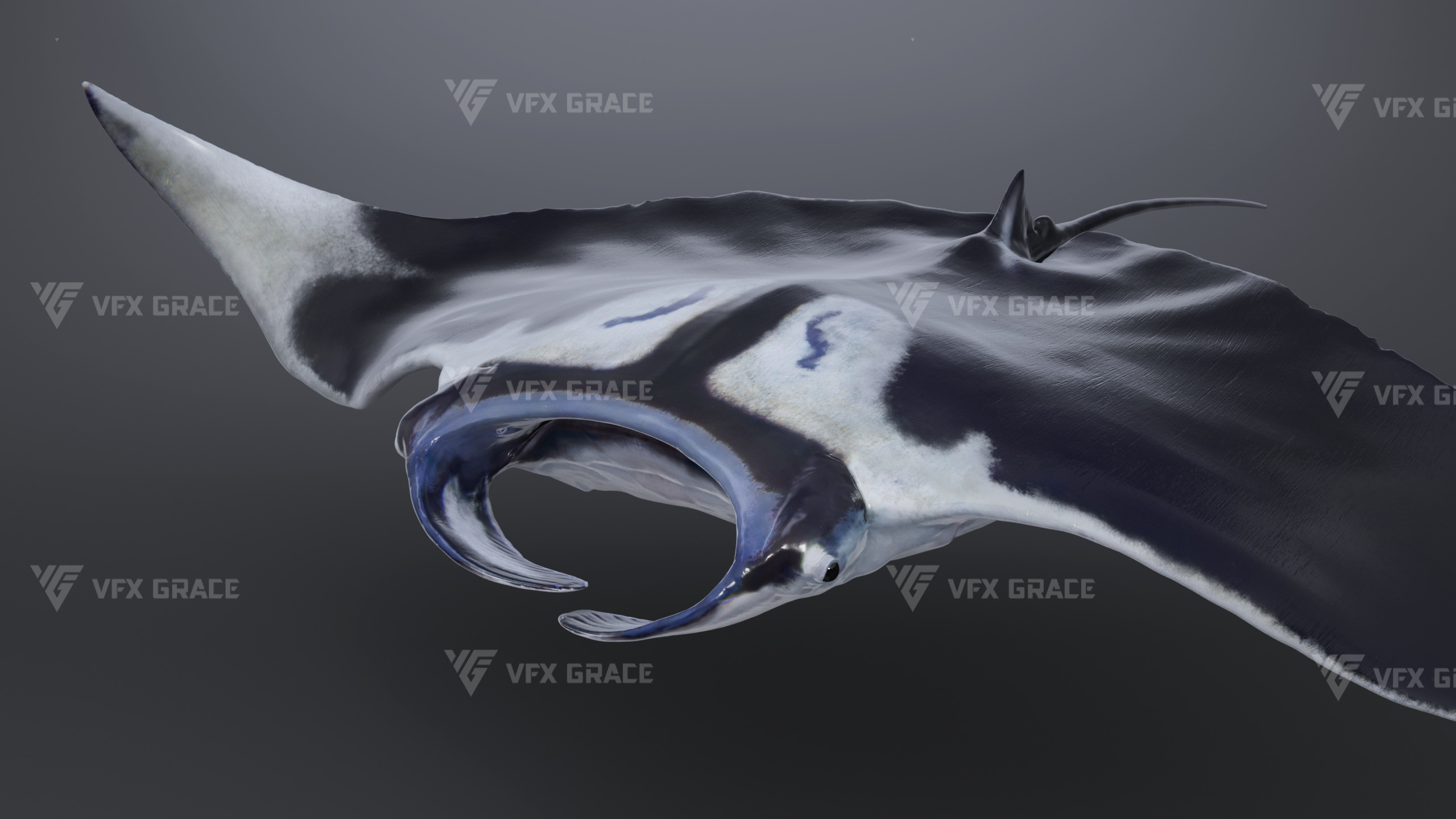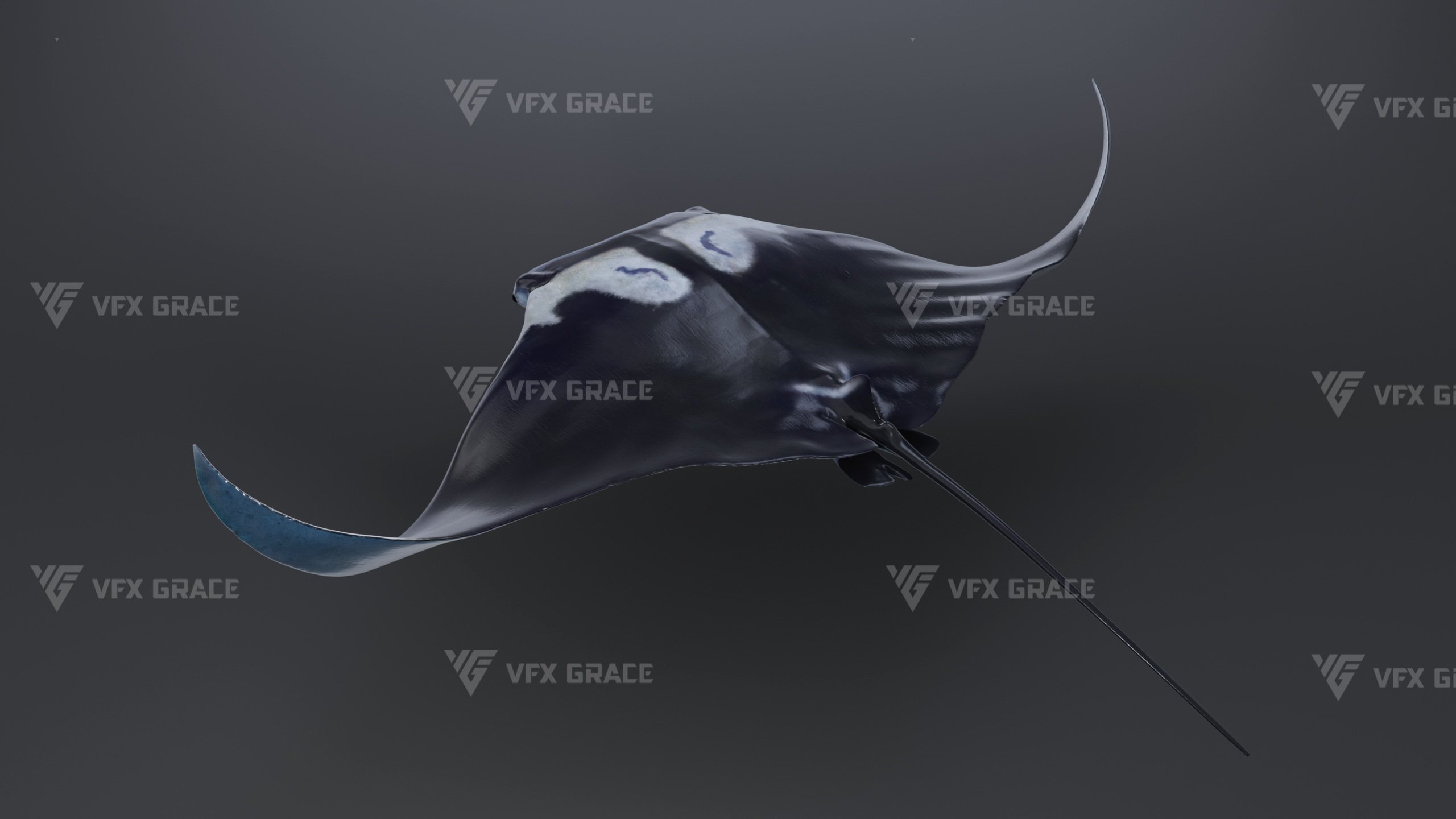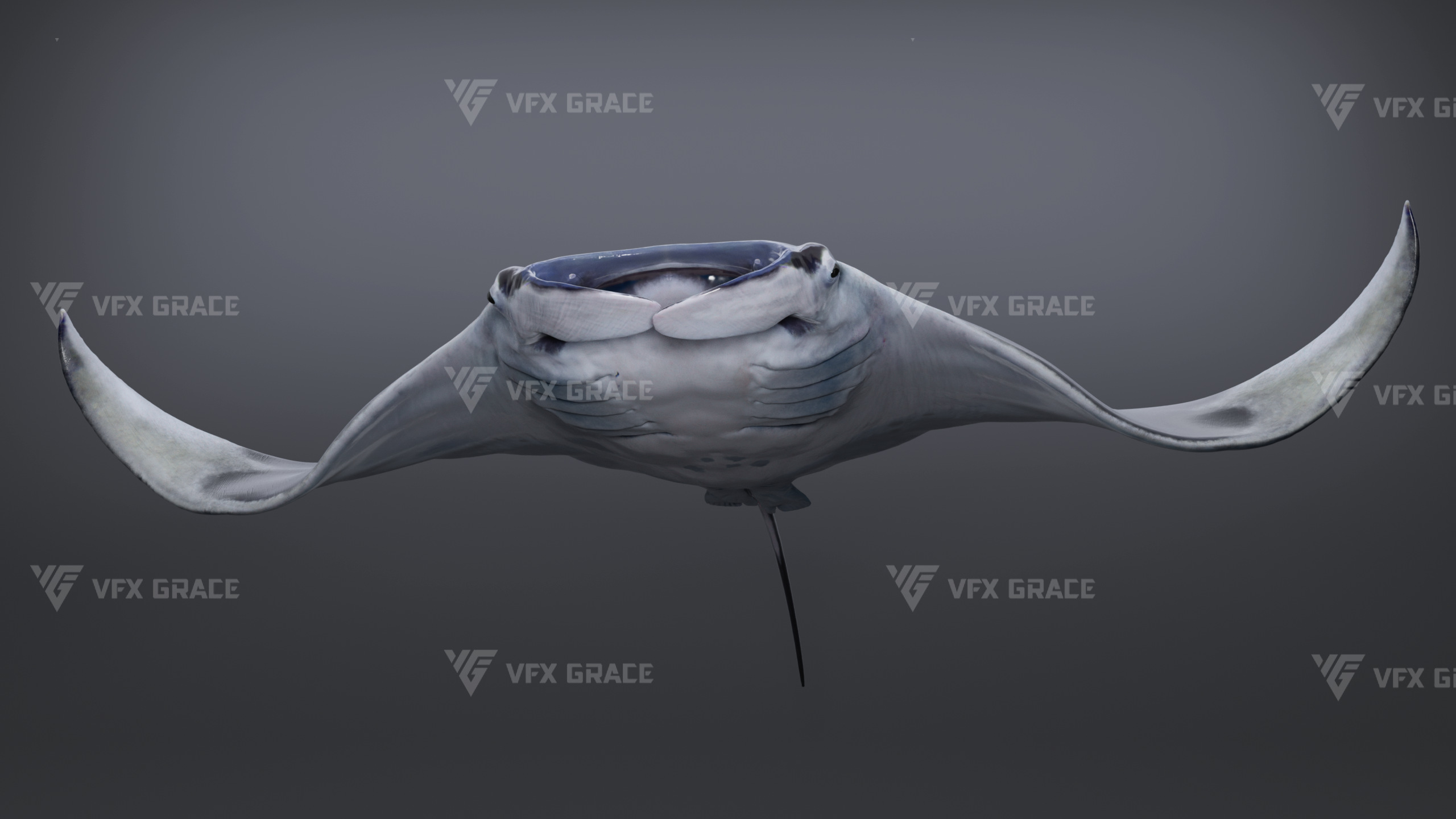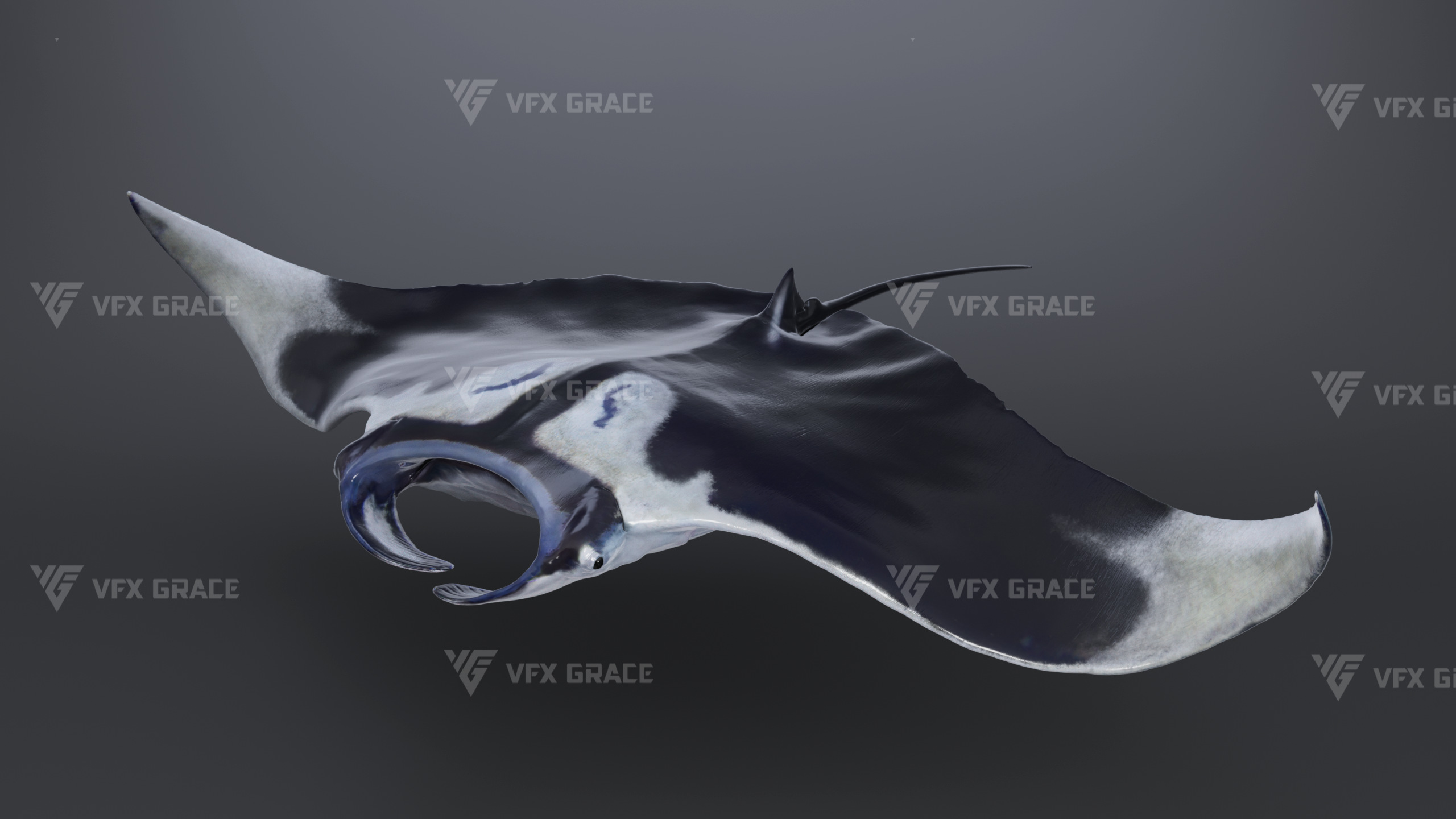 This is a high-quality manta ray character, including the model, textures, rigging, and animations. The materials are built with Arnold renderer to accurately replicate the appearance and texture of a real manta ray. The rigging is created with reference to real bones, making the animation in line with natural movements. The project provides a complete rigging setup along with one swimming animation. This character was created at real-world scale using Maya 2024, suitable for film, animation, and high-precision character presentation.