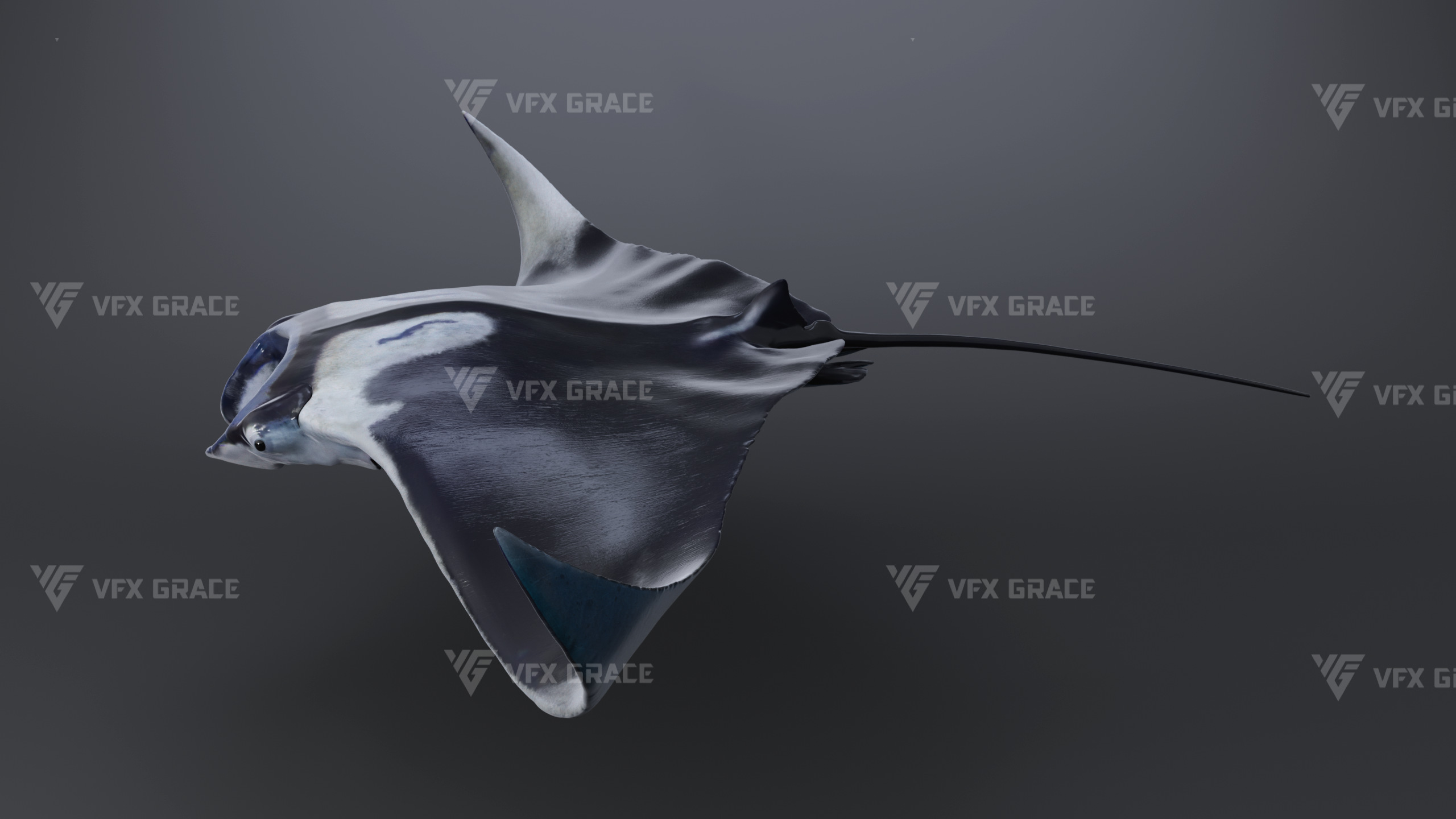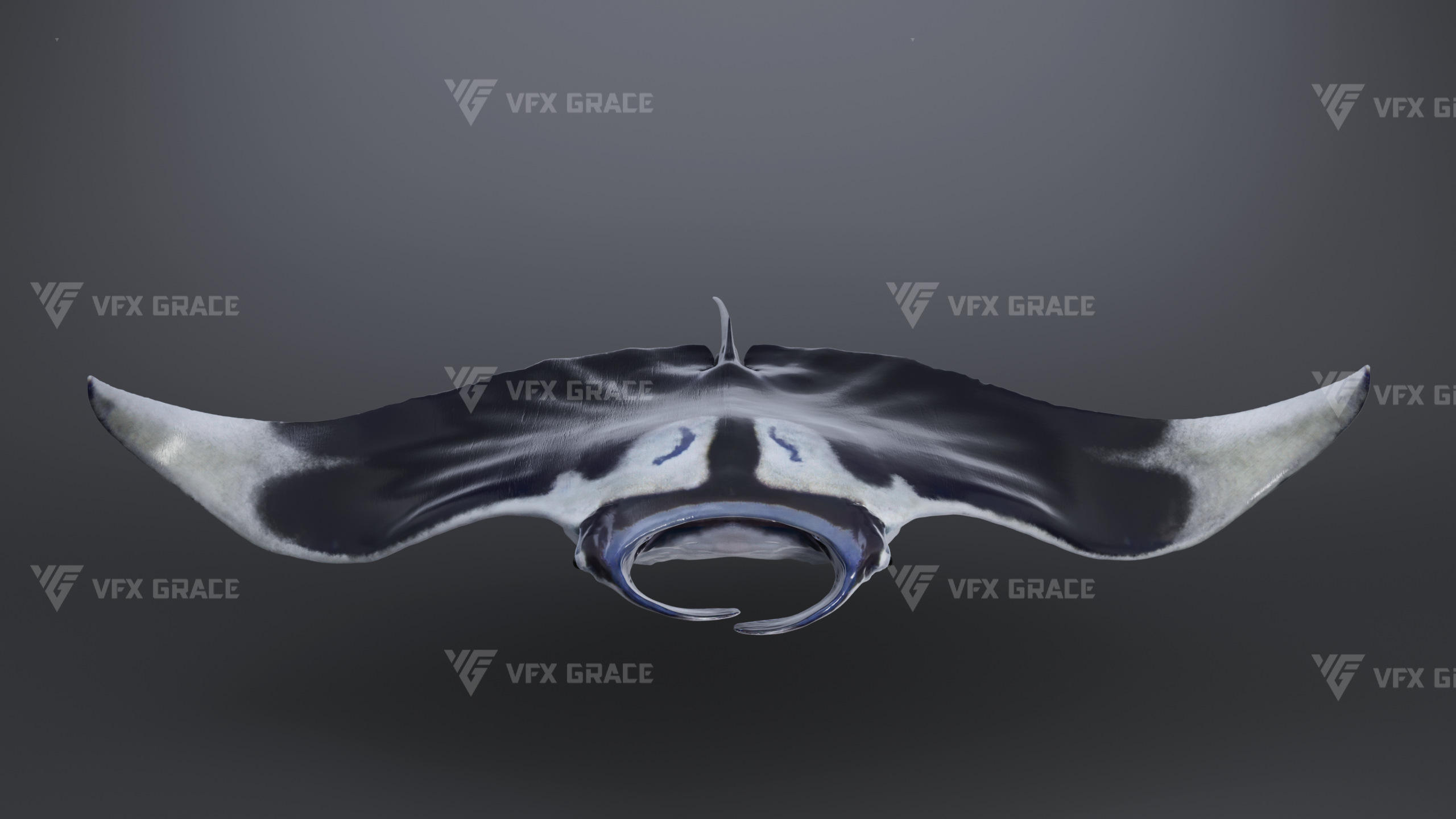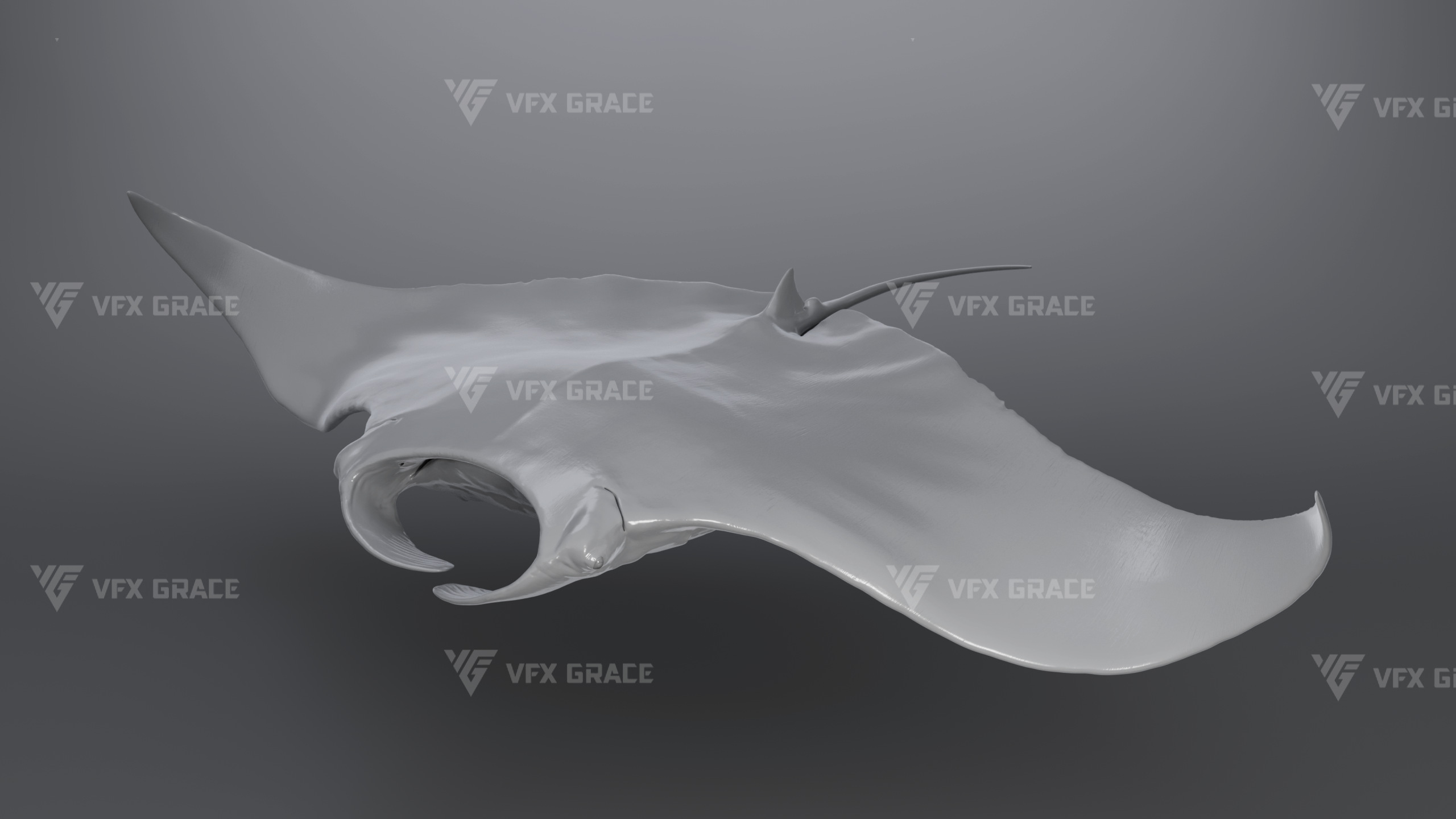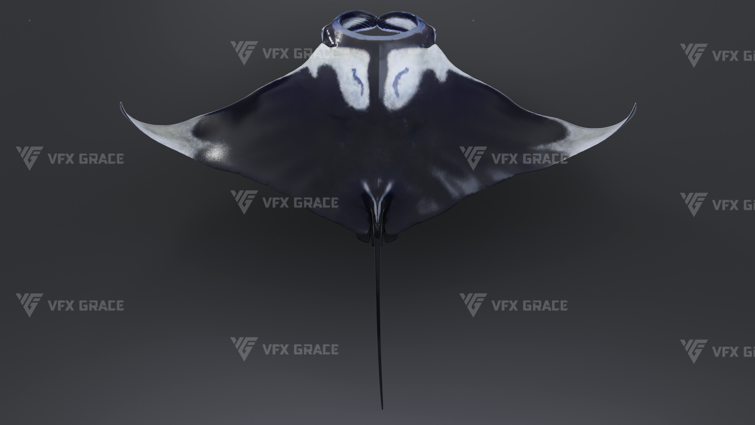 This is a high-quality manta ray character, including the model, textures, rigging, and animations. The materials are built with Arnold renderer to accurately replicate the appearance and texture of a real manta ray. The rigging is created with reference to real bones, making the animation in line with natural movements. The project provides a complete rigging setup along with one swimming animation. This character was created at real-world scale using Maya 2024, suitable for film, animation, and high-precision character presentation.