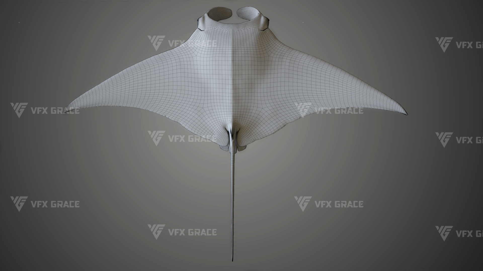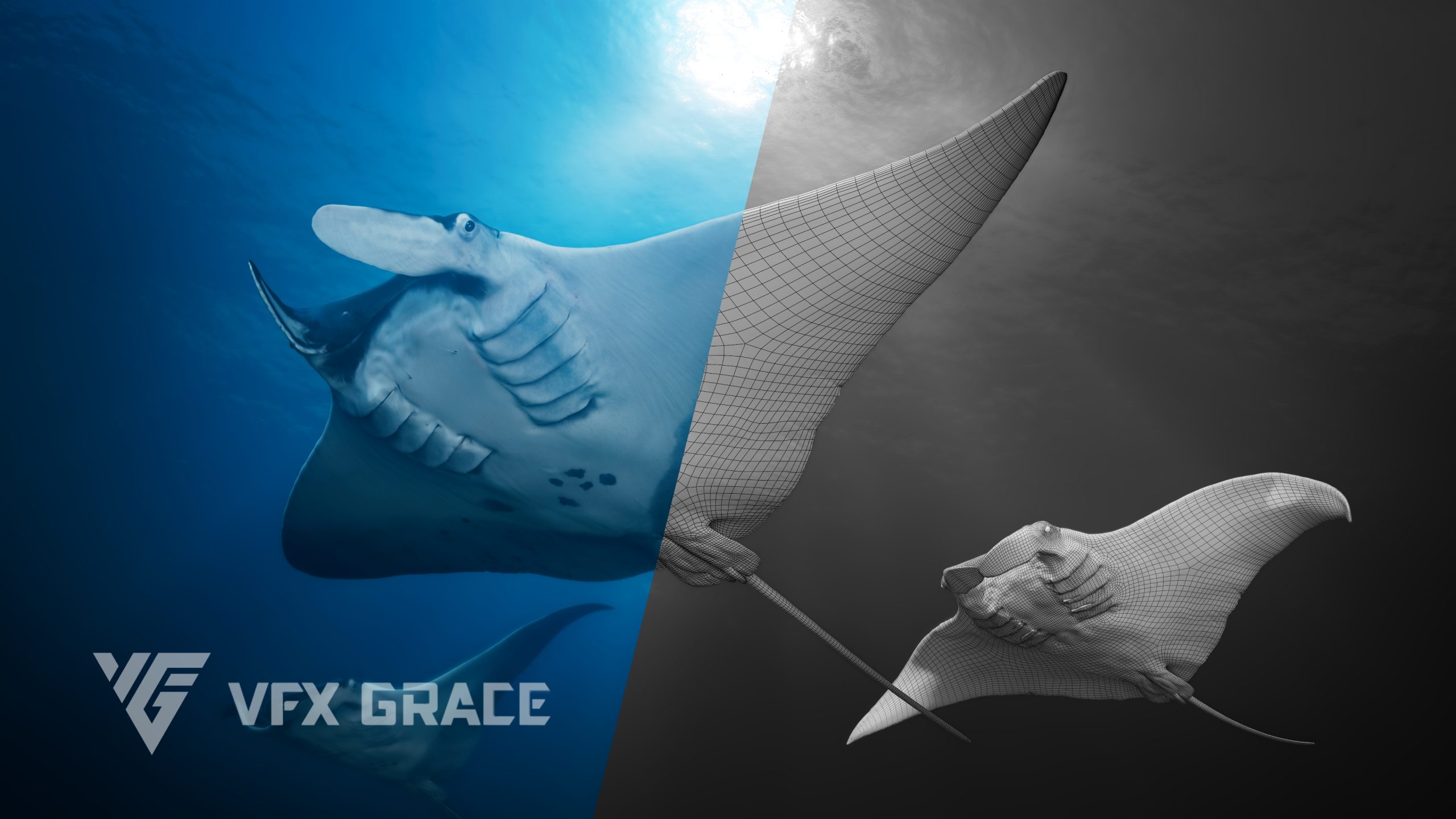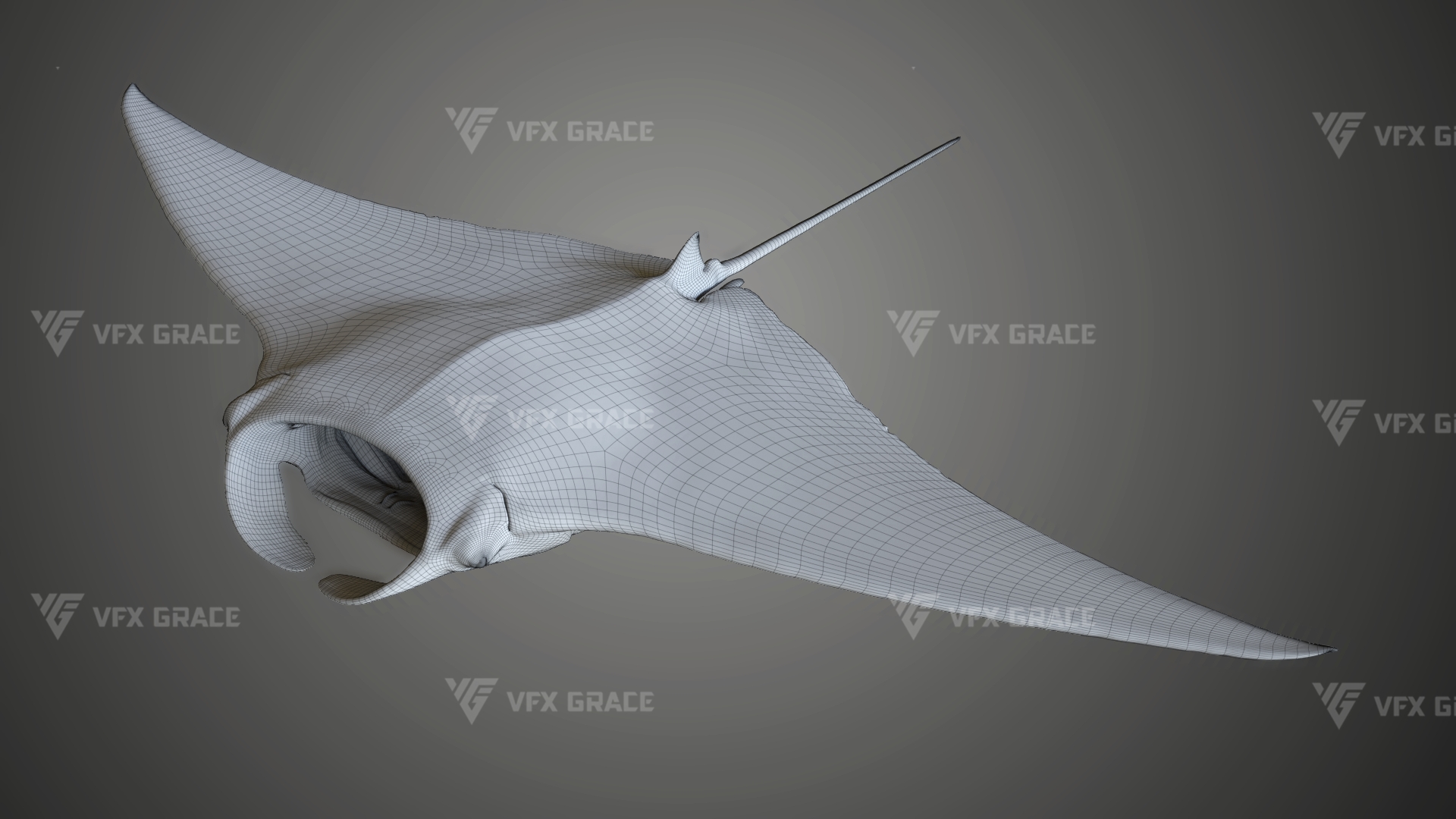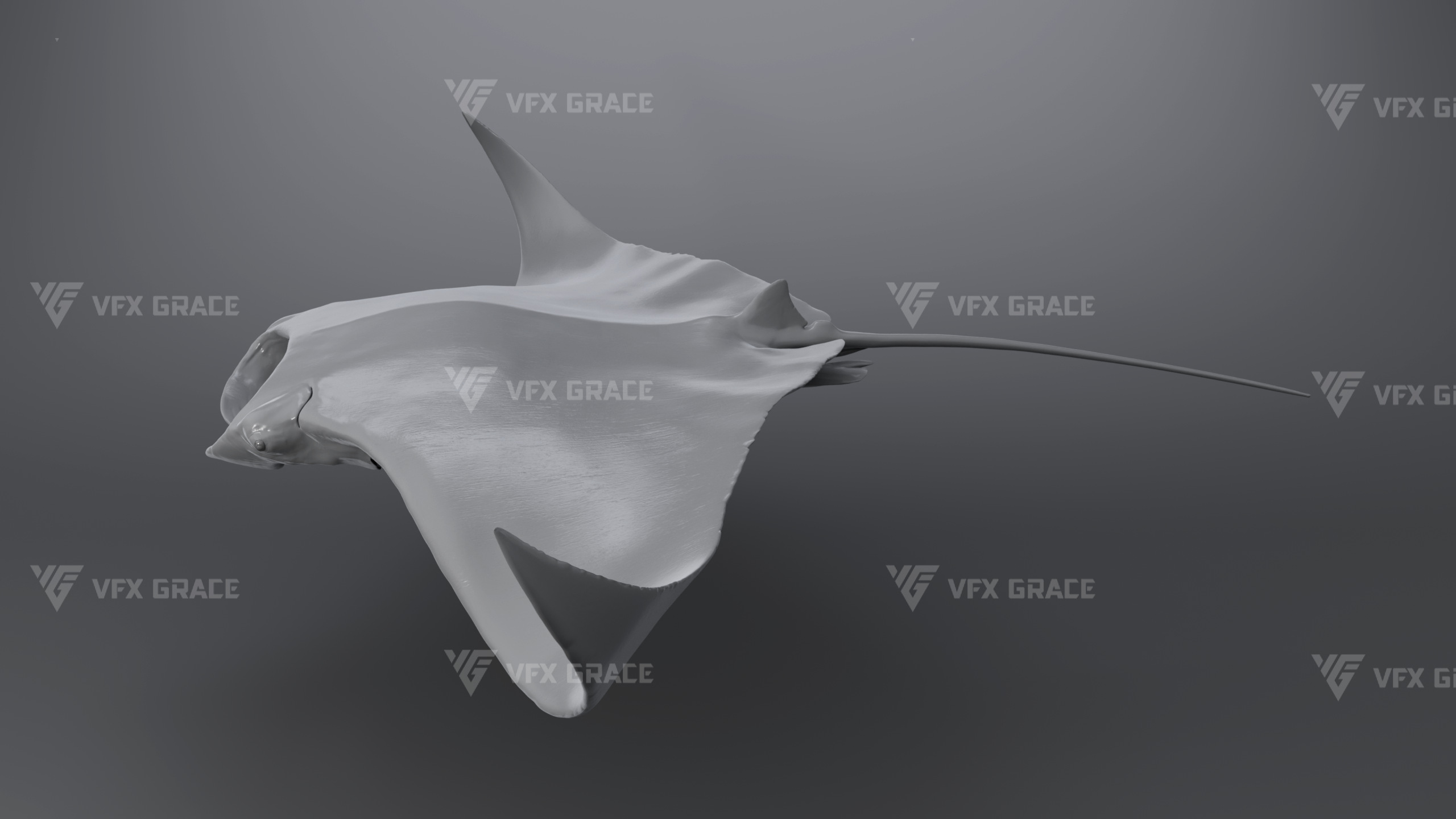 This is a high-quality manta ray character, including the model, textures, rigging, and animations. The materials are built with Arnold renderer to accurately replicate the appearance and texture of a real manta ray. The rigging is created with reference to real bones, making the animation in line with natural movements. The project provides a complete rigging setup along with one swimming animation. This character was created at real-world scale using Maya 2024, suitable for film, animation, and high-precision character presentation.