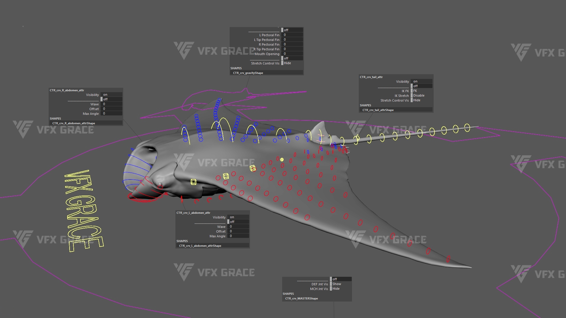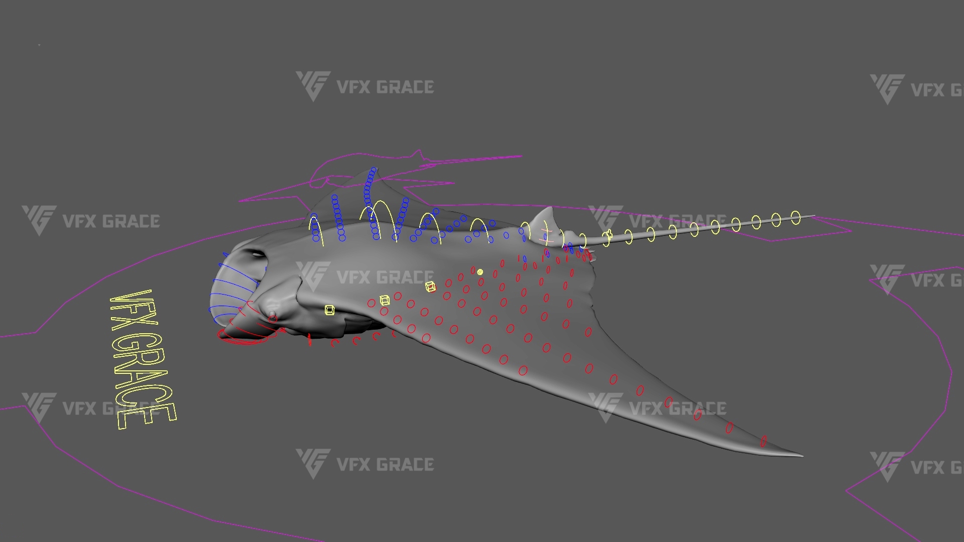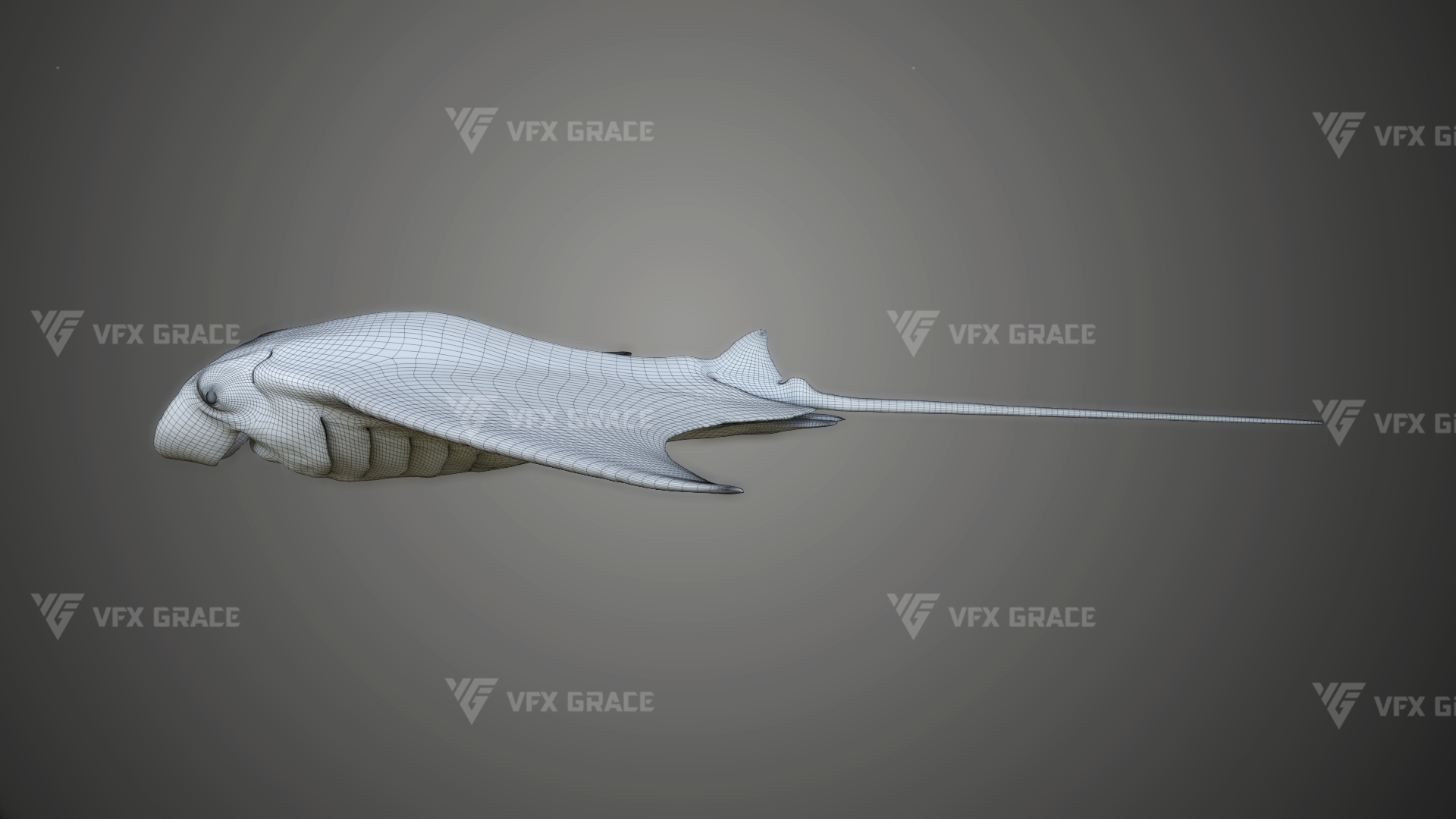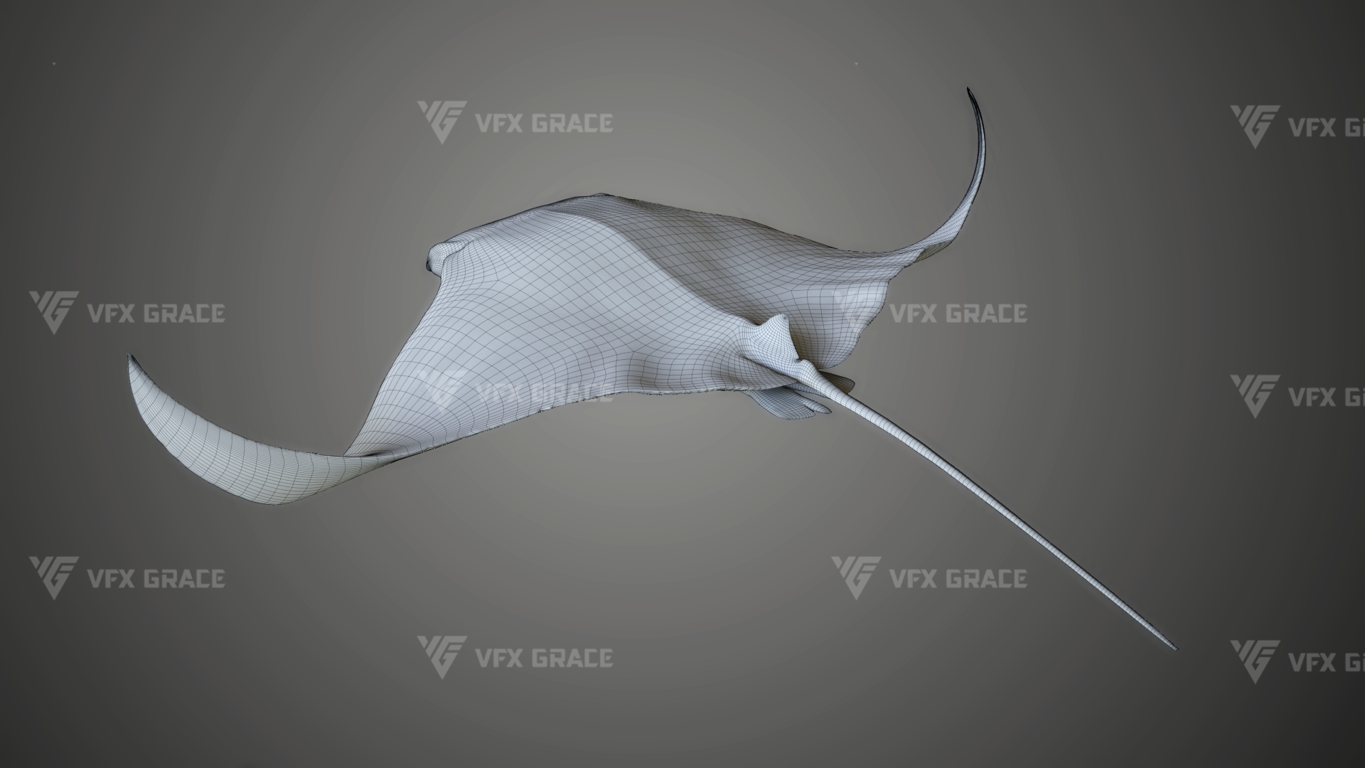 This is a high-quality manta ray character, including the model, textures, rigging, and animations. The materials are built with Arnold renderer to accurately replicate the appearance and texture of a real manta ray. The rigging is created with reference to real bones, making the animation in line with natural movements. The project provides a complete rigging setup along with one swimming animation. This character was created at real-world scale using Maya 2024, suitable for film, animation, and high-precision character presentation.
