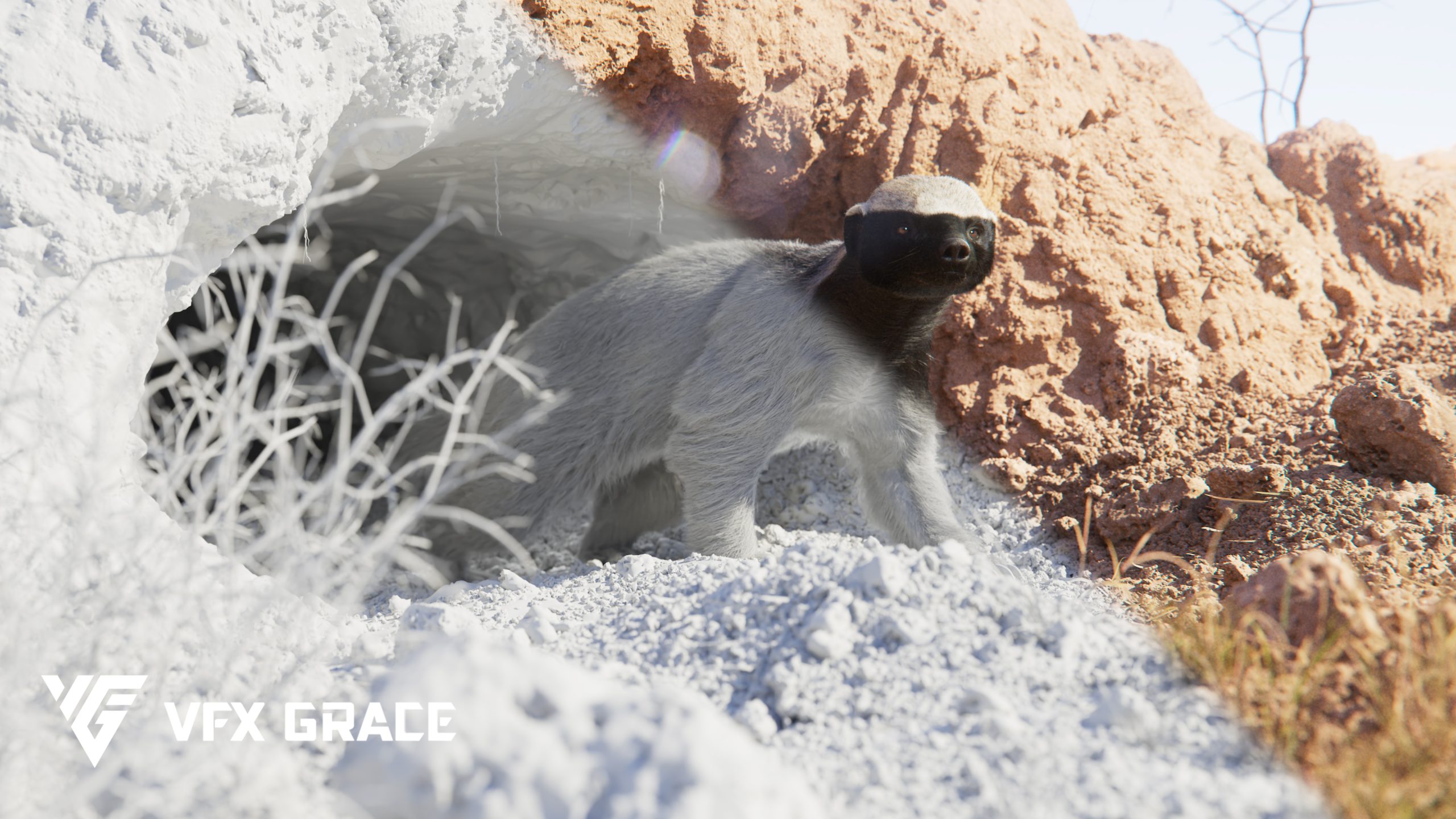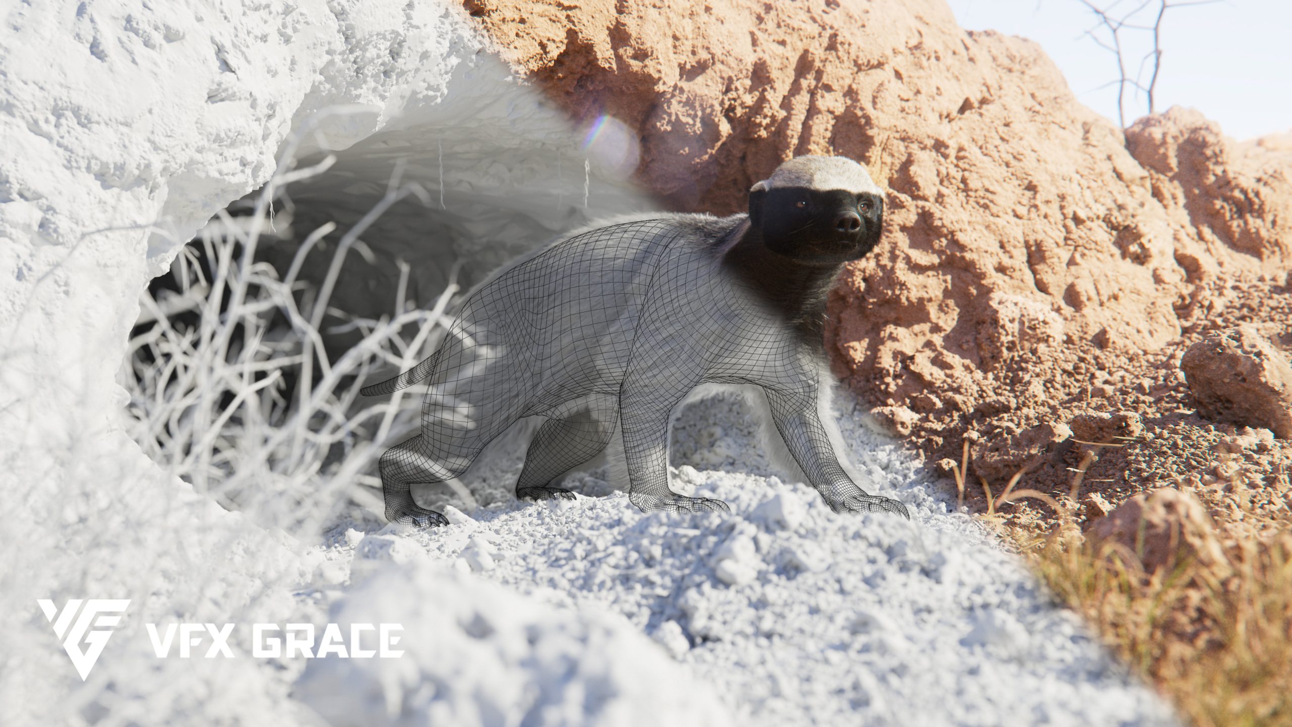 This is a high-quality mellivora character, including model, textures, grooming, rigging, and animation. The hair is created in XGen interactive with enough details, and all textures are rendered with Arnold renderer to realistically replicate the appearance and texture of a real mellivora. The rigging is created with reference to real bones, making the animation in line with natural movements. The project provides a complete rigging setup along with 4 standard walking and running animations. This character was created at real-world scale using the latest version of Maya 2026, suitable for film, animation, and high-precision character presentation scenarios.