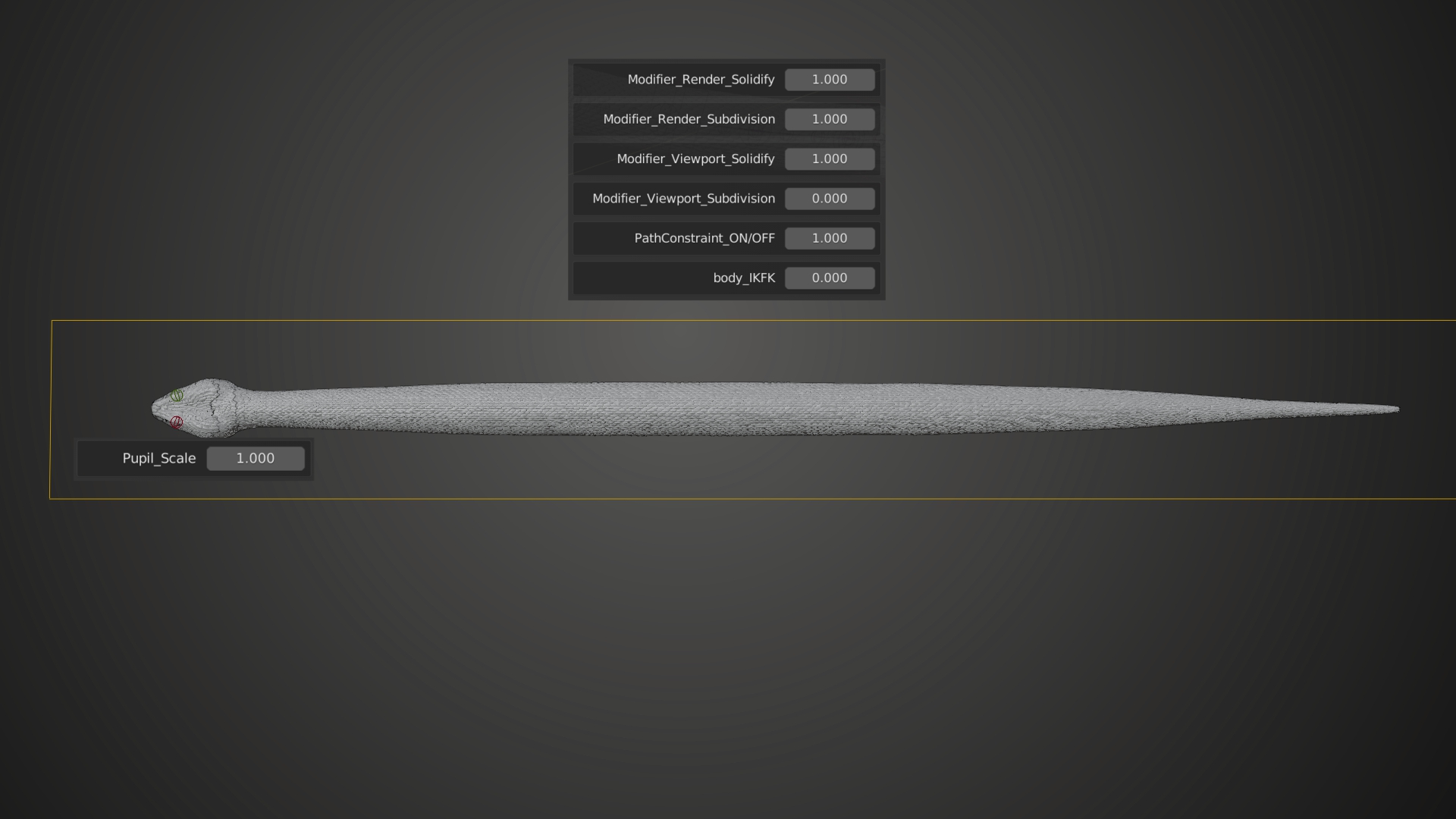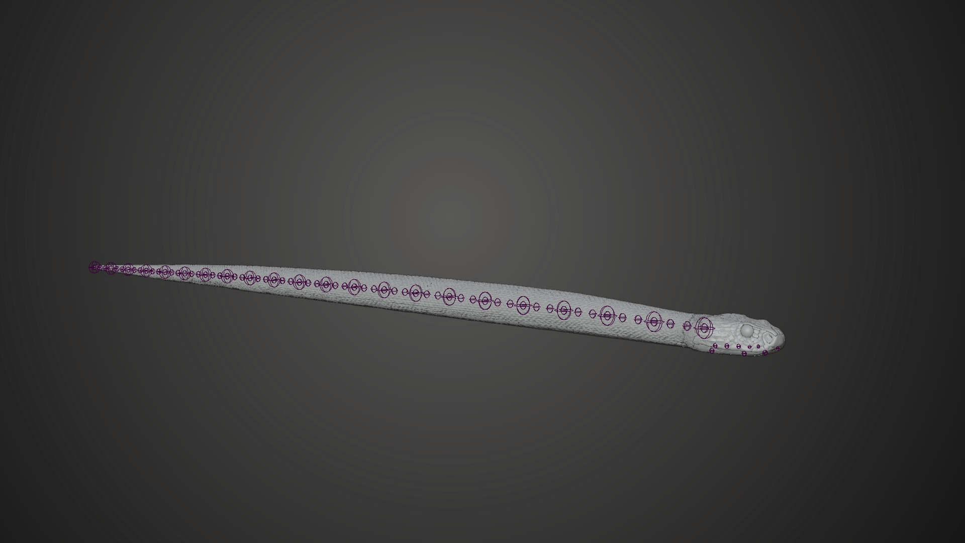 Palestineviper_Crawl_MotionPath_Rig_grp is the skeleton that controls the path of a snake; Palestineviper_Rig_grp is the real rigging skeleton.