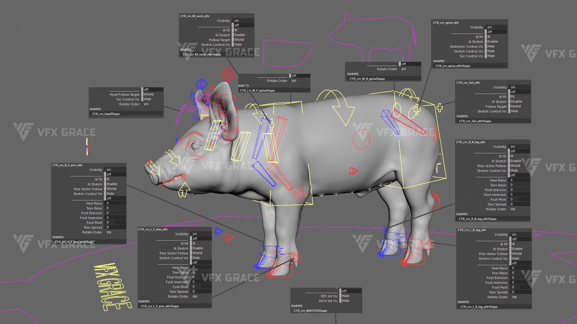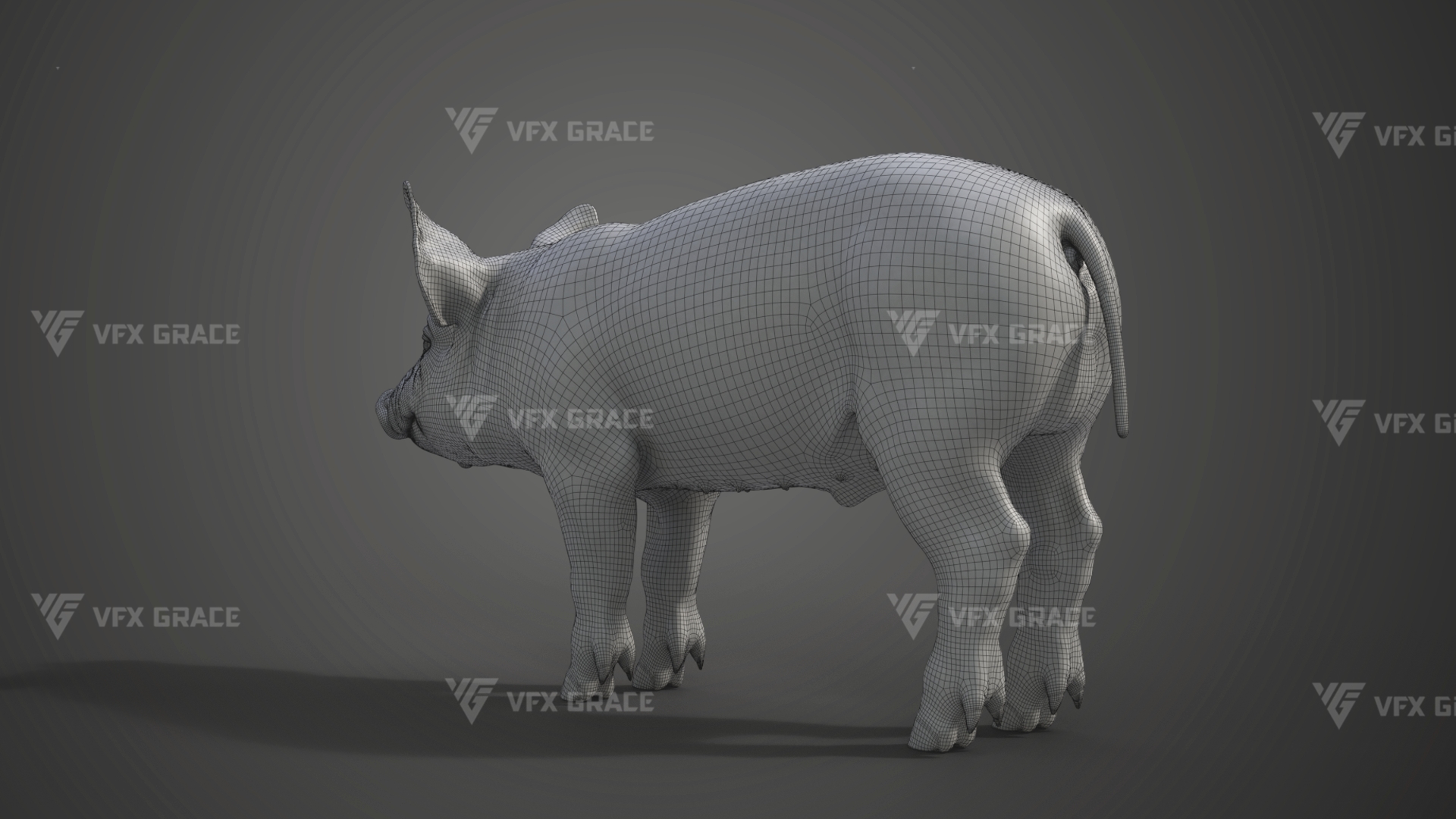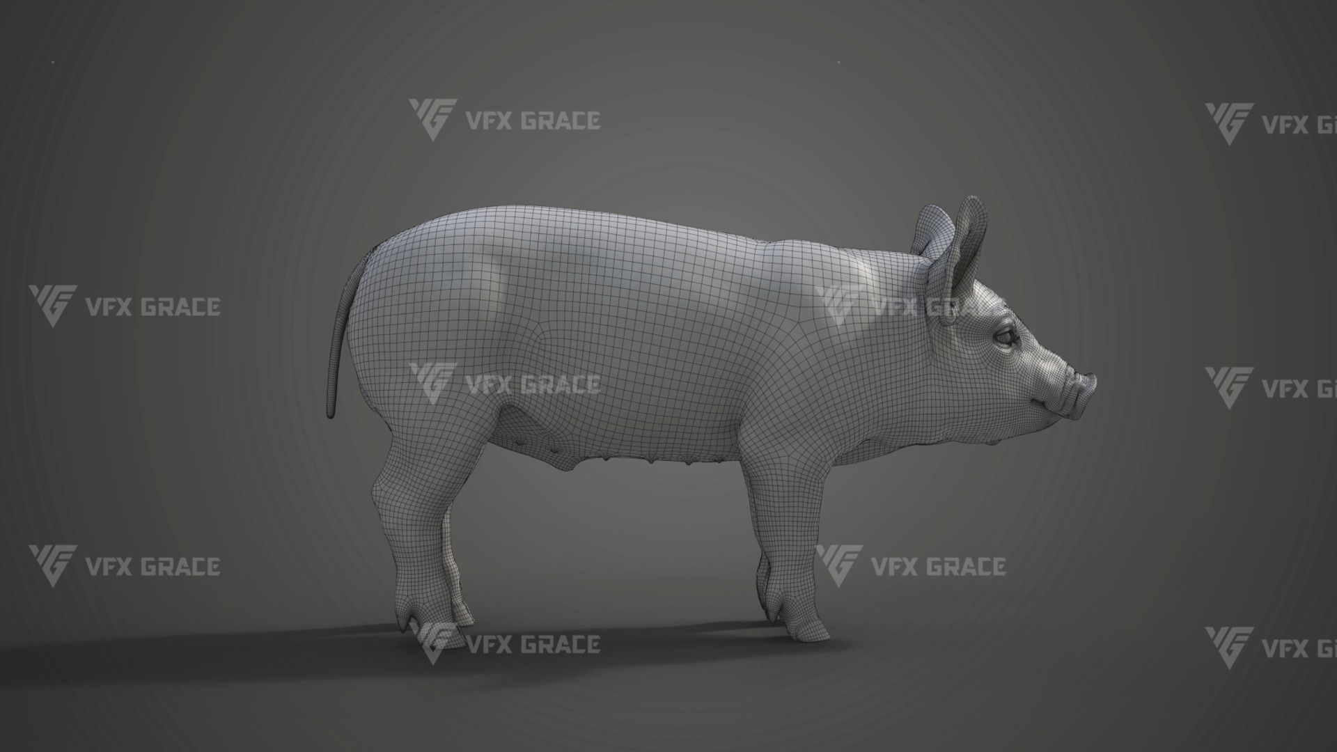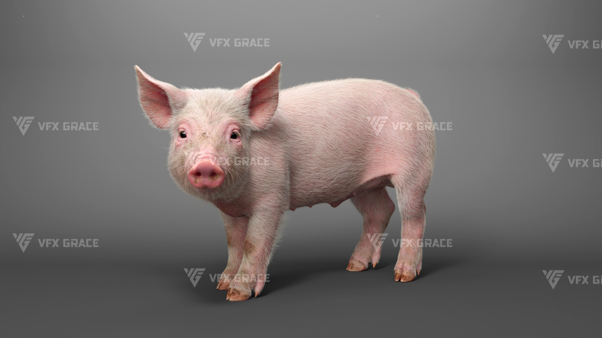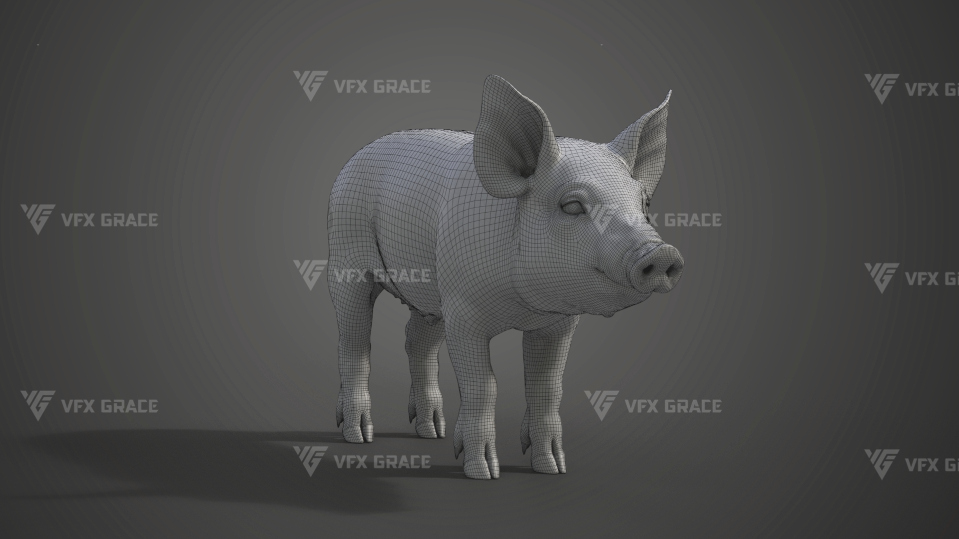 This is a high-quality young piglet character, including the model, textures, hair, rigging, and animations. All hair is created using XGen Interactive, delivering detailed and realistic effects. The materials are built with Arnold renderer to accurately replicate the appearance and texture of a real piglet. The rigging is created with reference to real bones, making the animation in line with natural movements. The project provides a complete rigging setup along with five realistic animations. This character was created at real-world scale using Maya 2024, suitable for film, animation, and high-precision character presentation.