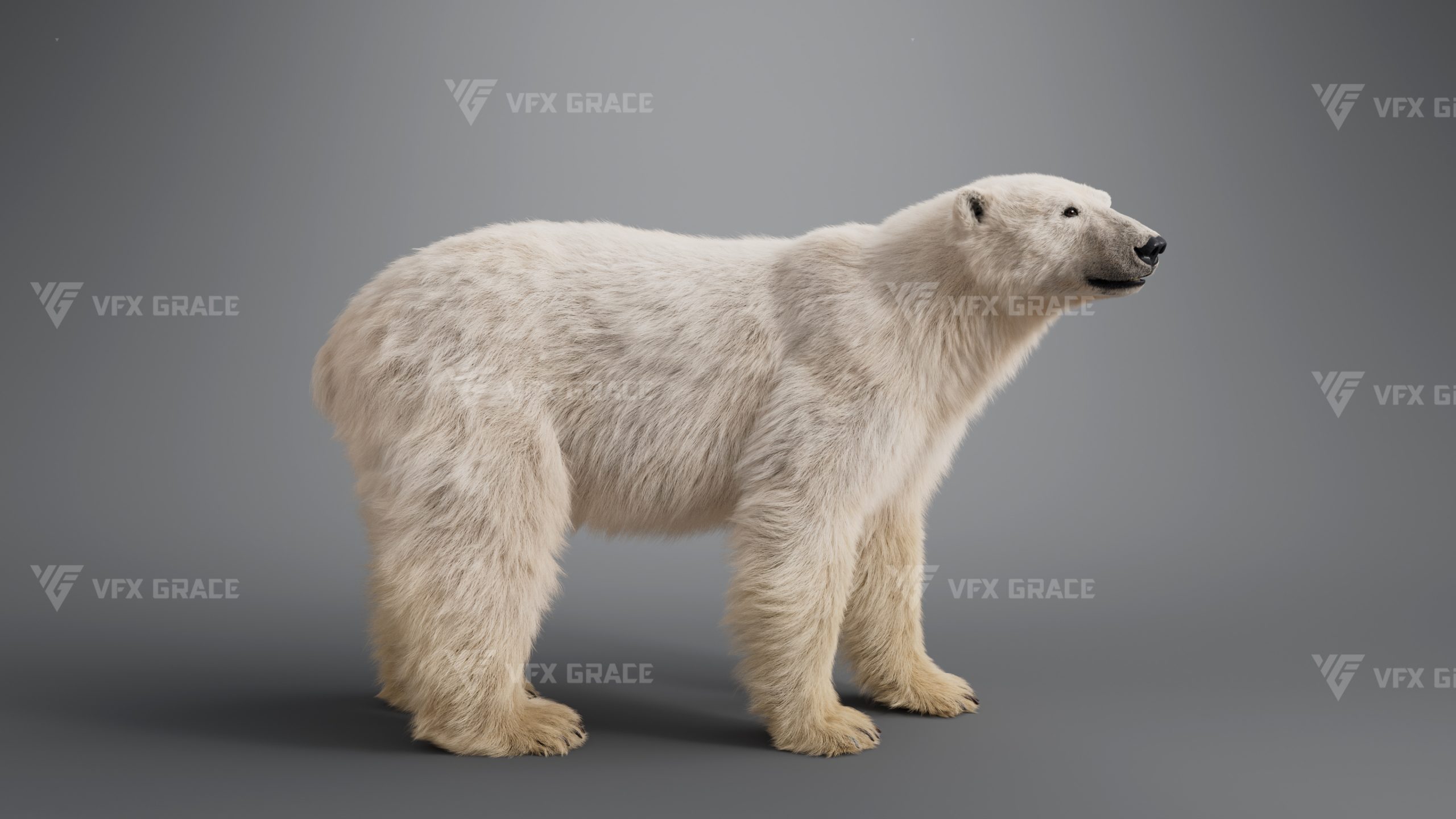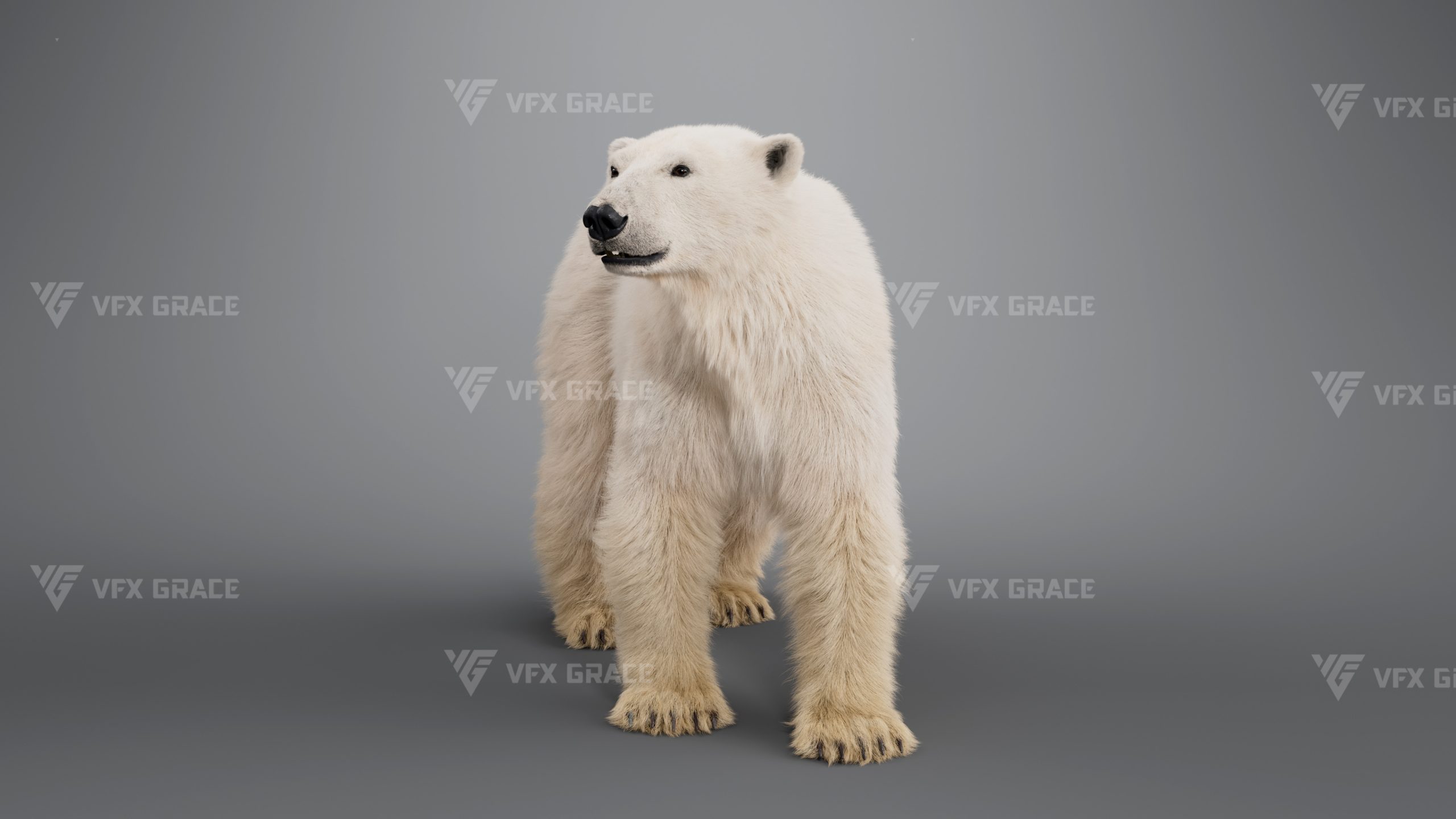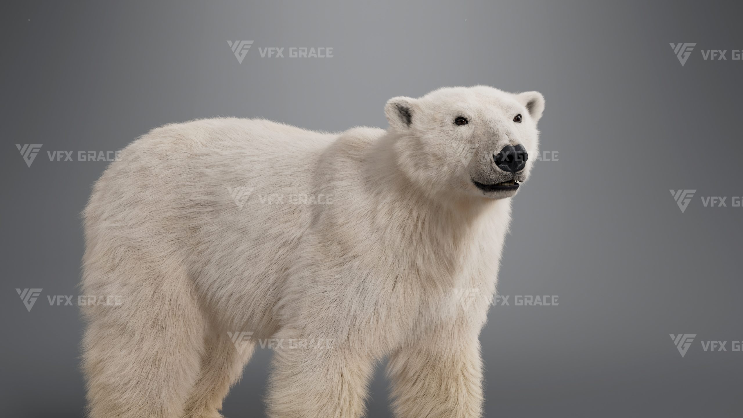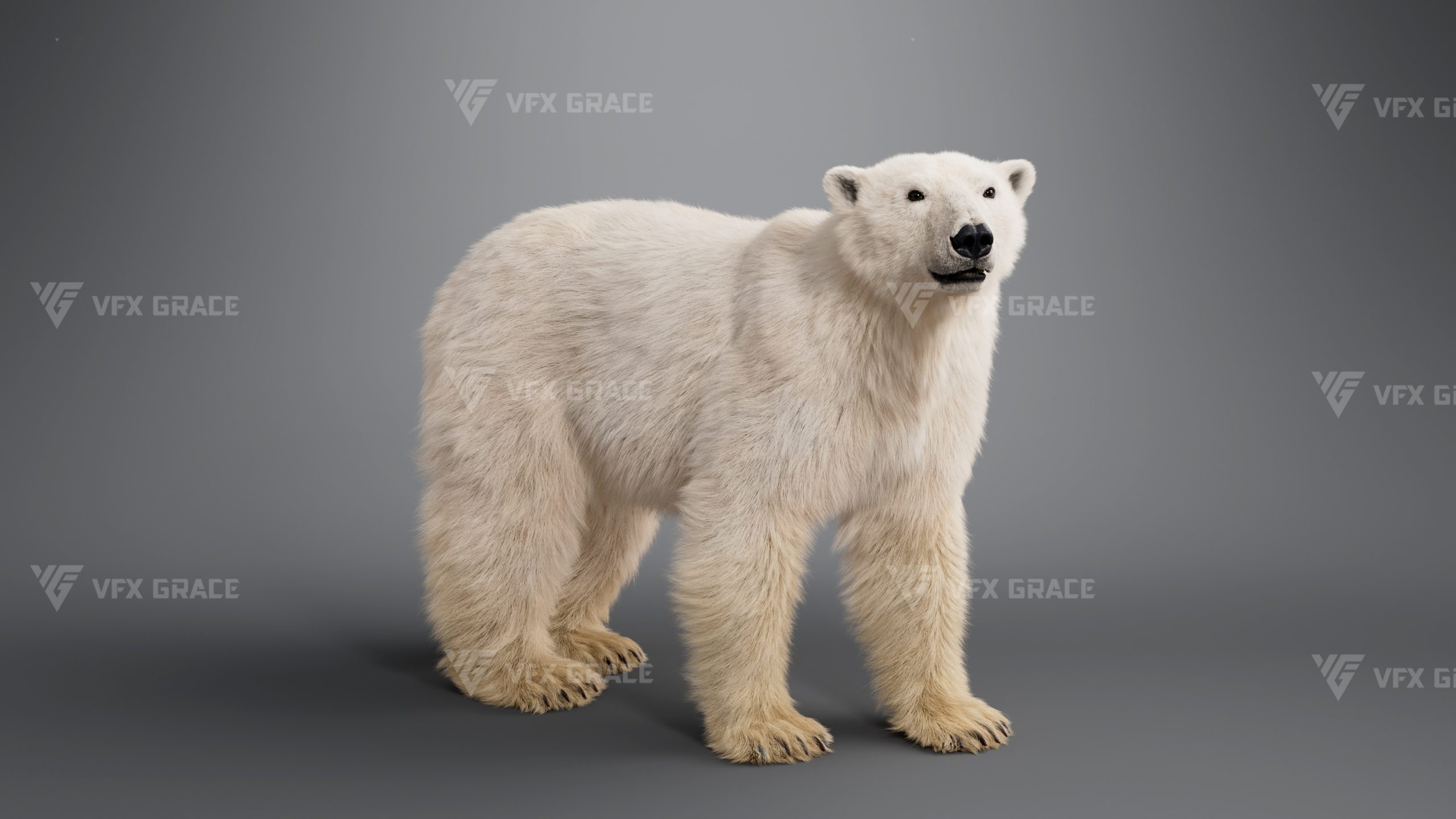 This is a high-quality polar bear character, including the model, textures, hair, rigging, and animations. All hair is created using XGen Interactive, delivering detailed and realistic hair. The materials are built with Arnold renderer to accurately replicate the appearance and texture of a real raccoon. The rigging is created with reference to real bones, making the animation in line with natural movements. The project provides a complete rigging setup along with three realistic animations. This character was created at real-world scale using Maya 2024, suitable for film, animation, and high-precision character presentation.