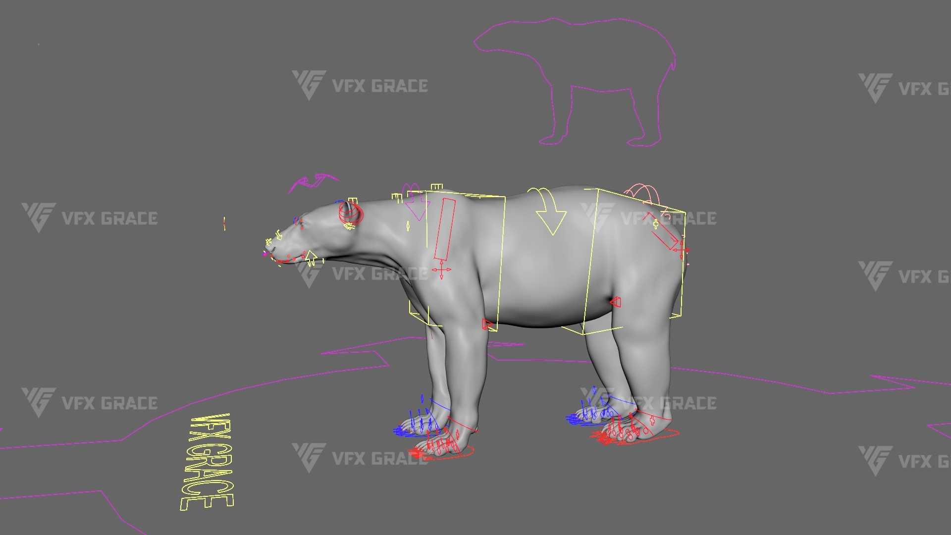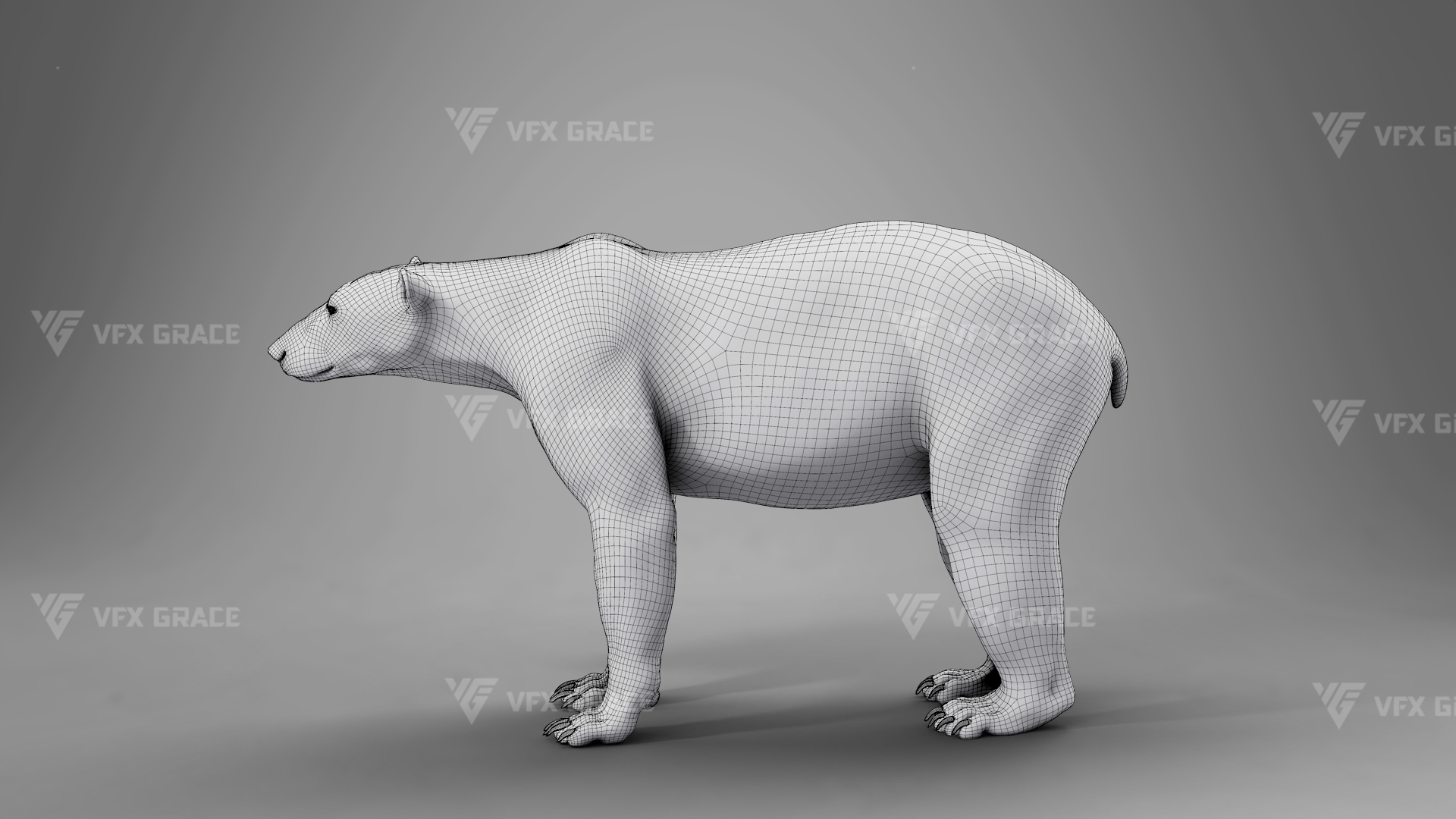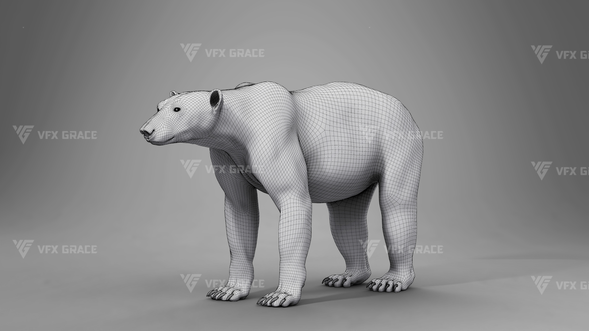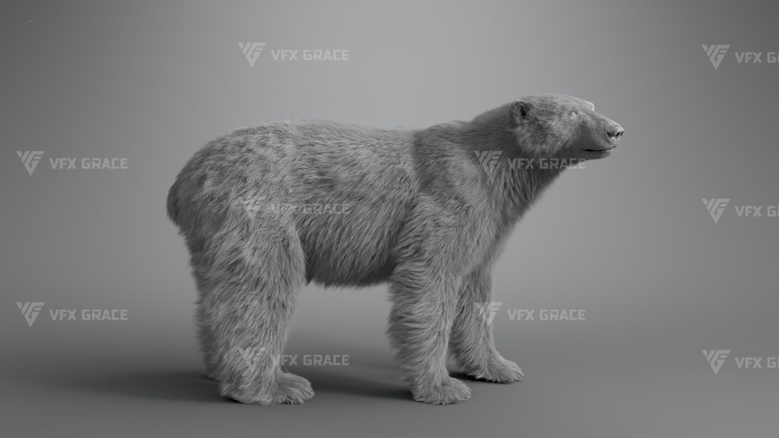 This is a high-quality polar bear character, including the model, textures, hair, rigging, and animations. All hair is created using XGen Interactive, delivering detailed and realistic hair. The materials are built with Arnold renderer to accurately replicate the appearance and texture of a real raccoon. The rigging is created with reference to real bones, making the animation in line with natural movements. The project provides a complete rigging setup along with three realistic animations. This character was created at real-world scale using Maya 2024, suitable for film, animation, and high-precision character presentation.