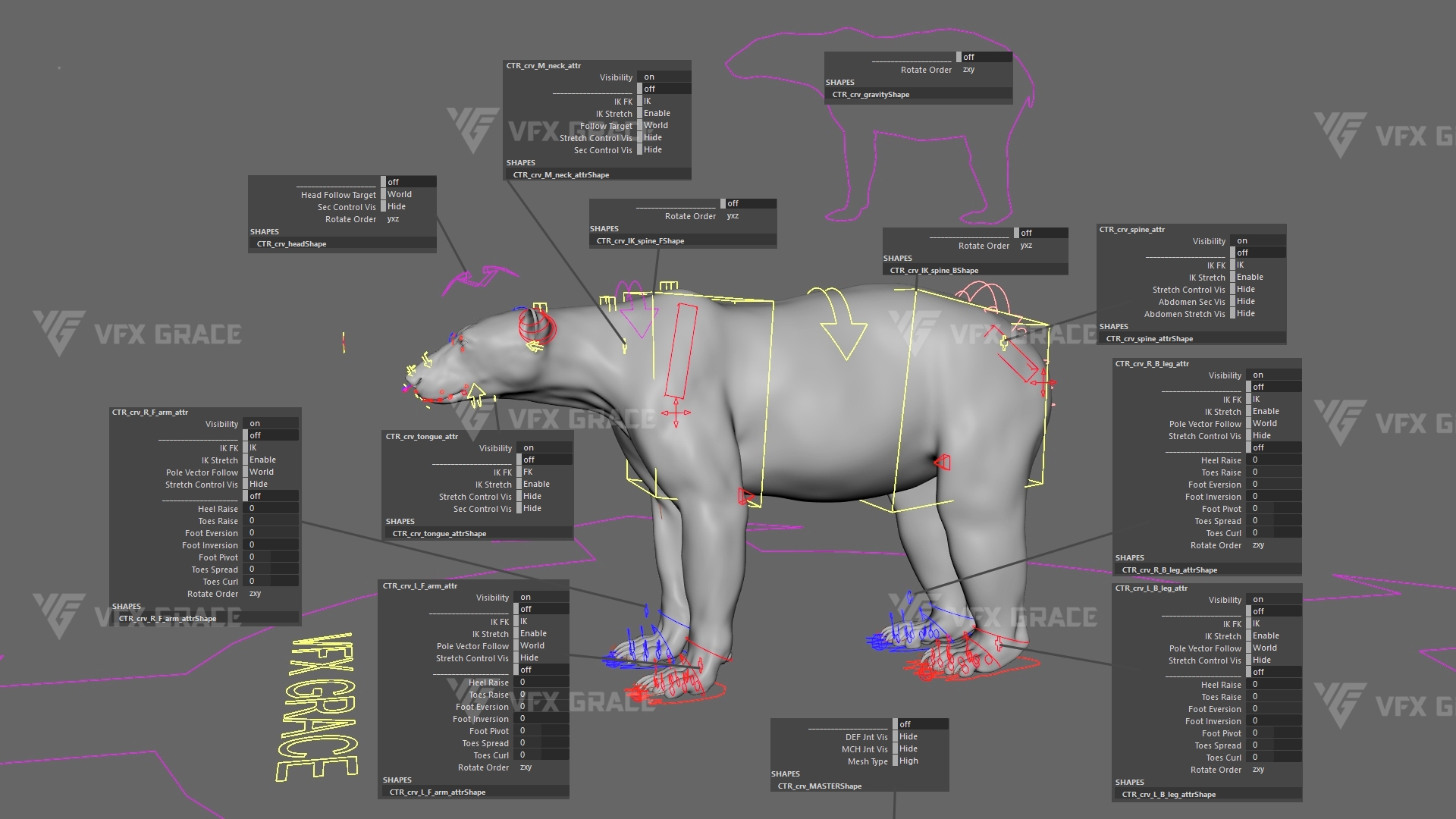 CTR_crv_gravity – Body controller (excluding feet), with customized attribute: