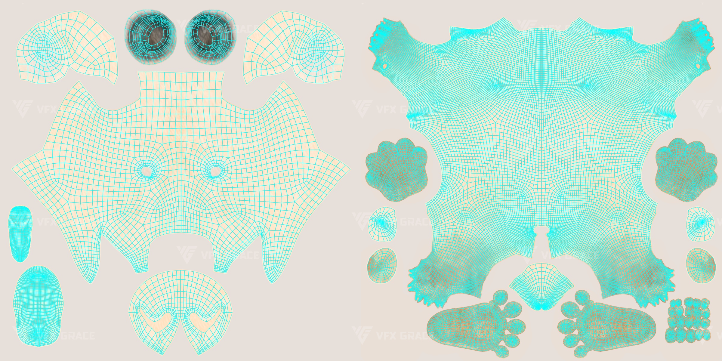 Model Details: The model consists of the body, claws, eyes, lacrimal glands, oral cavity and teeth.