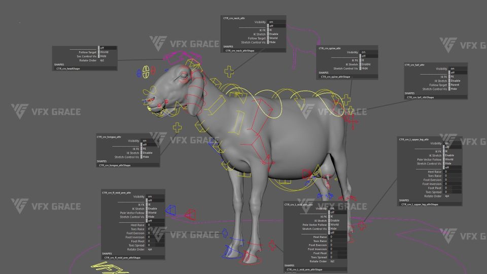 This is a high-quality adult Asaf sheep character. The project includes the model, textures, hair, rigging, and animation. All hair is created using the XGen Interactive Groom system with enough details. The character materials are built with the Arnold renderer to accurately reproduce realistic surface detail. The rig is constructed based on realistic skeletal proportions, making the animation more consistent with natural movement. The project provides a complete rigged project and four realistic animations. This character is created with Maya 2024 at real-world scale and is suitable for film, animation, and high-precision character presentation.
